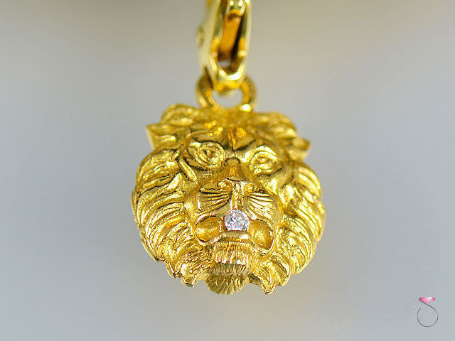 - 18K yellow gold Chanel Lion charm with two diamonds on the front and back.