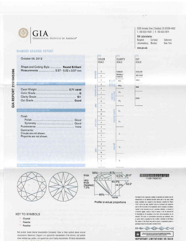 Round Brilliant Diamond GIA Certified 0.71ct G-SI1 – SOLITAIRE JEWELERS