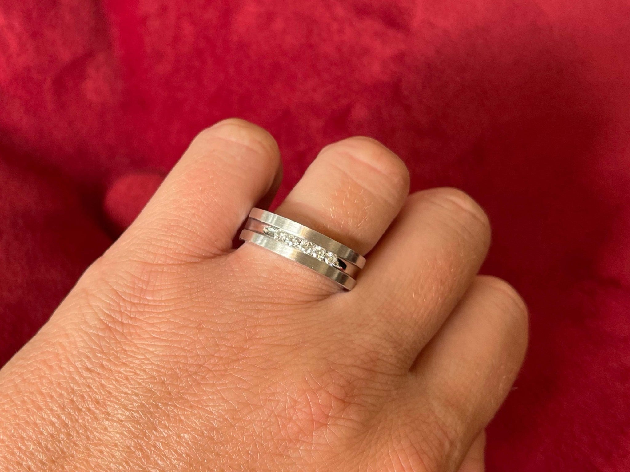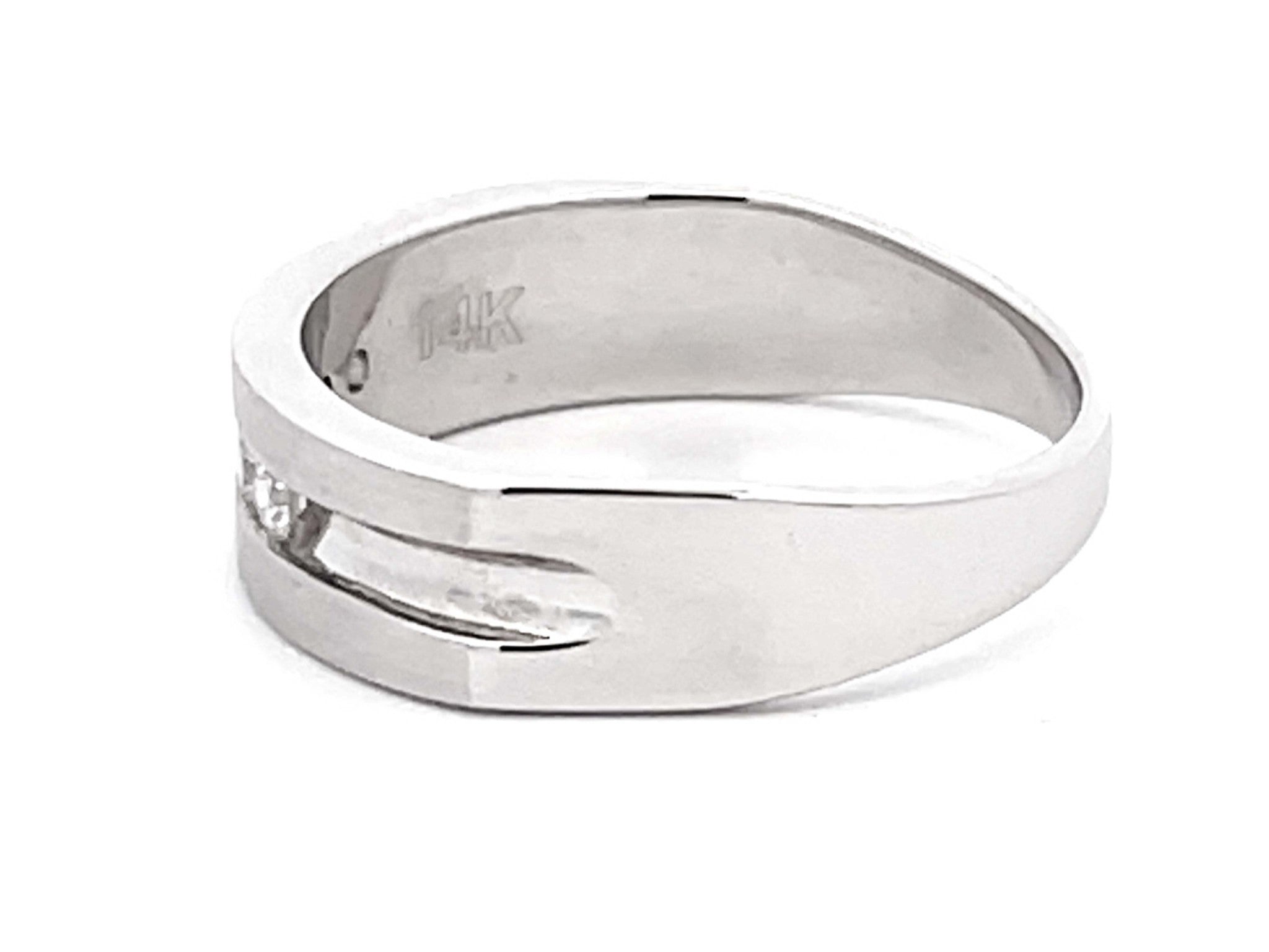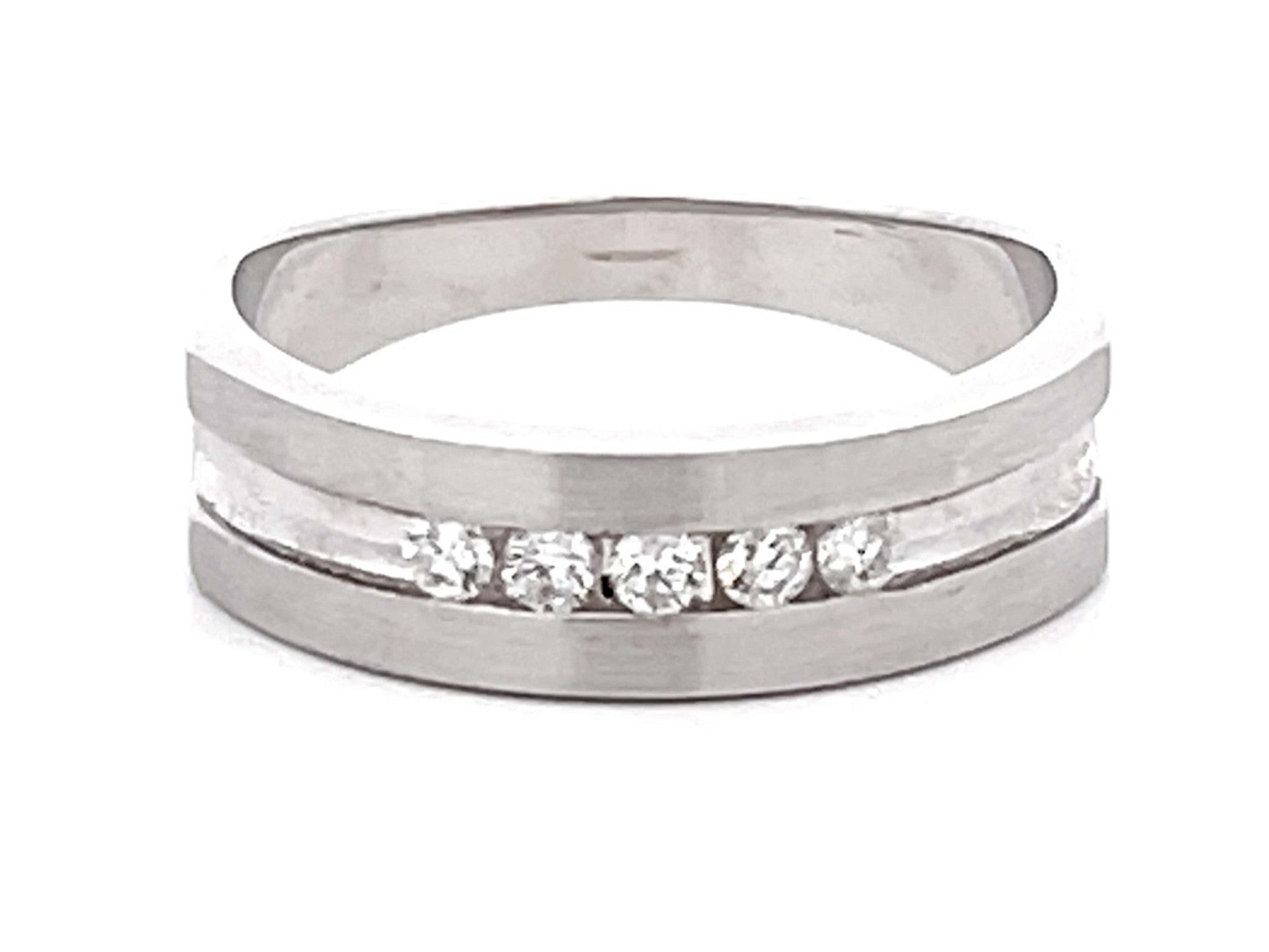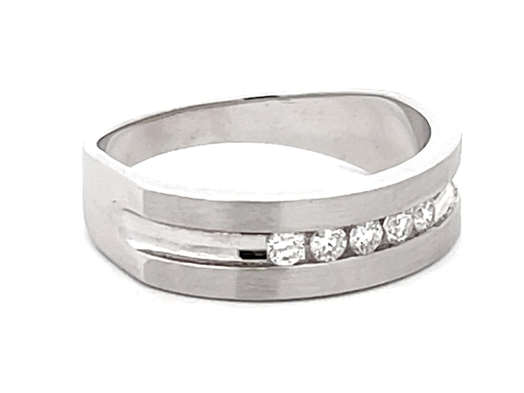Item Specifications: Metal: 14k White Gold Diamond Count: 5 brilliant cutDiamond Carat Weight: ~0.15 caratsDiamond Color: G-HDiamond Clarity: SI2-I1Ring Size: 11 (resizable) Total Weight: 6.6 GramsStamped: "14k" Condition: Preowned, Excellent