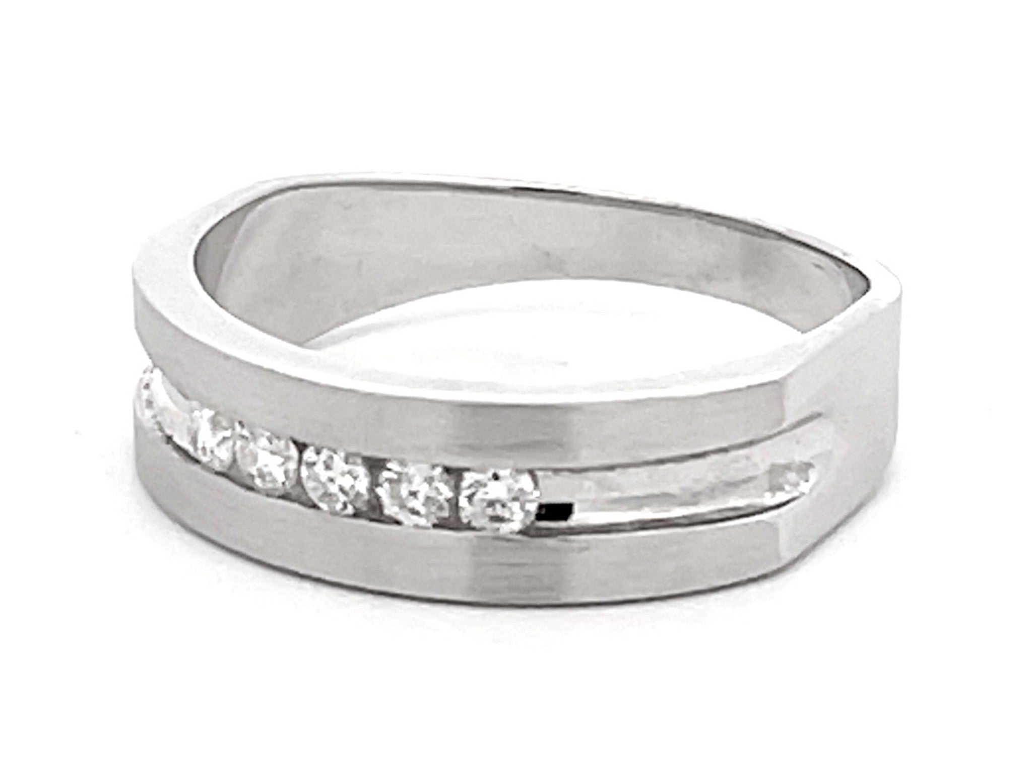 Mens Diamond Band Ring Matte Finish 14k White Gold