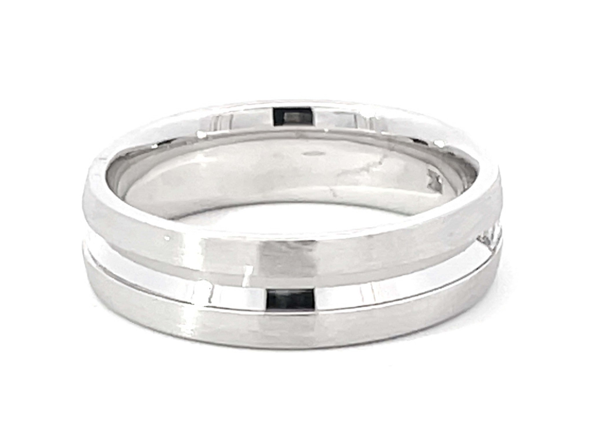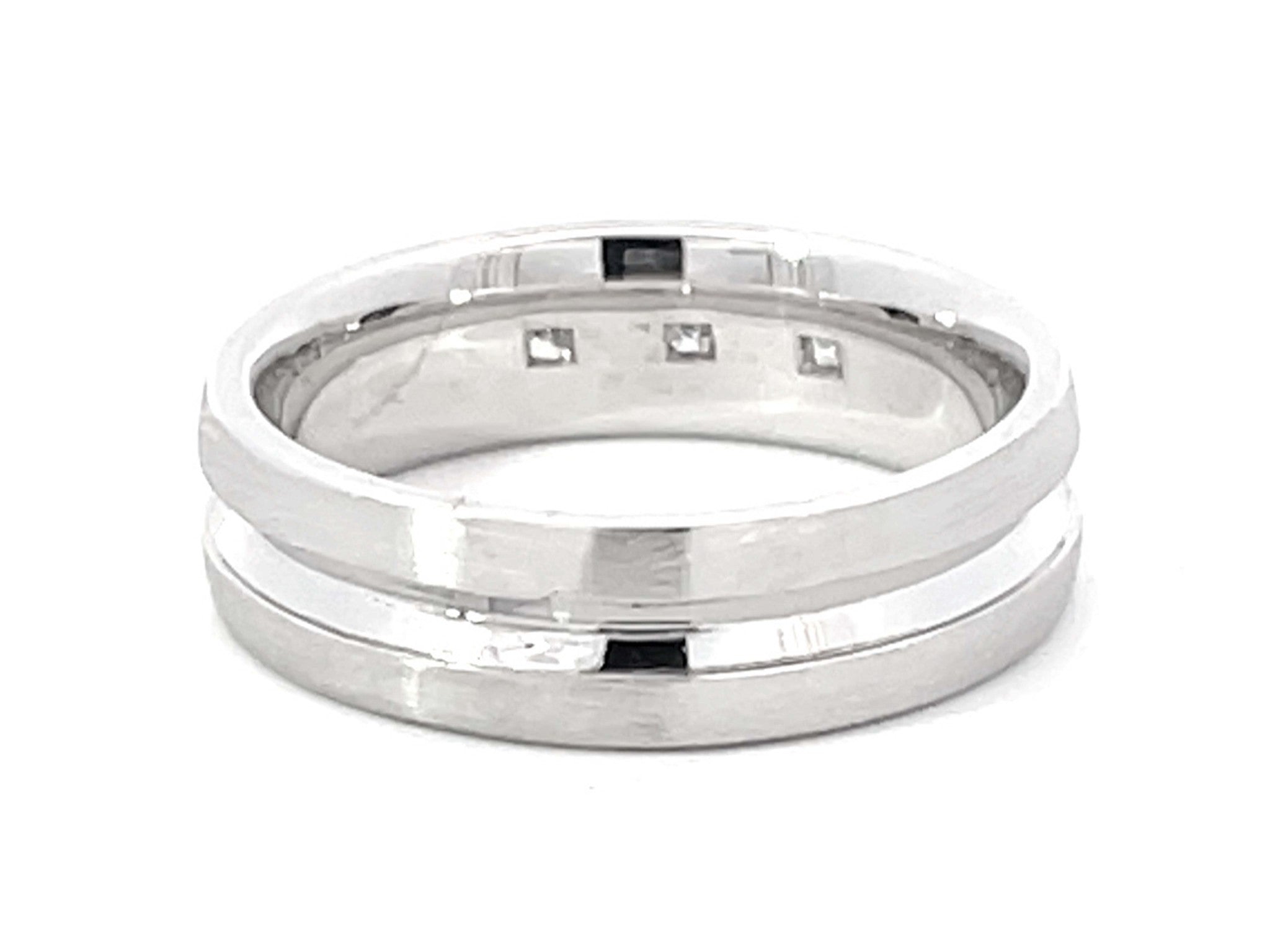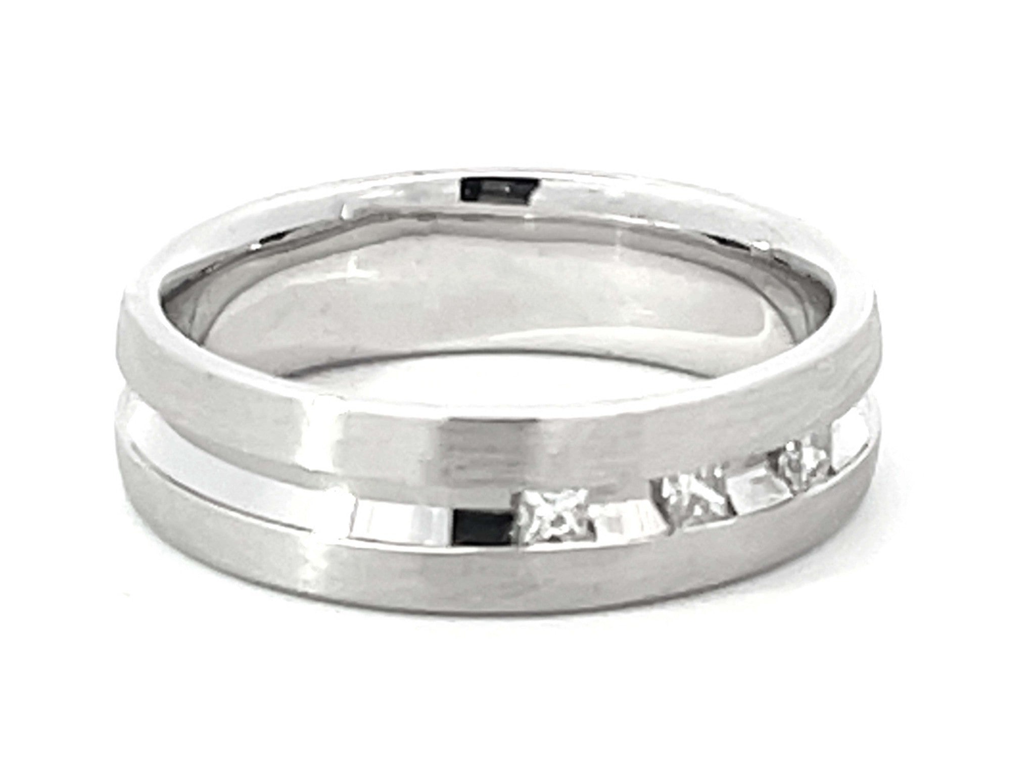Item Specifications: Metal: 18k White Gold Diamond Count: 3 brilliant cut Diamond Carat Weight: ~0.10 caratsDiamond Color: G-HDiamond Clarity: VSRing Size: 11.5 (resizable) Total Weight: 12.5 GramsStamped: "18k" Condition: Preowned, Excellent