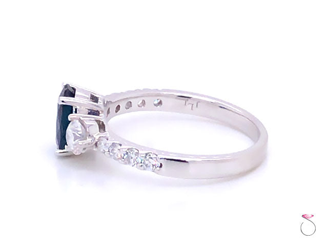 Sapphire & Diamond Engagement Fashion Ring in 14K White Gold Size 7 (re-sizable)