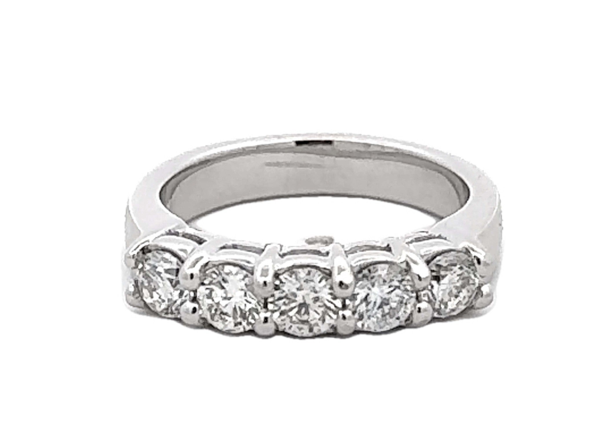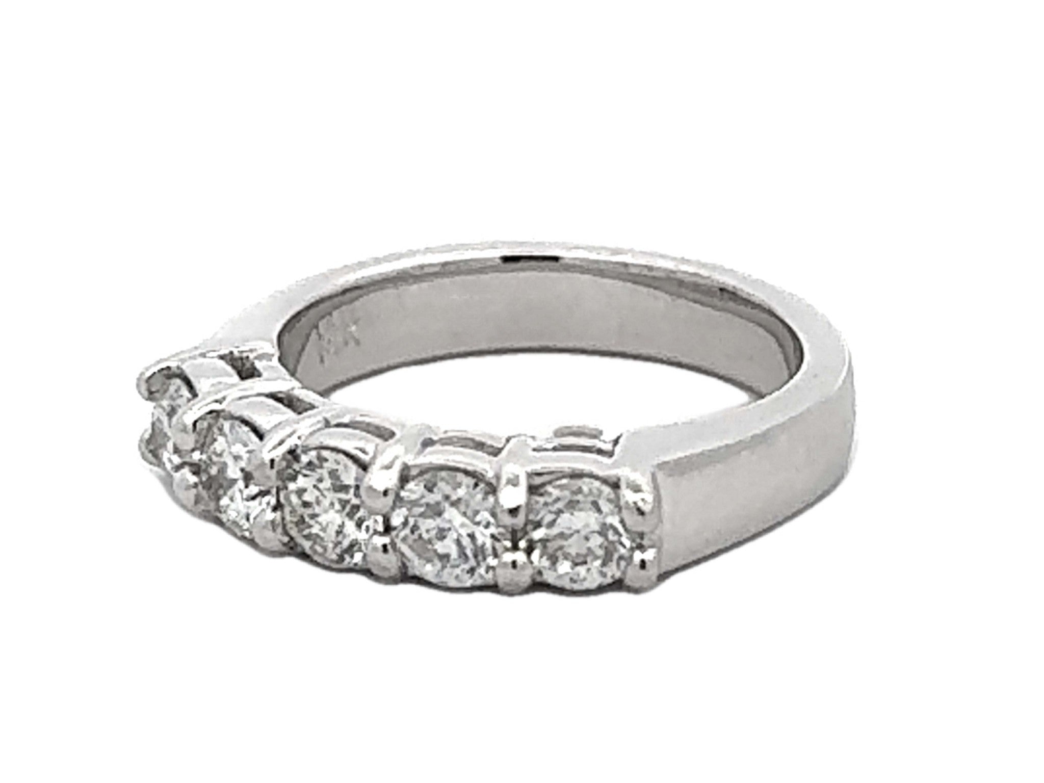 1 Carat 5 Brilliant Cut Diamond Band Ring 14k White Gold