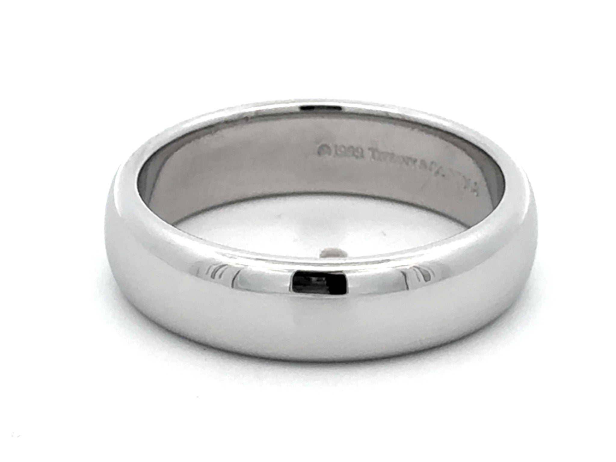 Item Specifications: Brand: Tiffany & Co. Model: Tiffany Forever Wedding Band Ring Metal: Platinum 950 Ring Width: 6 mmRing Size: 9.75 Total Weight: 14.8 GramsStamped: "1999 Tiffany & Co." "PT950" Condition: Preowned, like newRetails...