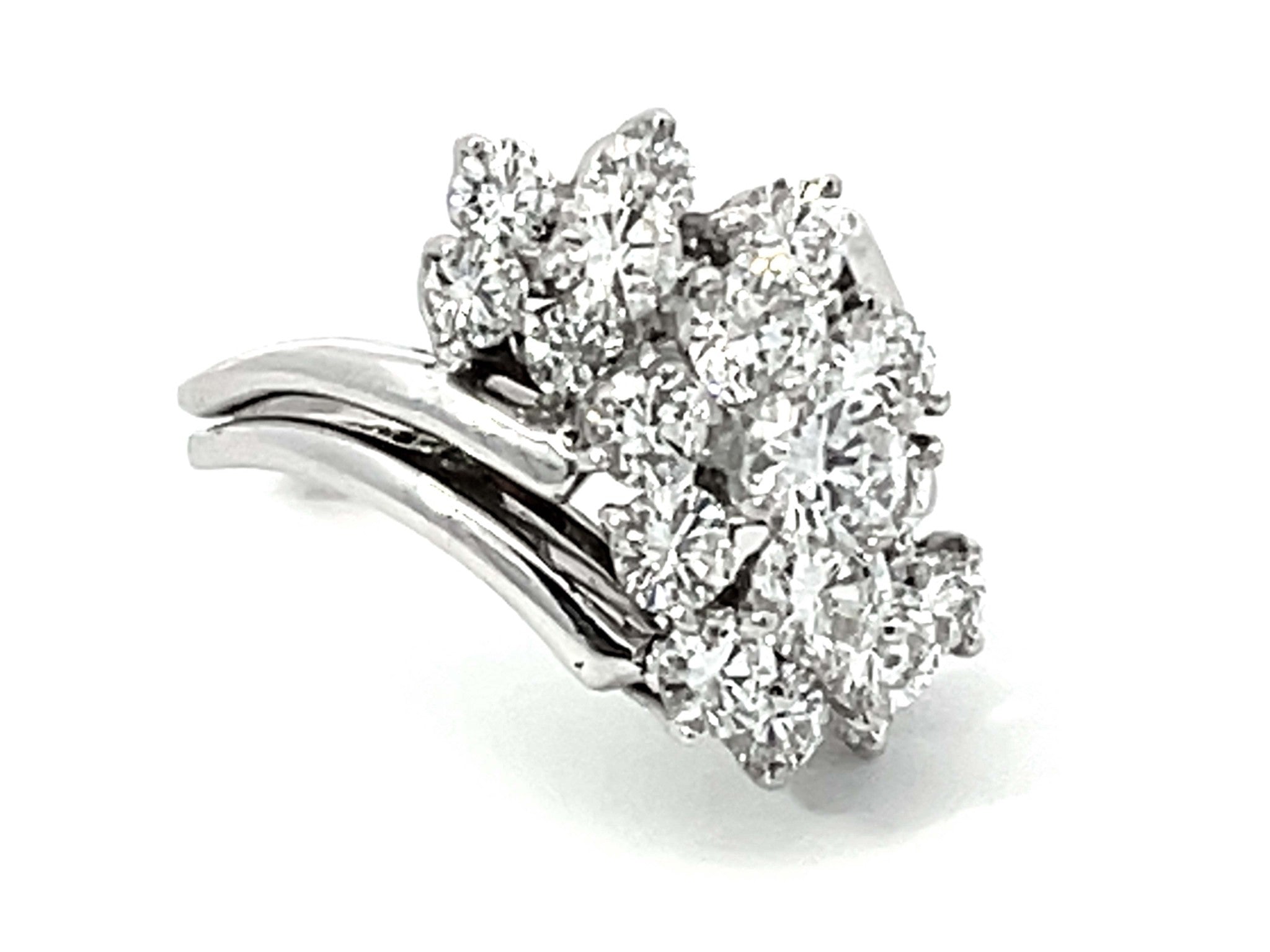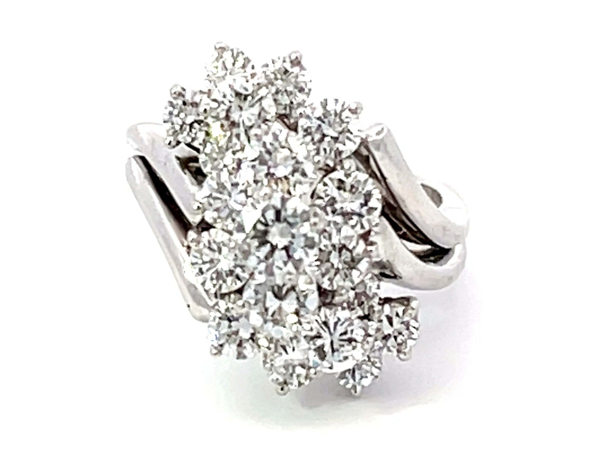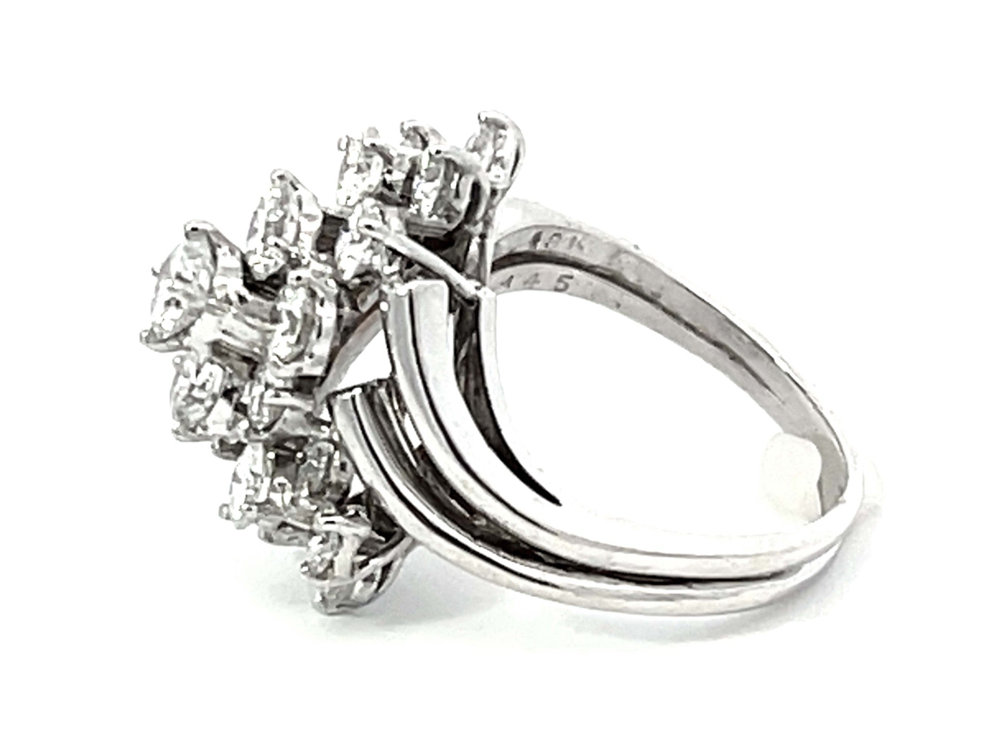 Item Specifications: Metal: 18k White Gold Diamond Count: 19 brilliant cutDiamond Carat Weight: ~2.00 caratsDiamond Color: GDiamond Clarity: VS1-SI1Ring Size: 6.25 (resizable) Total Weight: 7.7 GramsStamped: "18k"  Condition: Preowned, Excellent
