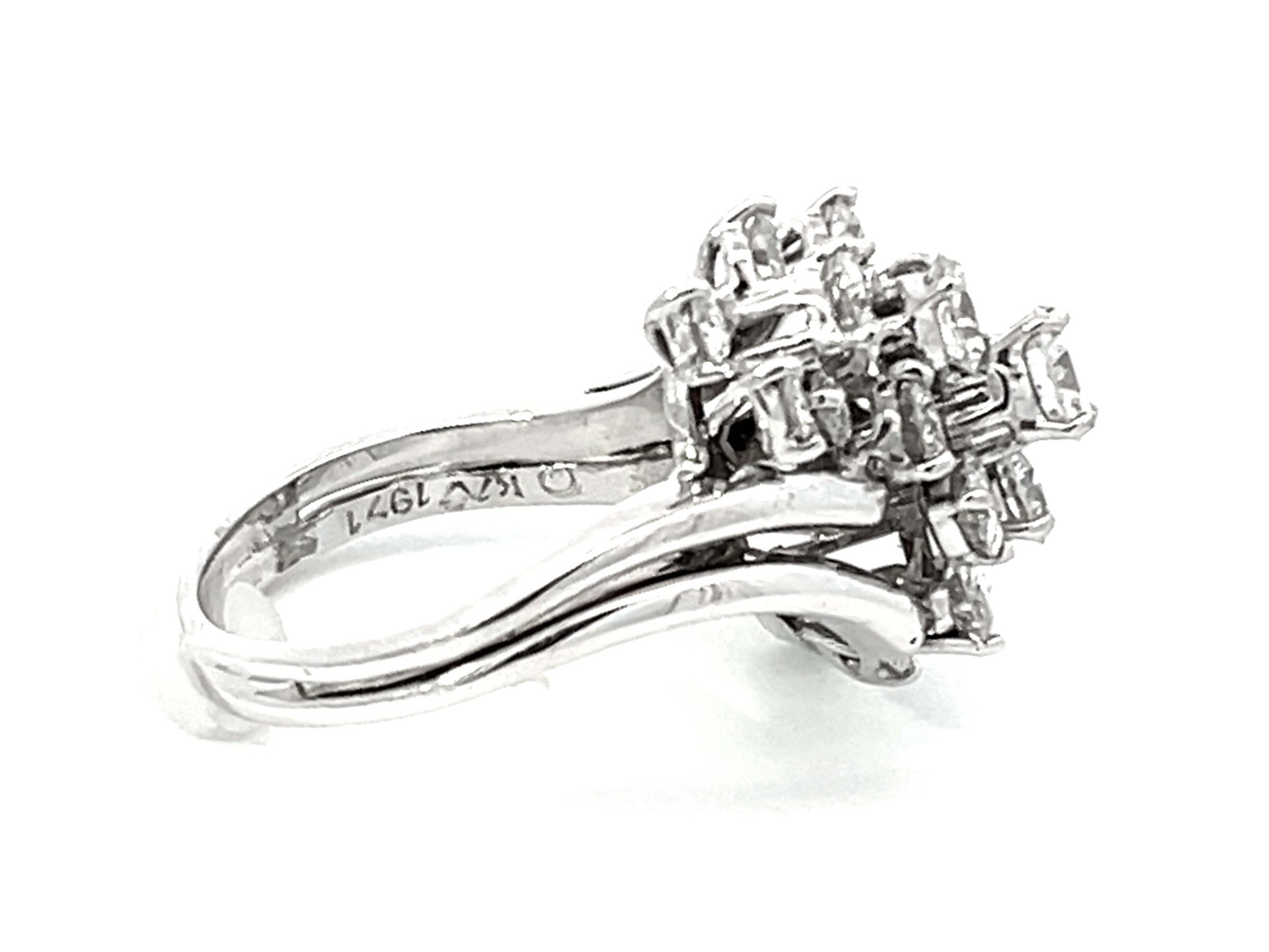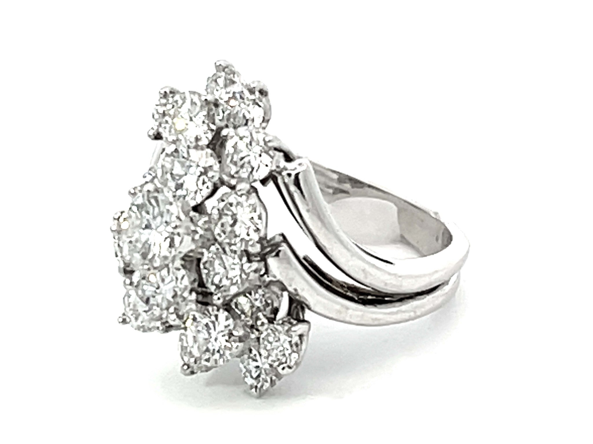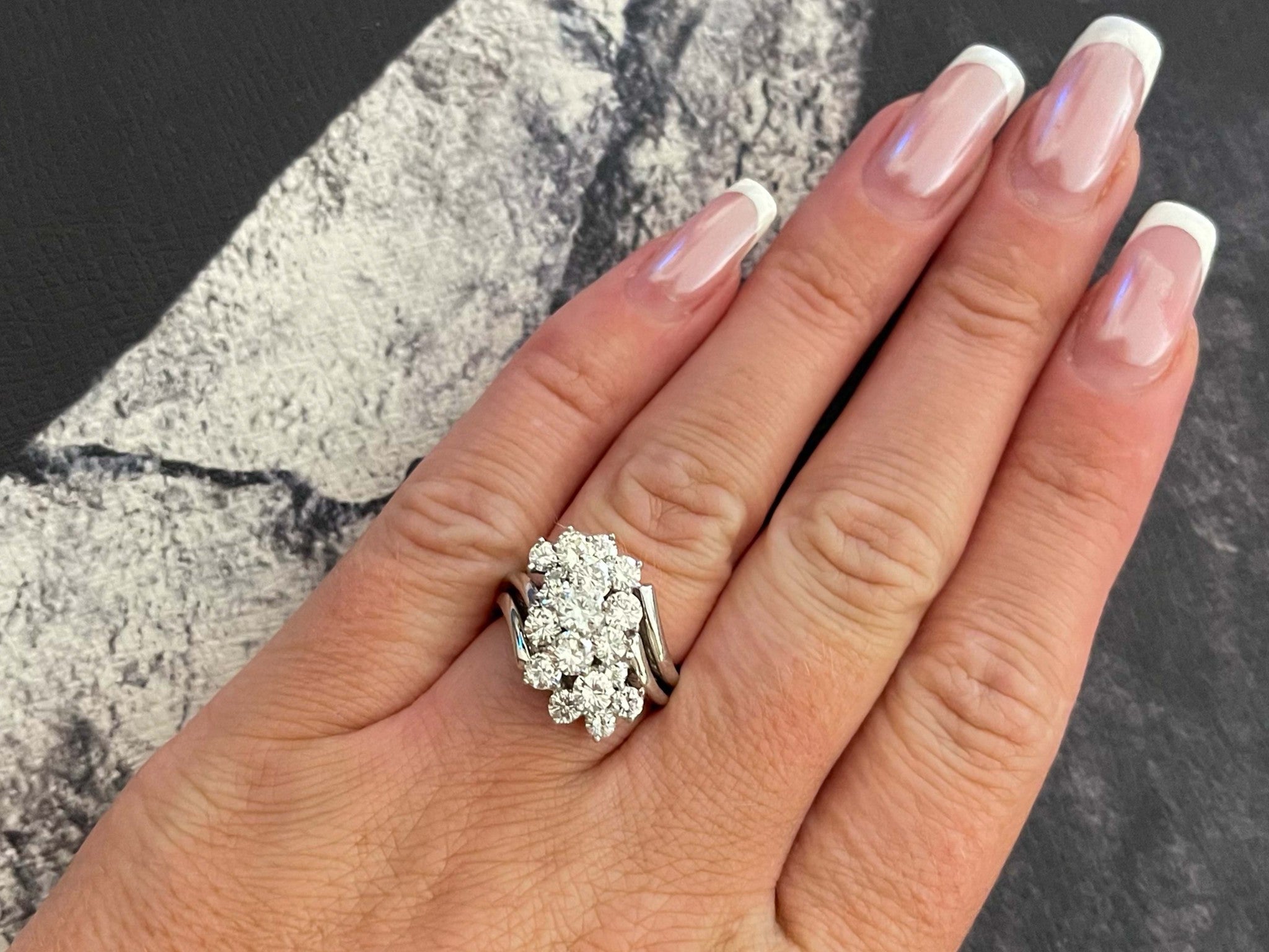 Item Specifications: Metal: 18k White Gold Diamond Count: 19 brilliant cutDiamond Carat Weight: ~2.00 caratsDiamond Color: GDiamond Clarity: VS1-SI1Ring Size: 6.25 (resizable) Total Weight: 7.7 GramsStamped: "18k"  Condition: Preowned, Excellent