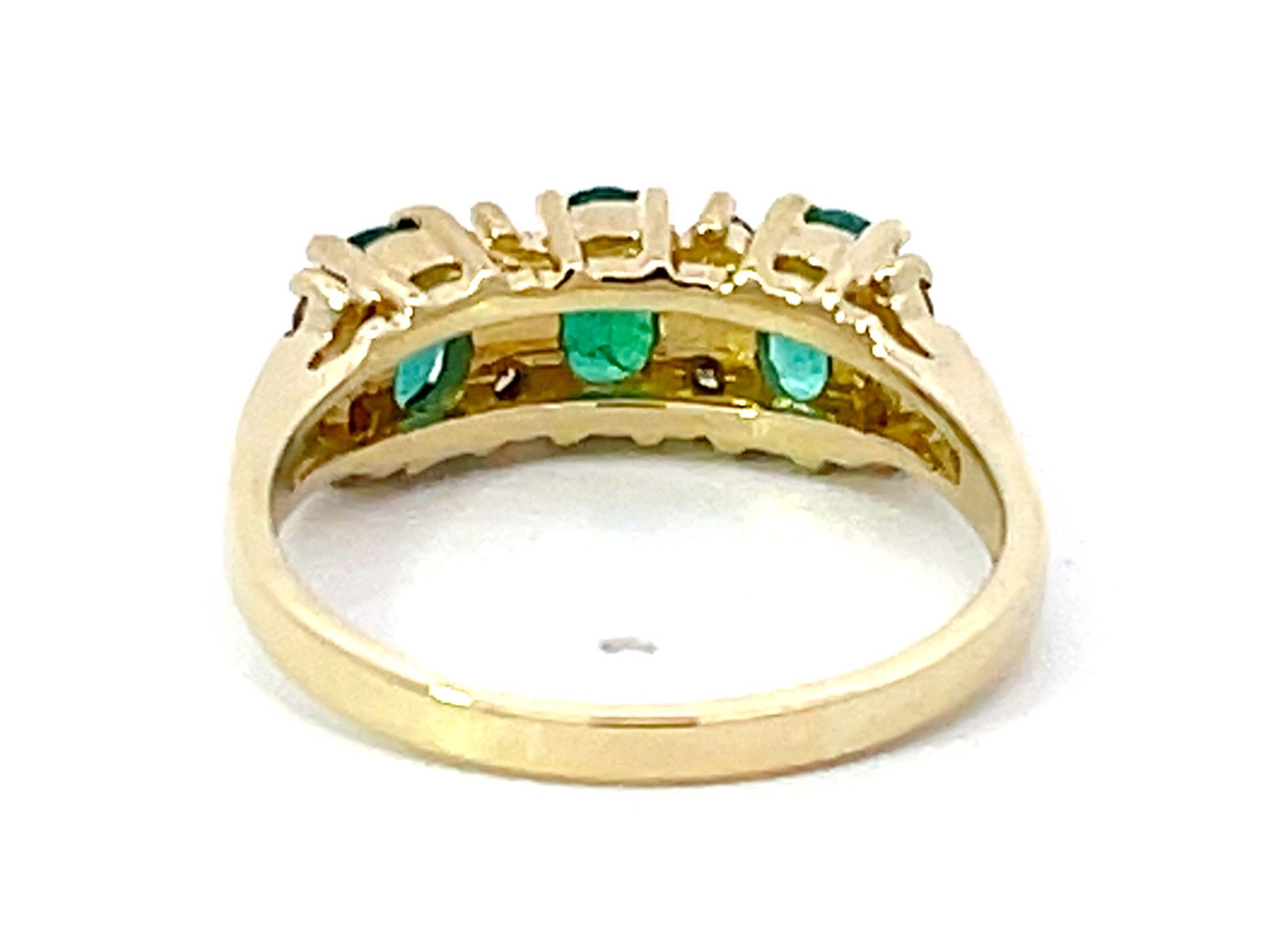 3 Oval Green Emerald and Diamond Band Ring in 14k Yellow Gold