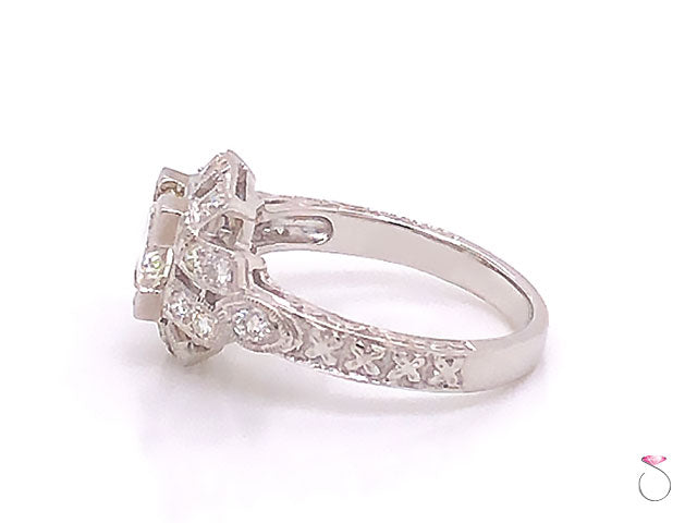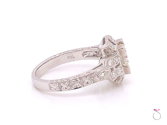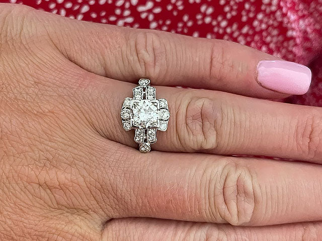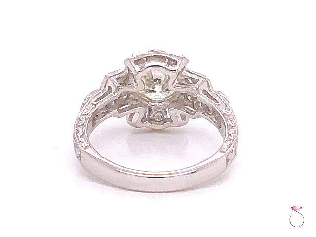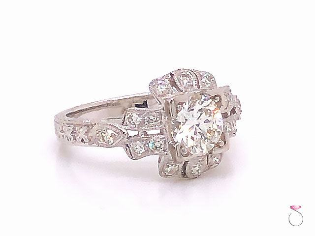Art Deco Diamond Engagement Ring- 18k White Gold, 1.34 Carats