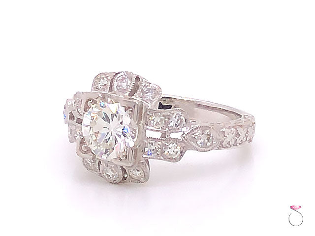 Art Deco diamond  engagement Ring with 1.04 carat center diamond. This beautiful ring is crafted in 18k white gold and features gorgeous details and design elements. The center diamond is set in...