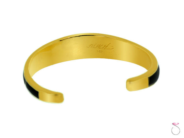 Australian Black Opal & Onyx Cuff Bracelet in 14K Gold