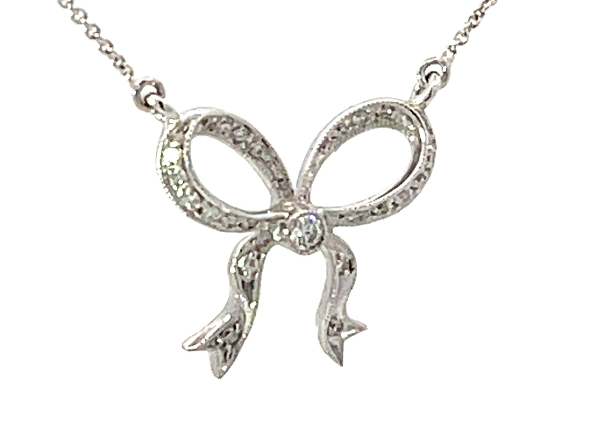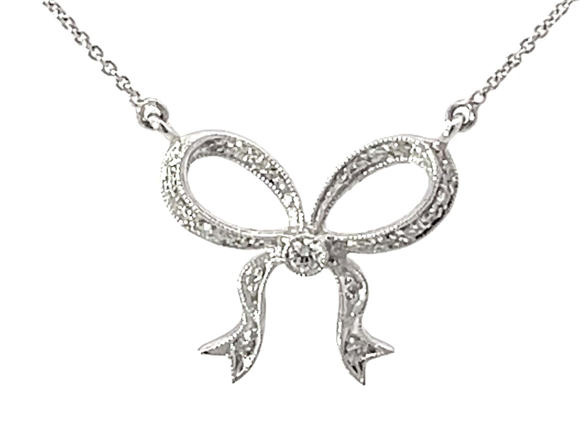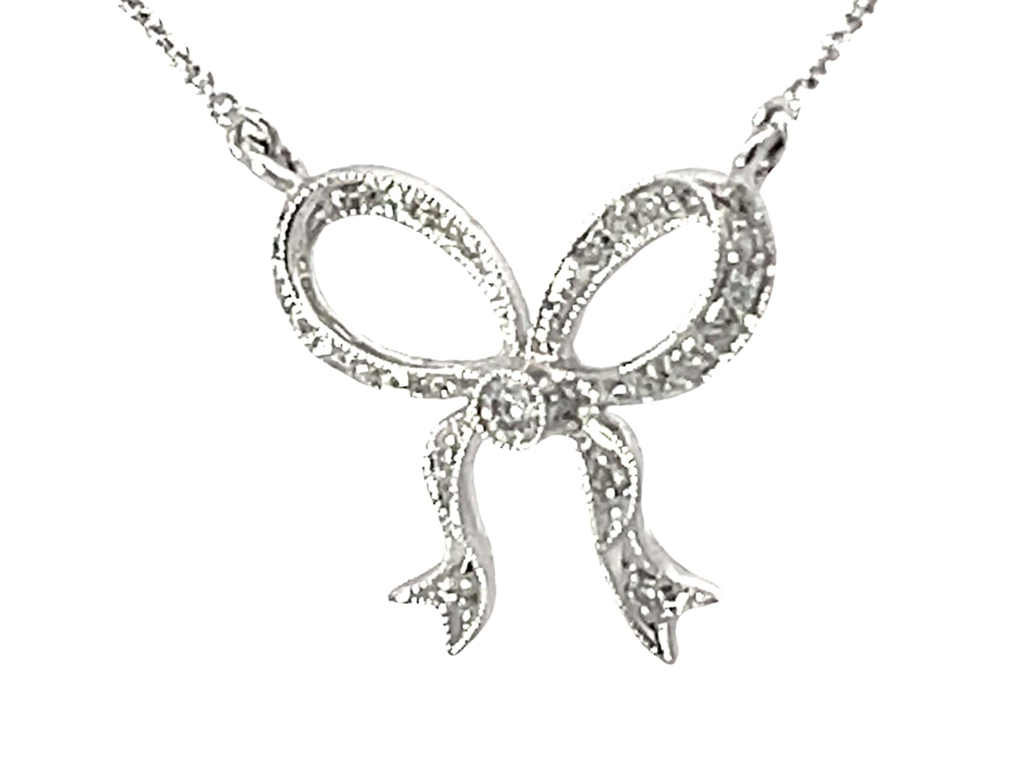 Item Specifications:Necklace Metal: 14k (pendant) and 18k (chain) White GoldTotal Weight: 2.9 GramsChain Length: 16"Diamond Carat Weight: 0.16 caratsStamped: "14k" "750" "BK"Condition: Preowned, excellent