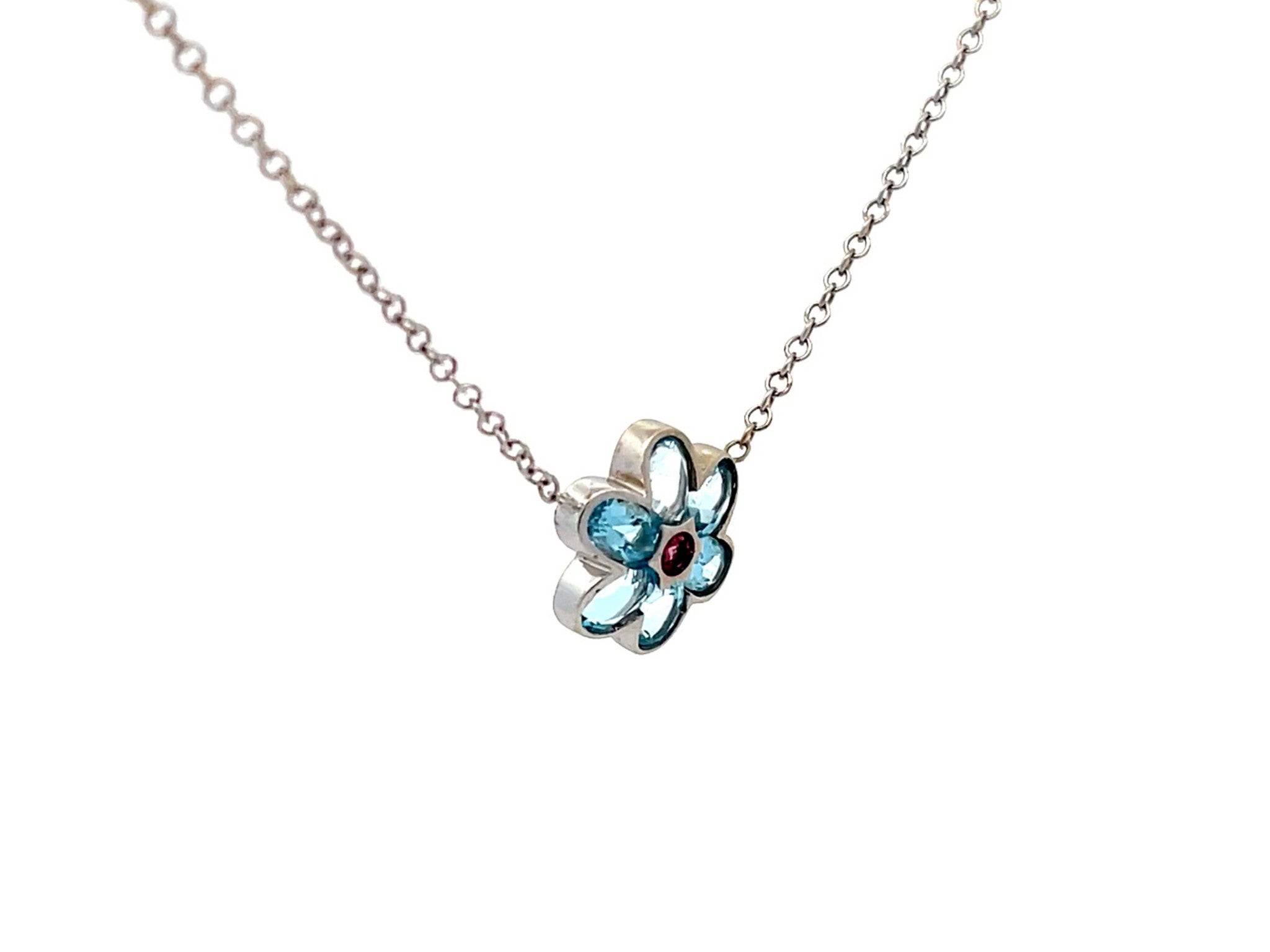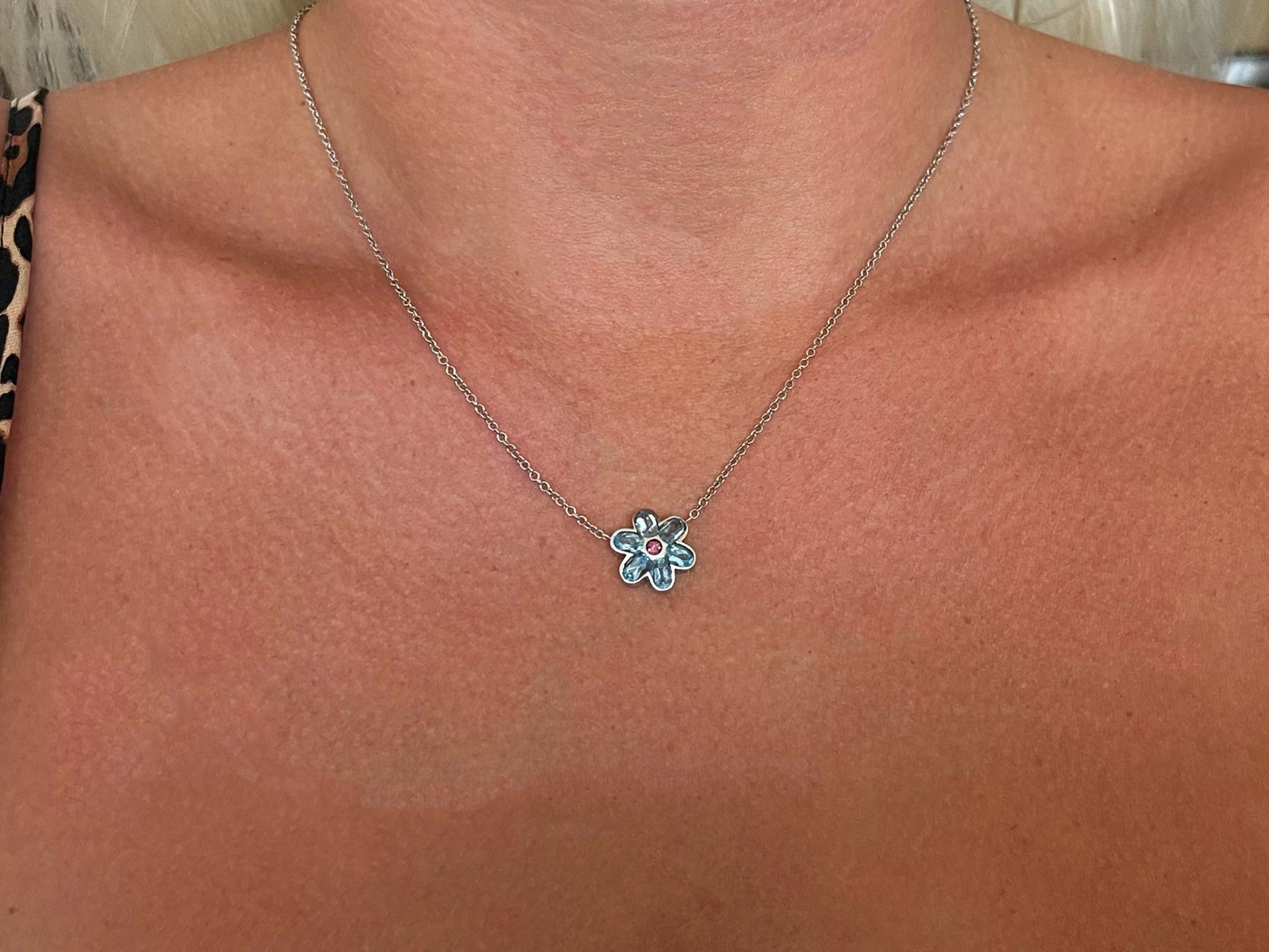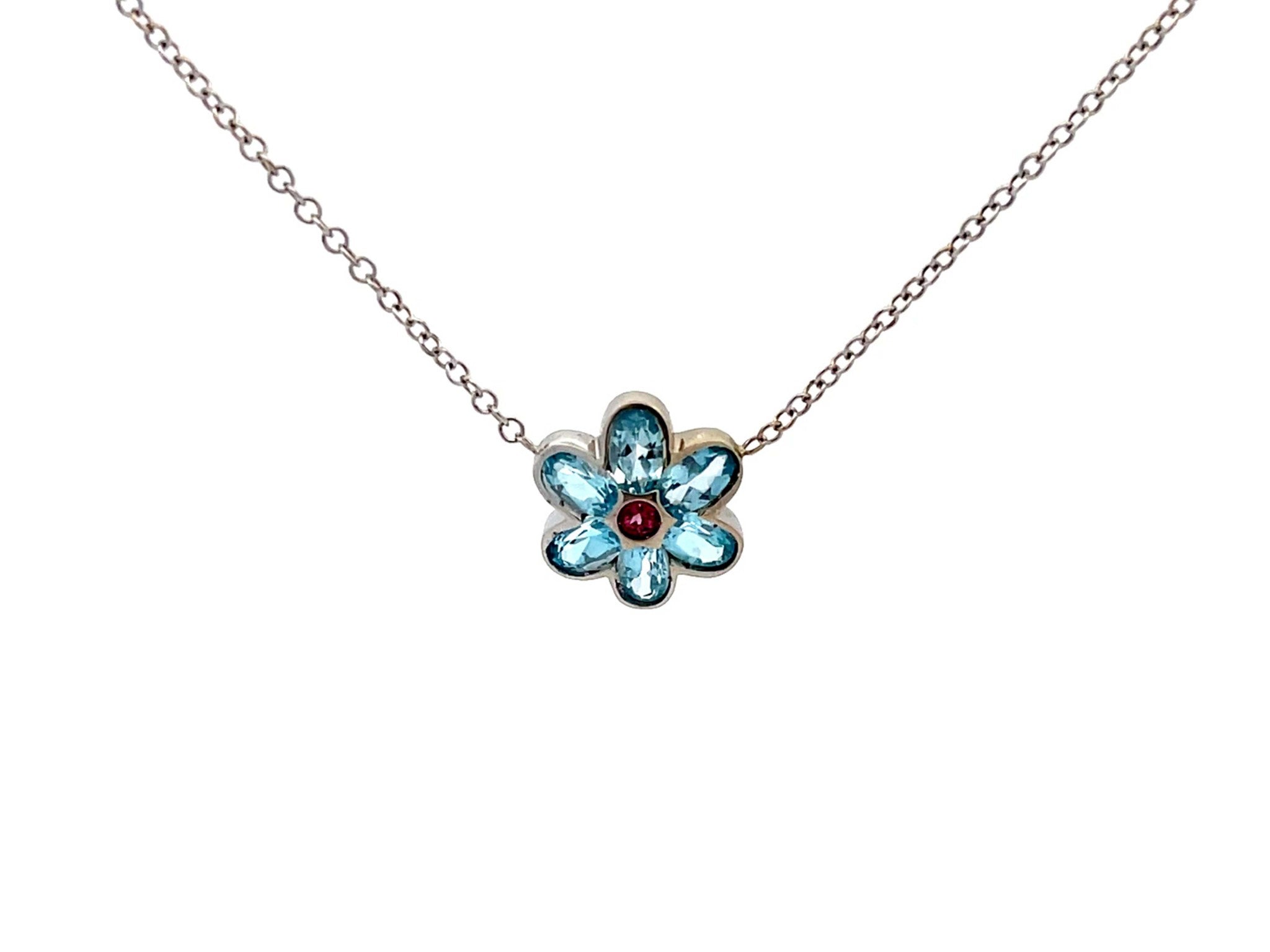 (chain included )Item Specifications:Necklace Metal: 14k White GoldTotal Weight: 3.4 GramsGemstones: Blue topaz and Pink TourmalineStamped: "14K"Condition: Preowned, excellent