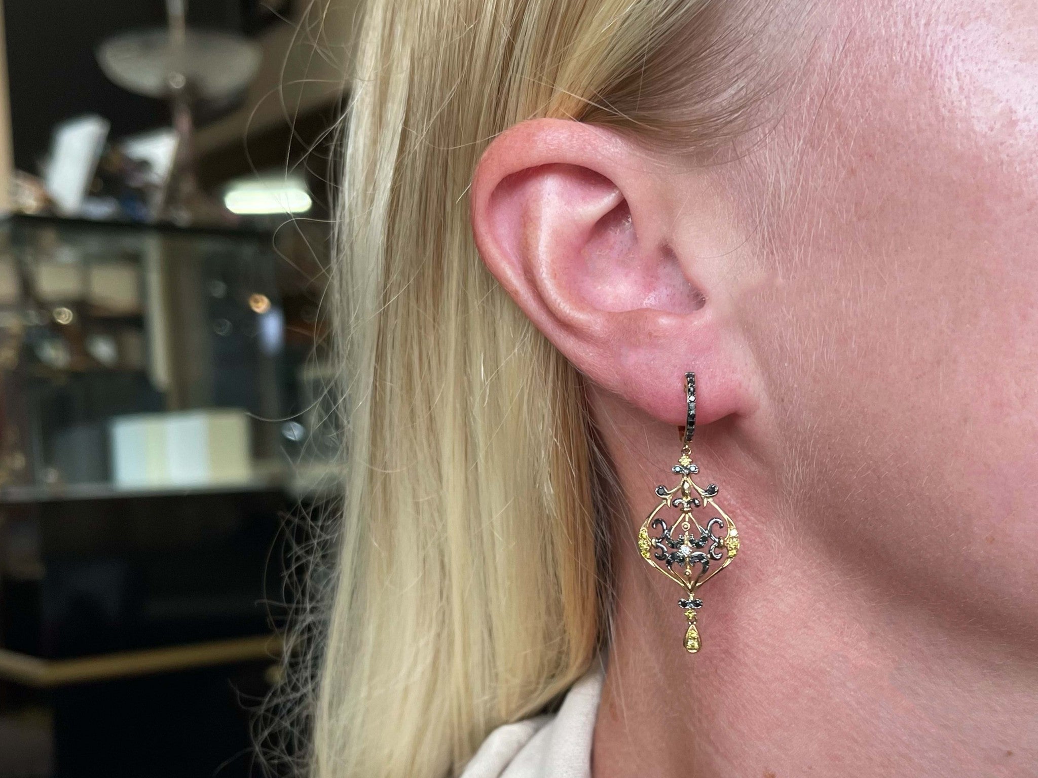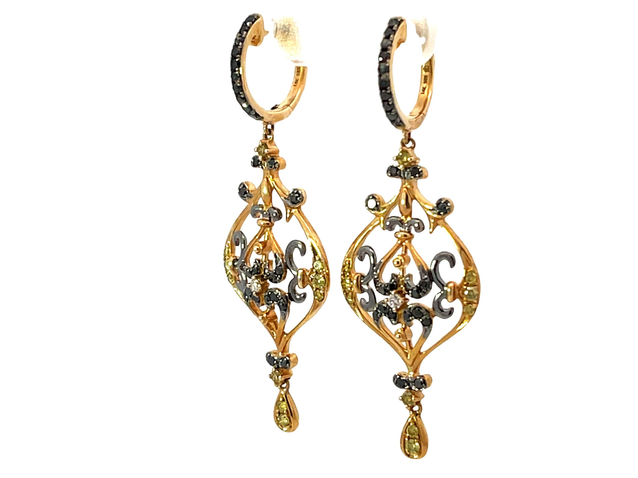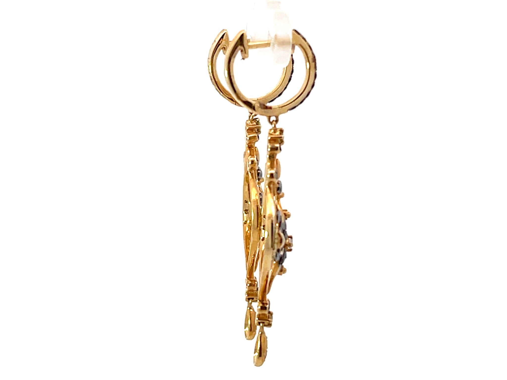 Dangly Black Onyx Diamond Earrings 14k Yellow Gold