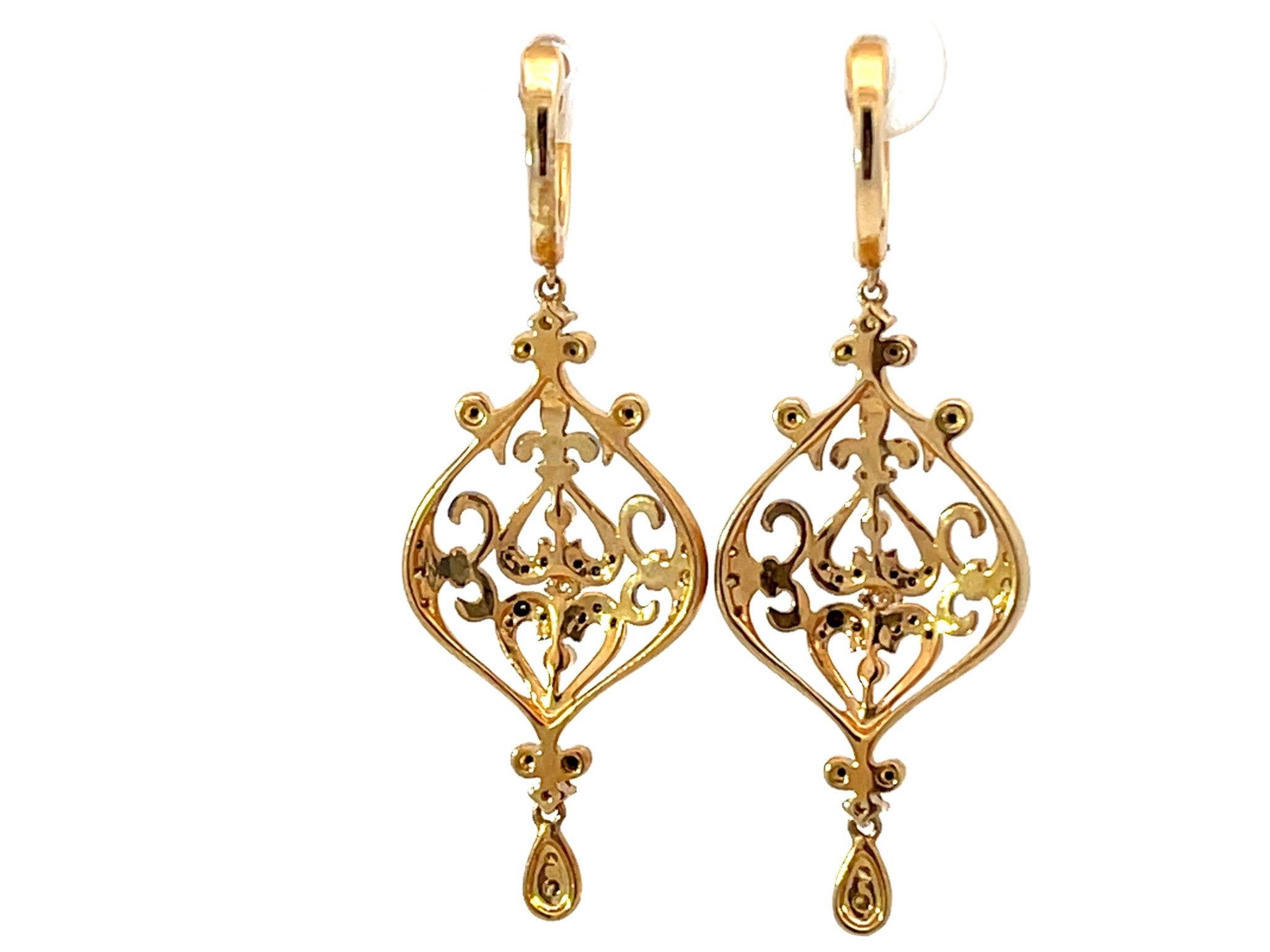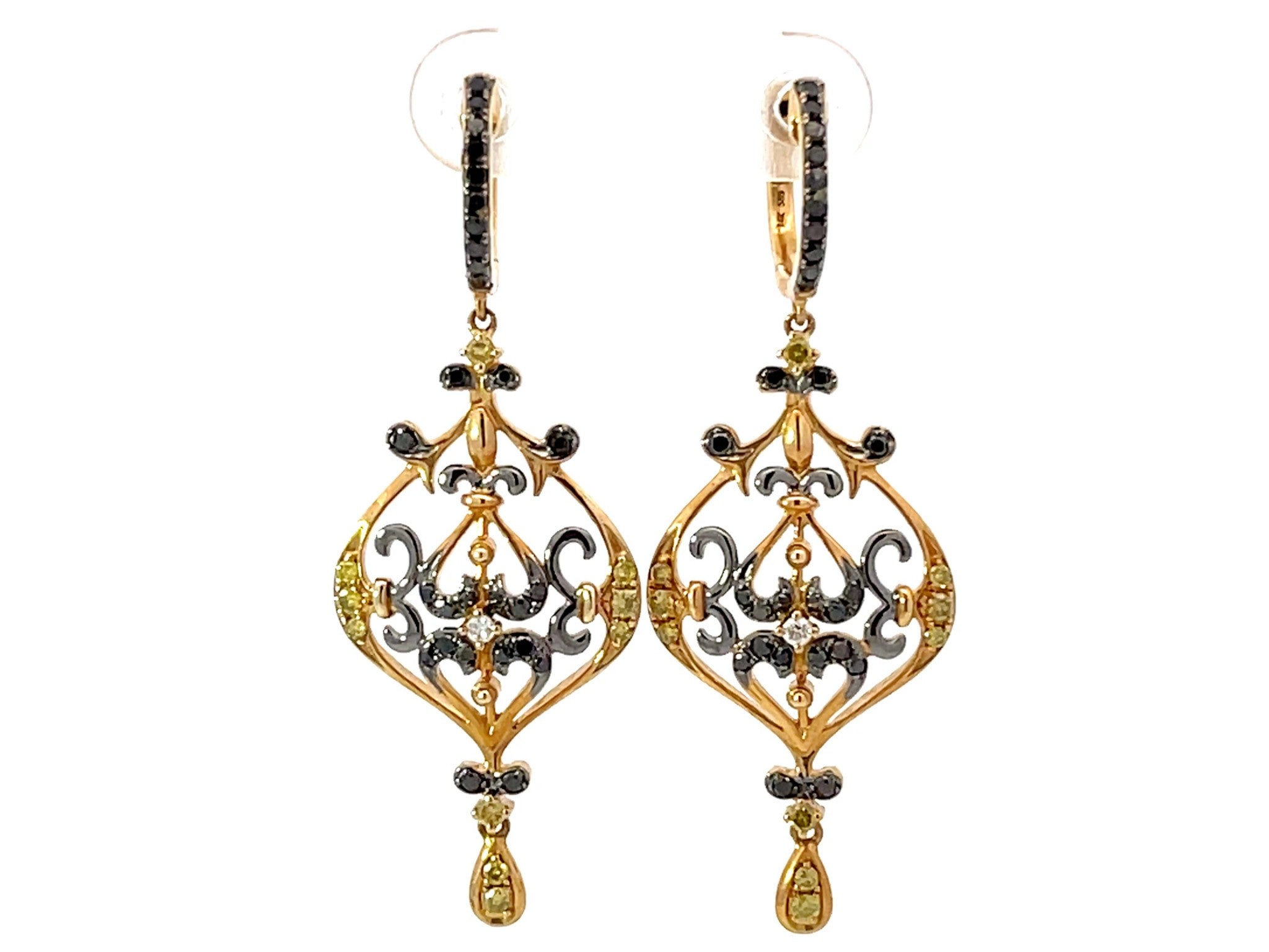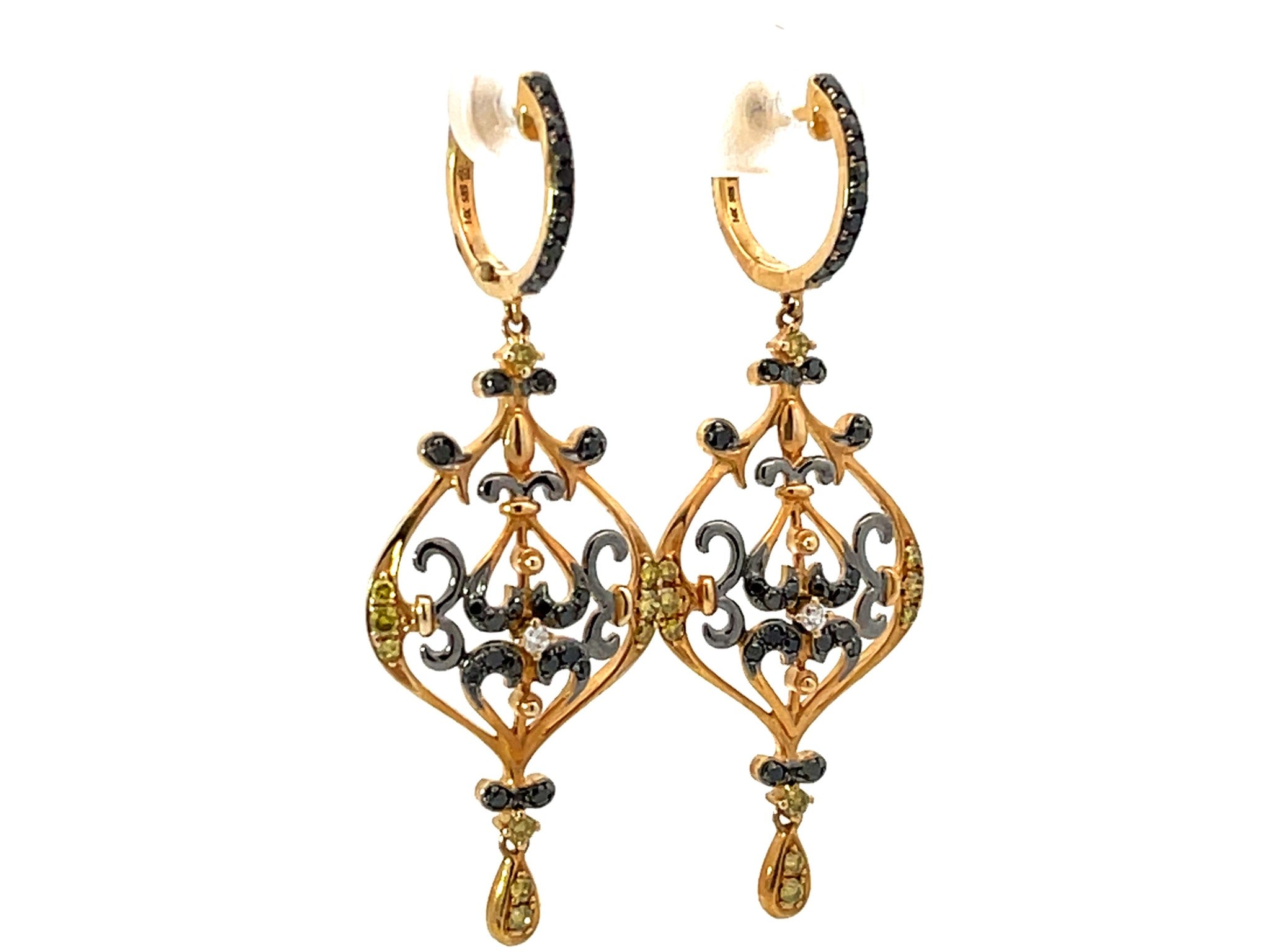 Dangly Black Onyx Diamond Earrings 14k Yellow Gold