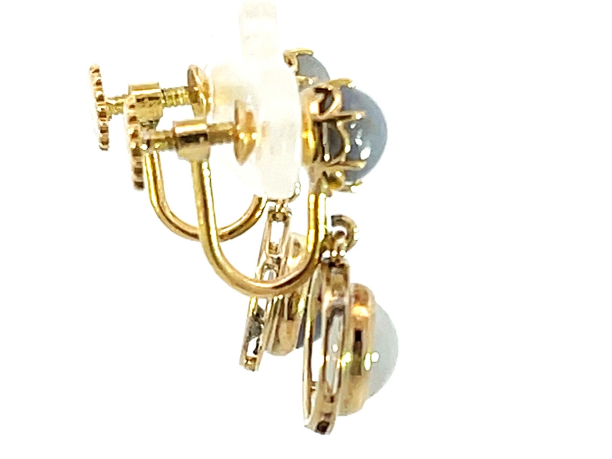 Dangly Star Sapphire Stud Drop Earrings 14k Yellow Gold