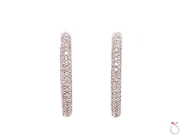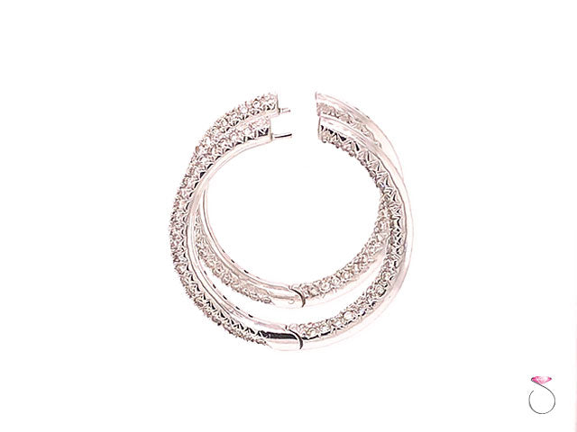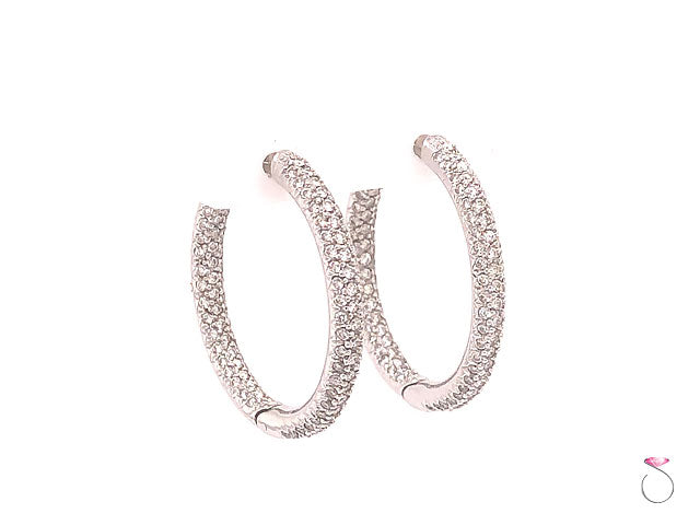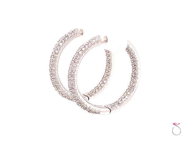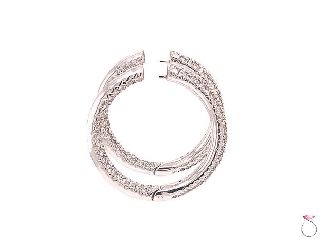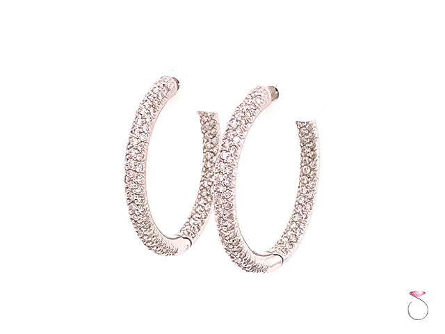 Designer Diamond Pave' Hoop Earrings, 1.50 Carat Diamond Earrings 18K White Gold