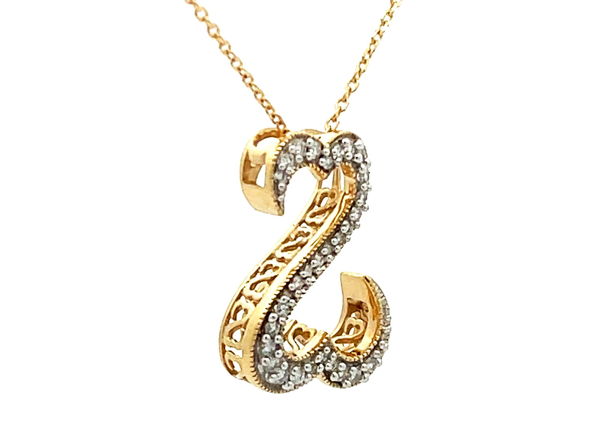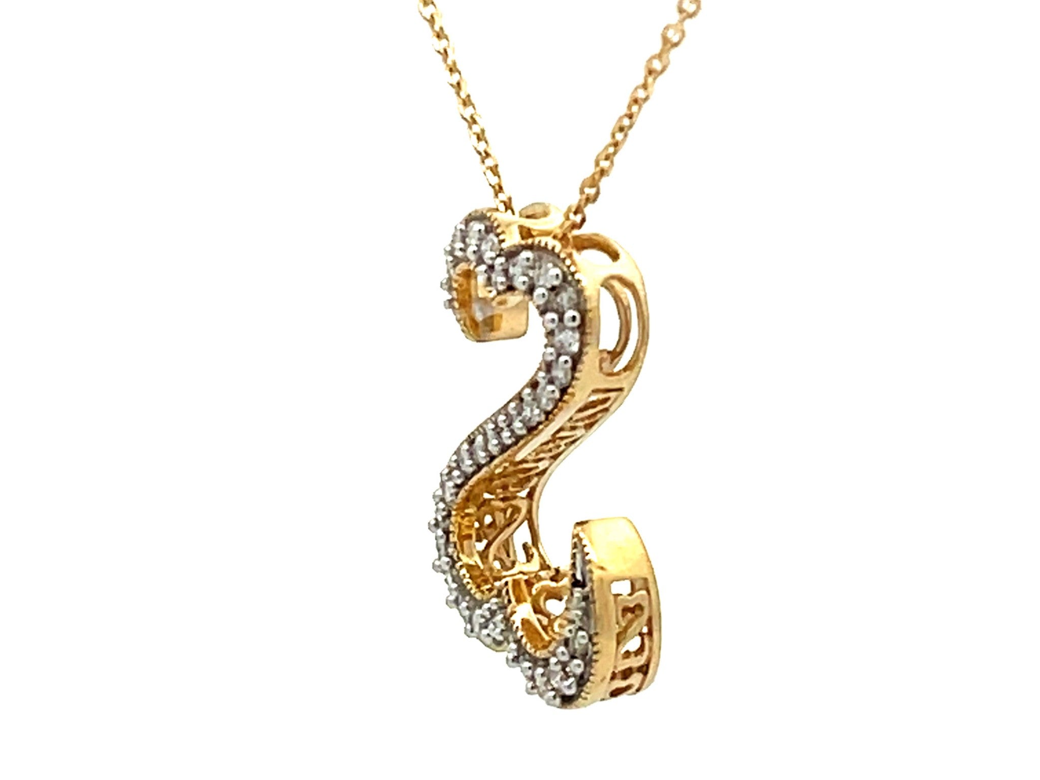 Item Specifications:Necklace Metal: 14k Yellow GoldDiamond Color: IDiamond Clarity: SI1-SI2Diamond Carat Weight: 0.15Diamond Count: 32Chain Length: 20.5"Pendant Measurement: 20 mm x 14.6 mmStamped: "14K" Condition: Preowned, excellent