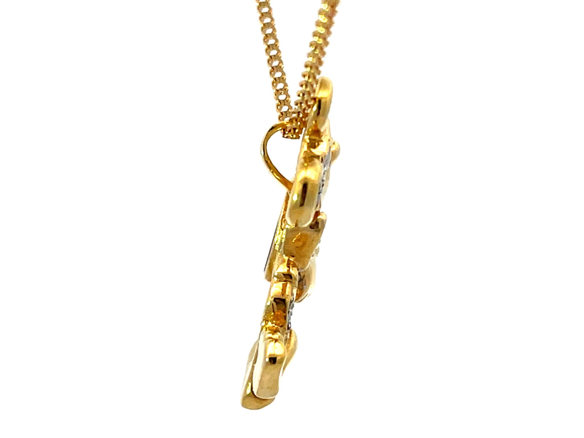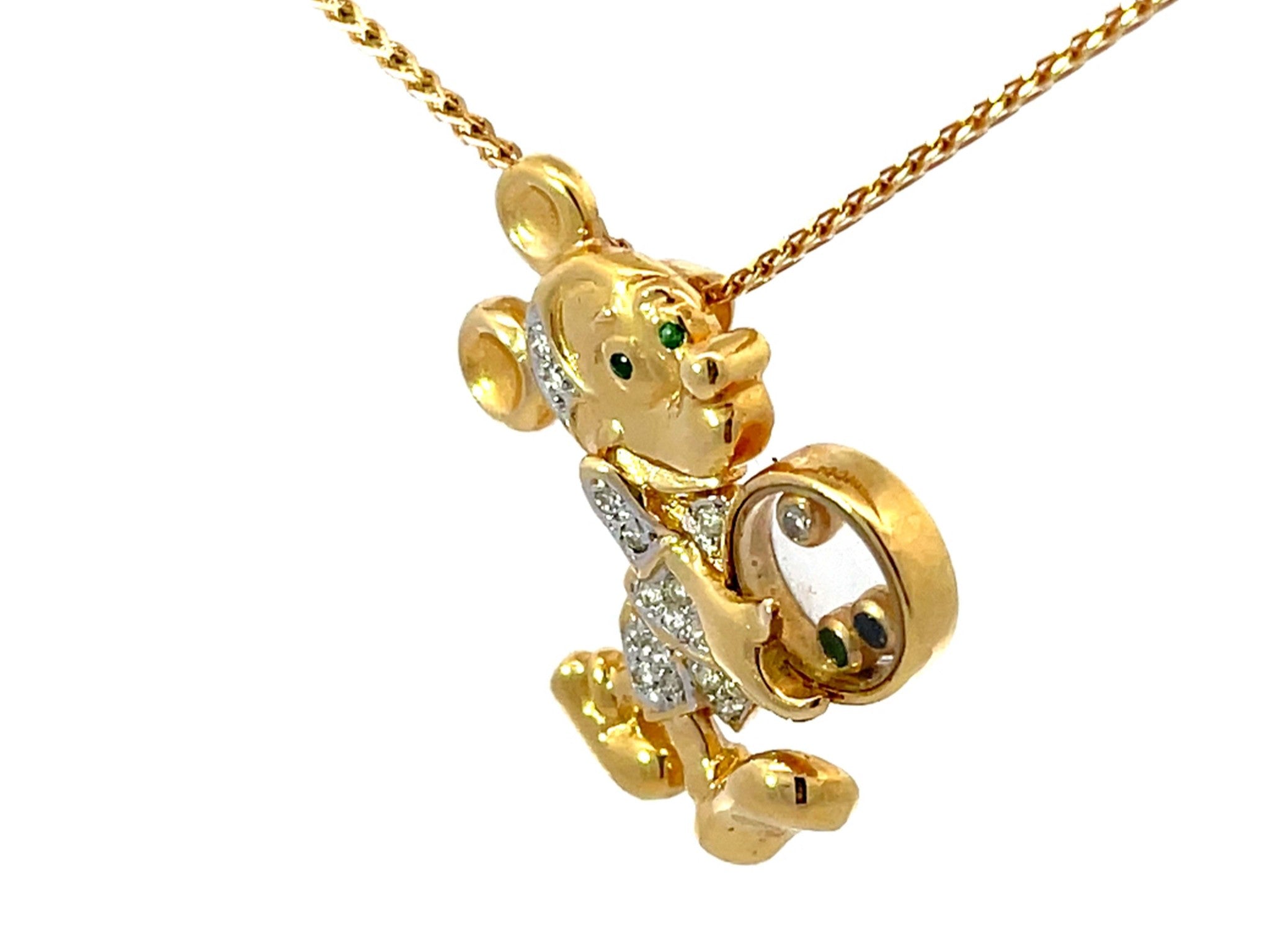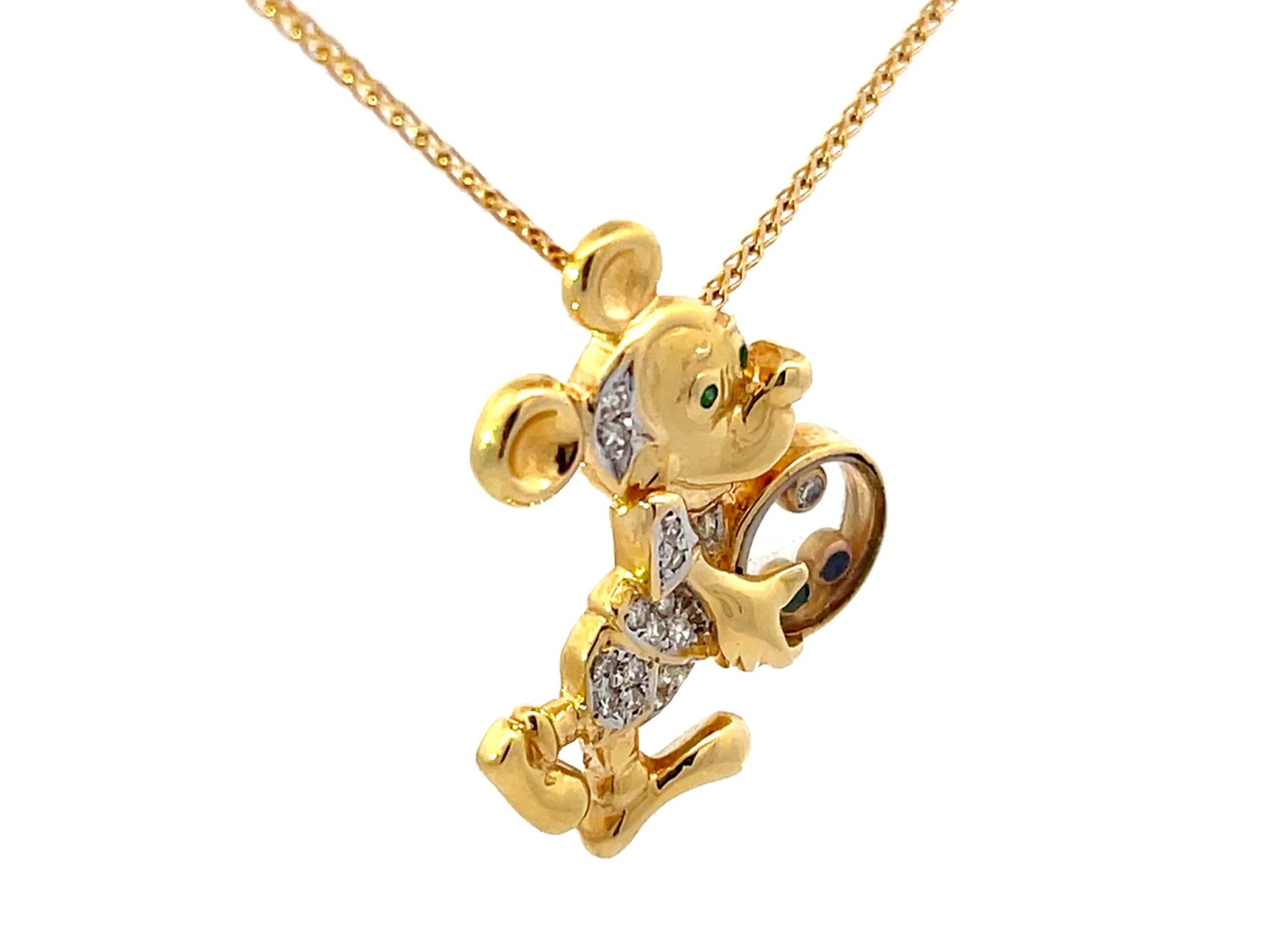 Diamond Emerald Sapphire Mickey Mouse Pendant Necklace Solid 18k Yellow Gold