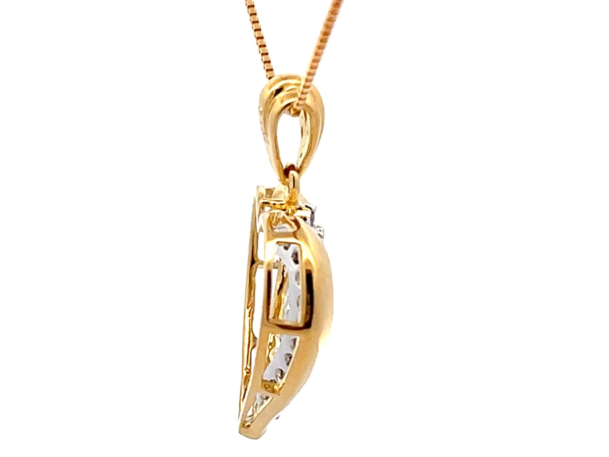 Item Specifications:Necklace Metal: 18k Yellow GoldTotal Weight: 8.7 GramsChain Length: 20" adjustable down to any size Pendant Diameter: 0.8" wide, Pendant drops 1.10"Diamond Count: 27 brilliant cut Diamond Color: H-JDiamond Clarity: SI1-I1Diamond Carat Weight: ~0.56 caratsStamped: "K18" "D0.56"Condition: Preowned, excellent