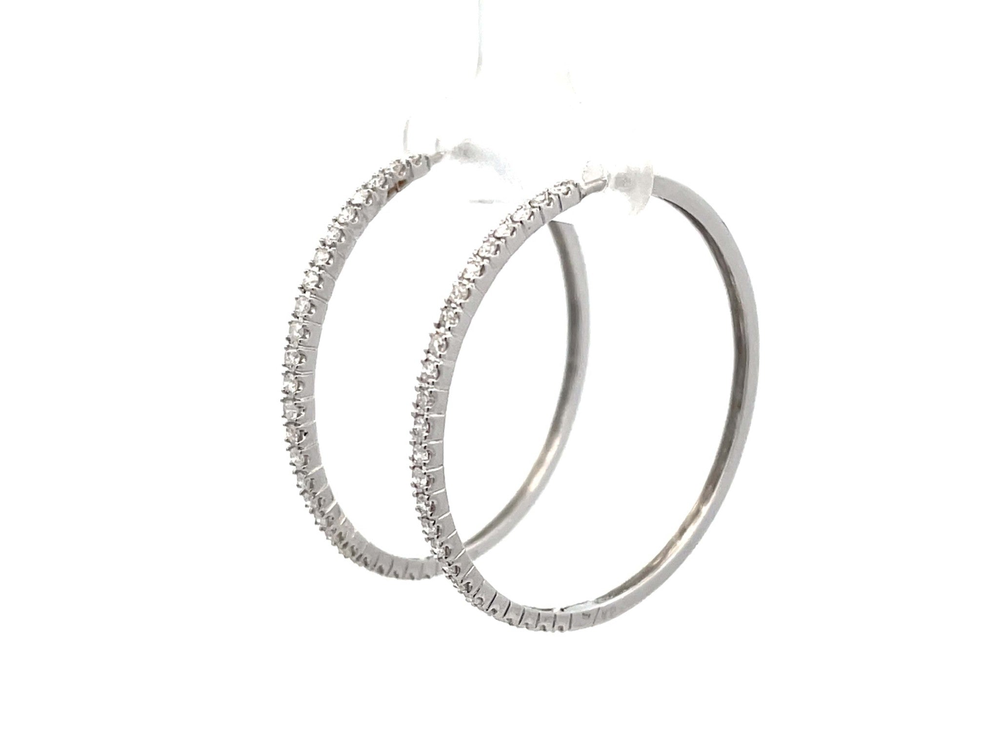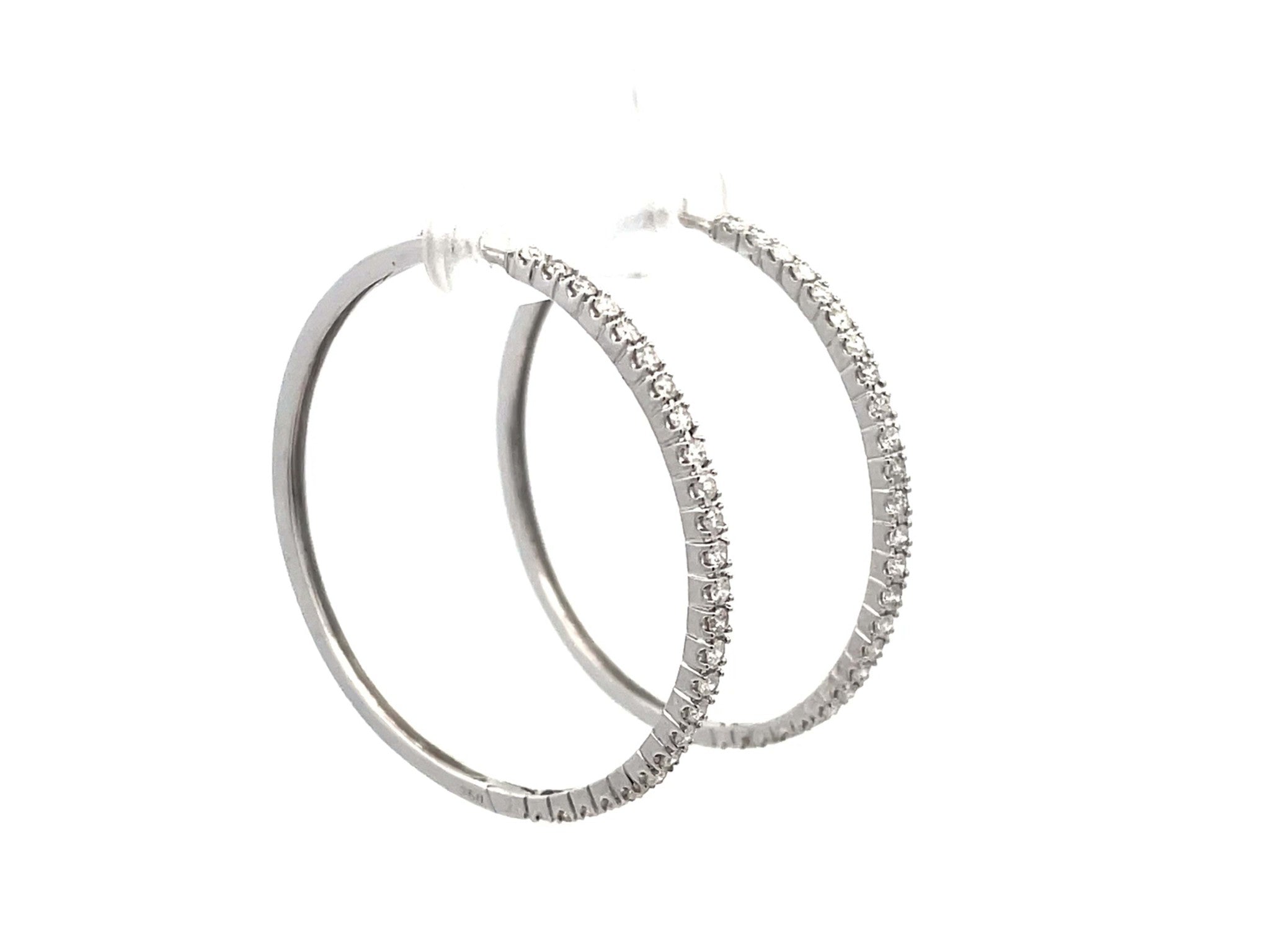 Earrings Specifications:Metal: 18K White GoldTotal Weight: 6.2 GramsEarring Diameter: 1.45"Diamond Count: 50 brilliant cutDiamond Color: G-HDiamond Clarity: SI2-I1Diamond Carat Weight: ~1.00 caratStamped: "750"
