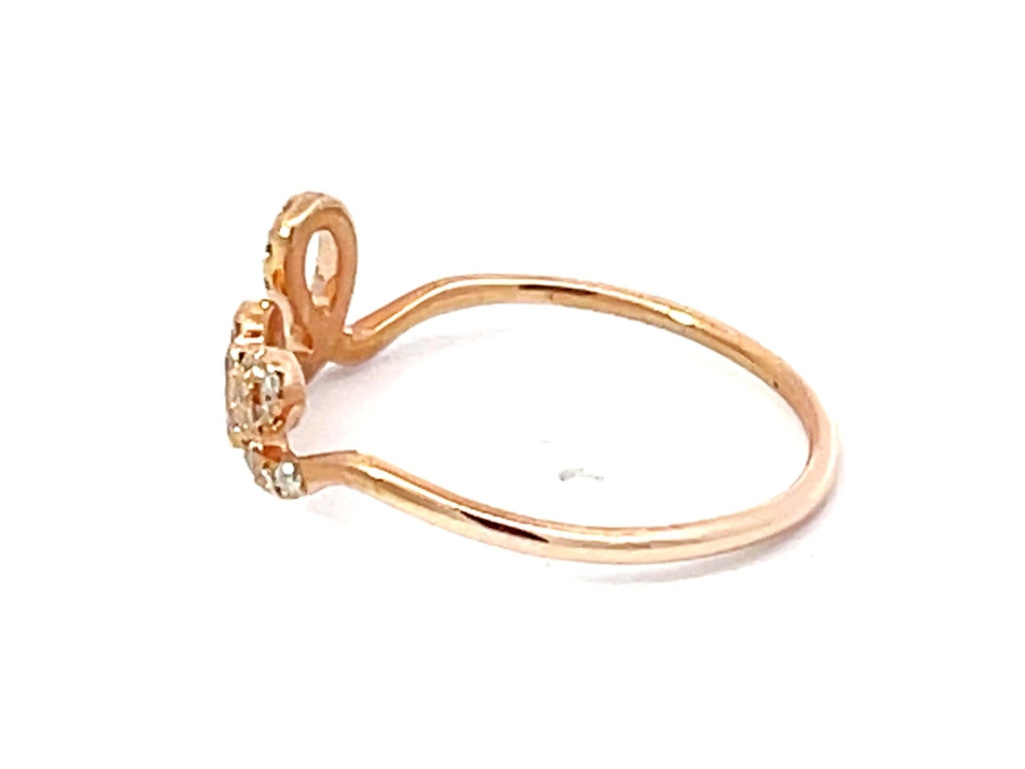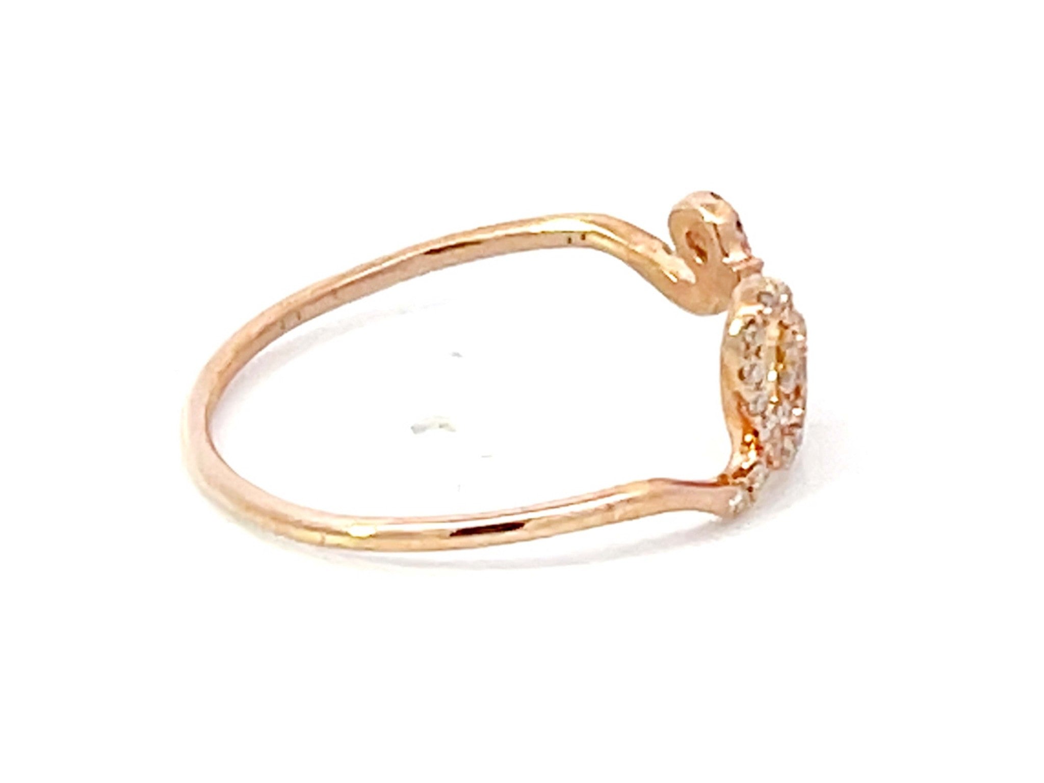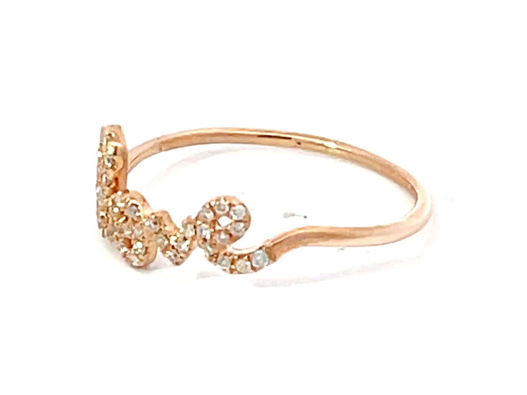 Specifications:Metal: 14K Rose GoldRing Size: 7.25Total weight: 1.1 GramsDiamond Count: 39 Diamond Total Weight: 0.20 CaratsDiamond Shape: Round BrilliantDiamond Color: G-IDiamond Clarity: VS2-I1Stamped: "14K"
