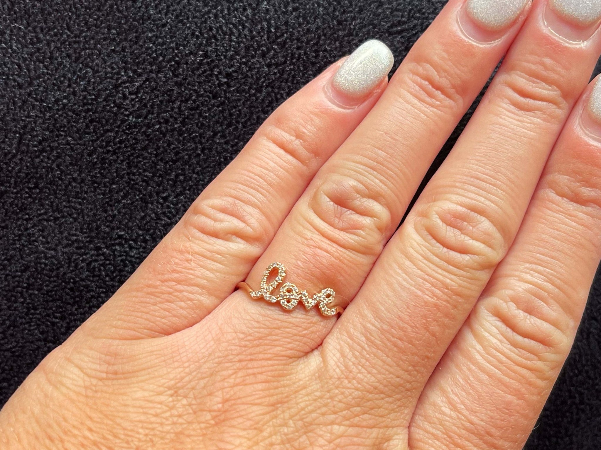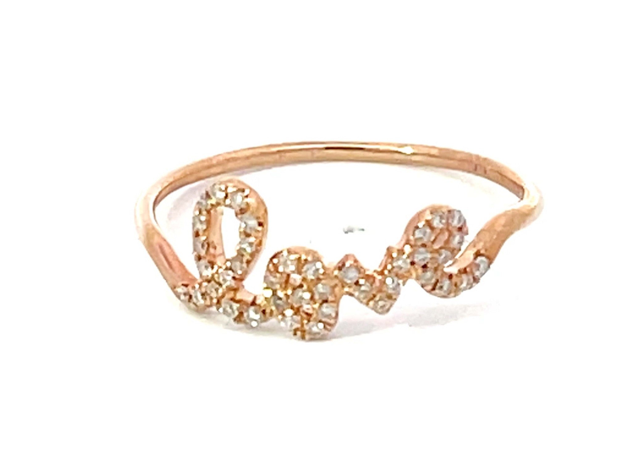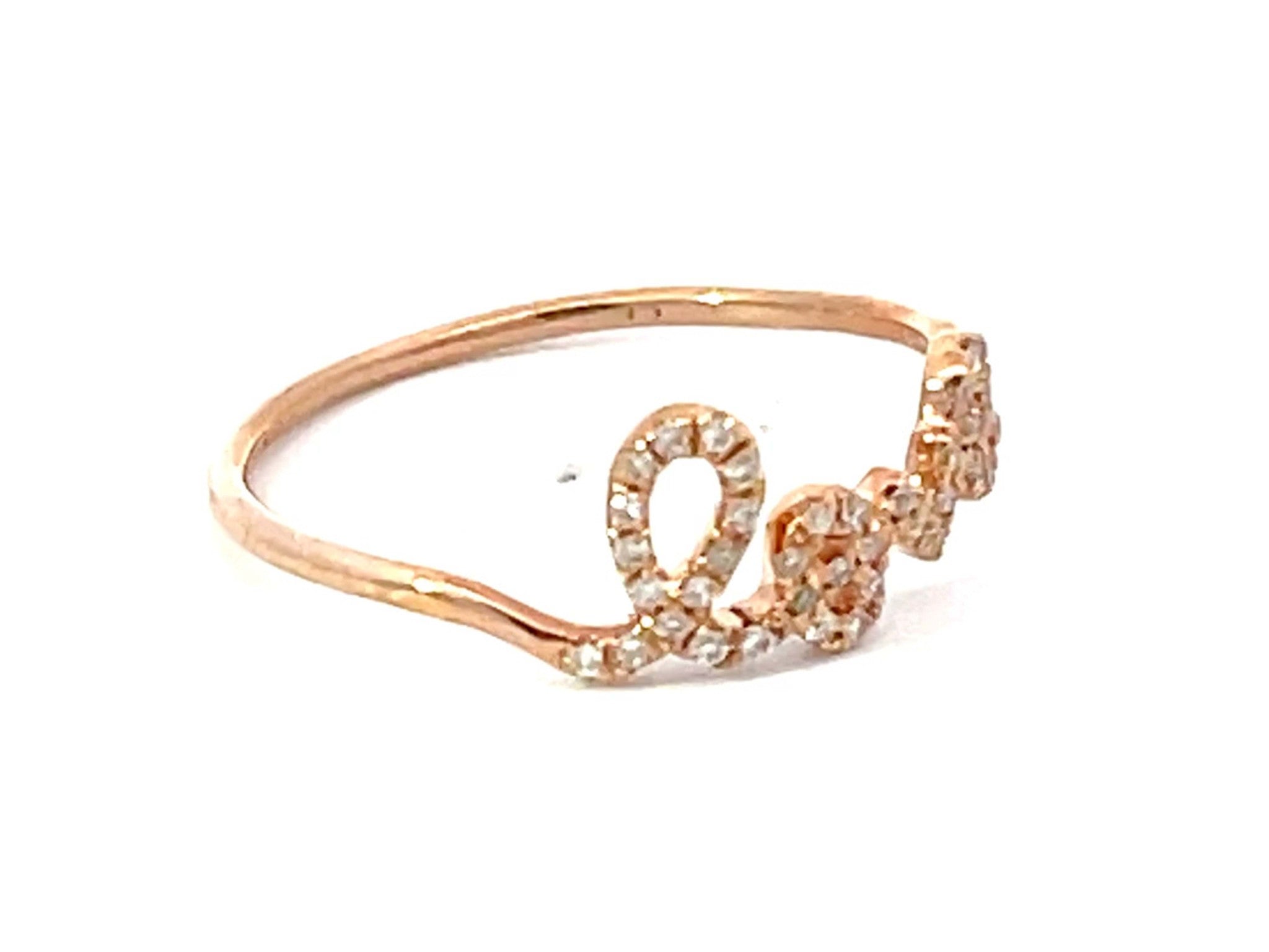 Specifications:Metal: 14K Rose GoldRing Size: 7.25Total weight: 1.1 GramsDiamond Count: 39 Diamond Total Weight: 0.20 CaratsDiamond Shape: Round BrilliantDiamond Color: G-IDiamond Clarity: VS2-I1Stamped: "14K"