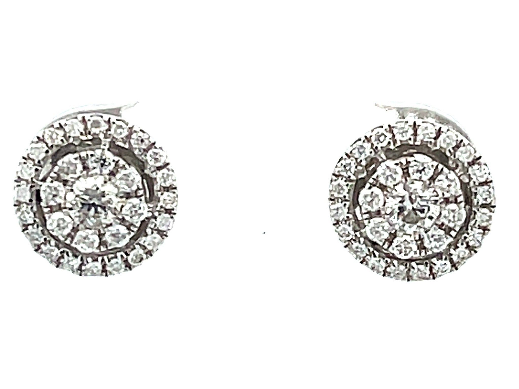 Earrings Specifications:Metal: 14k White GoldEarring Diameter: 8.76 mmTotal Weight: 2.4 GramsDiamonds: 58Setting: ProngDiamond Color: G-HDiamond Clarity: VS-SI1Carat Weight: 0.50 caratsCondition: Preowned100% Authentic. Please ask all questions before bidding or making a best offer.  International Bidders please contact us...