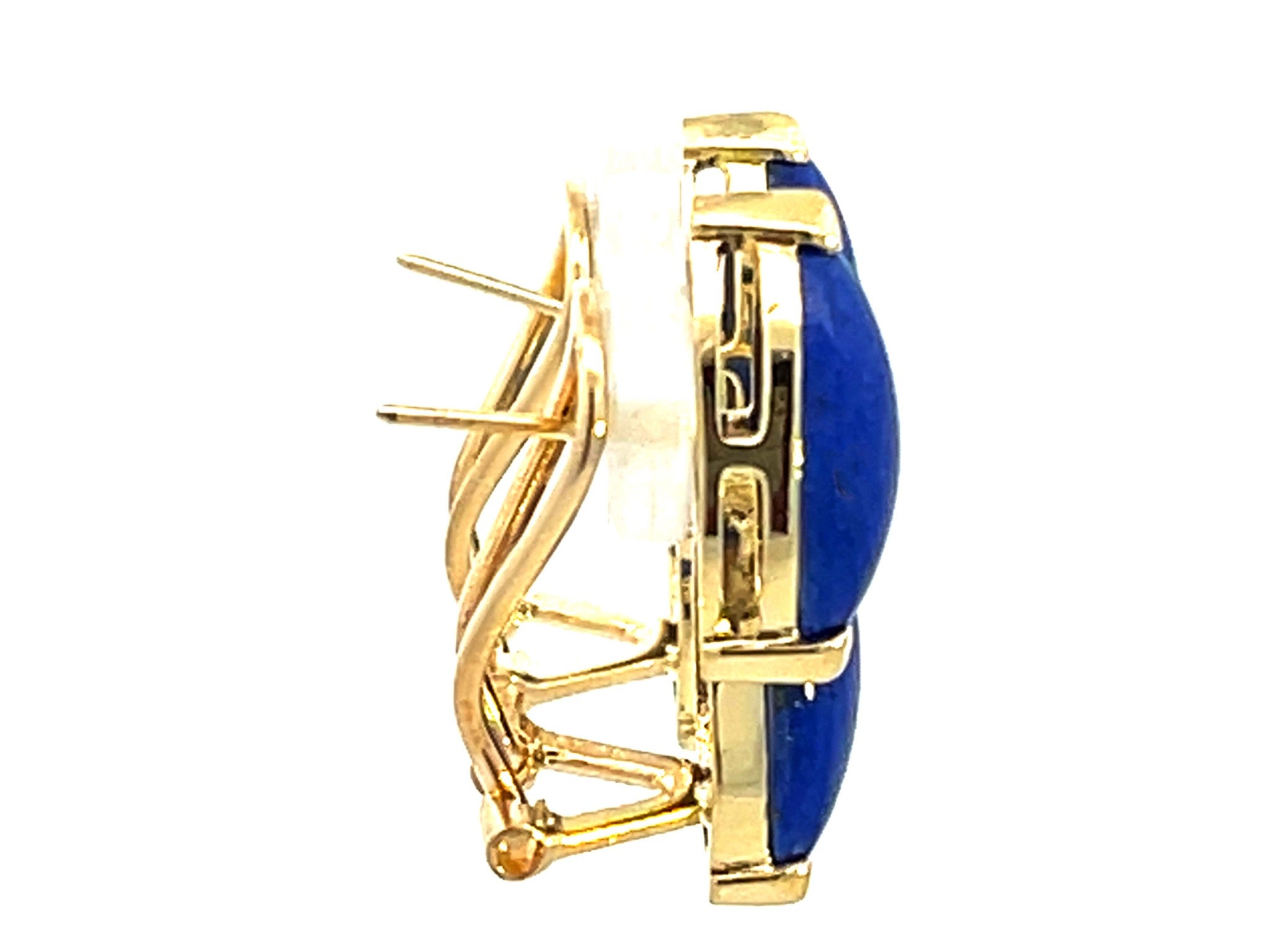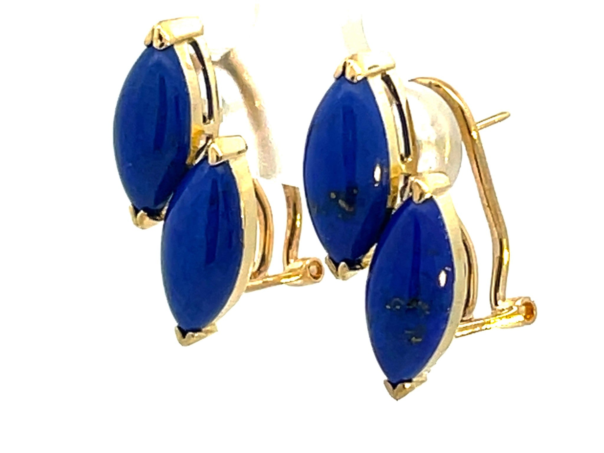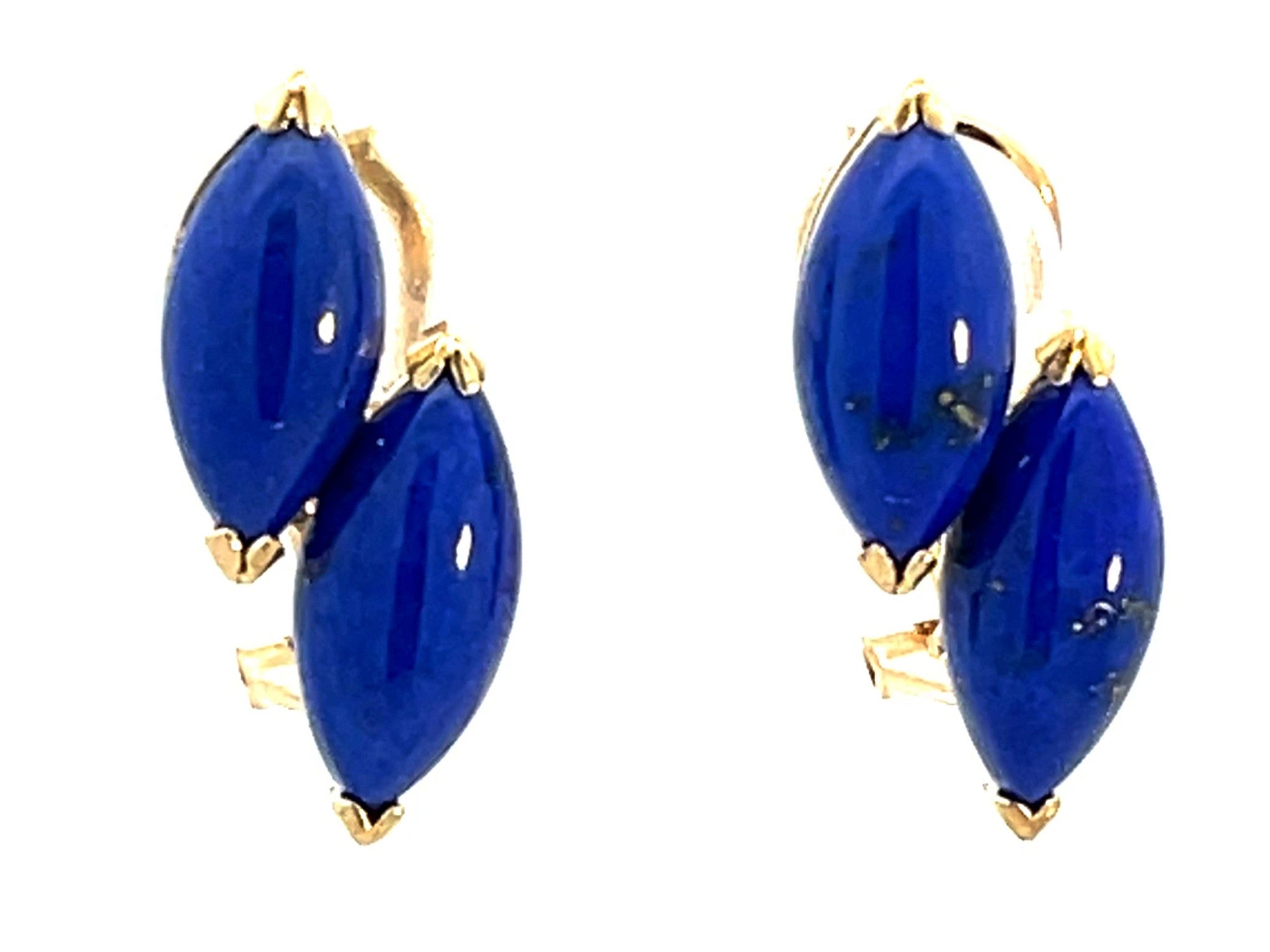 Item Specifications:Gemstone: Lapis LazuliColor: Deep BlueMetal: 14K Yellow GoldWeight: 4.9 GramsMeasurements: 21 mm longStamped: "14K"