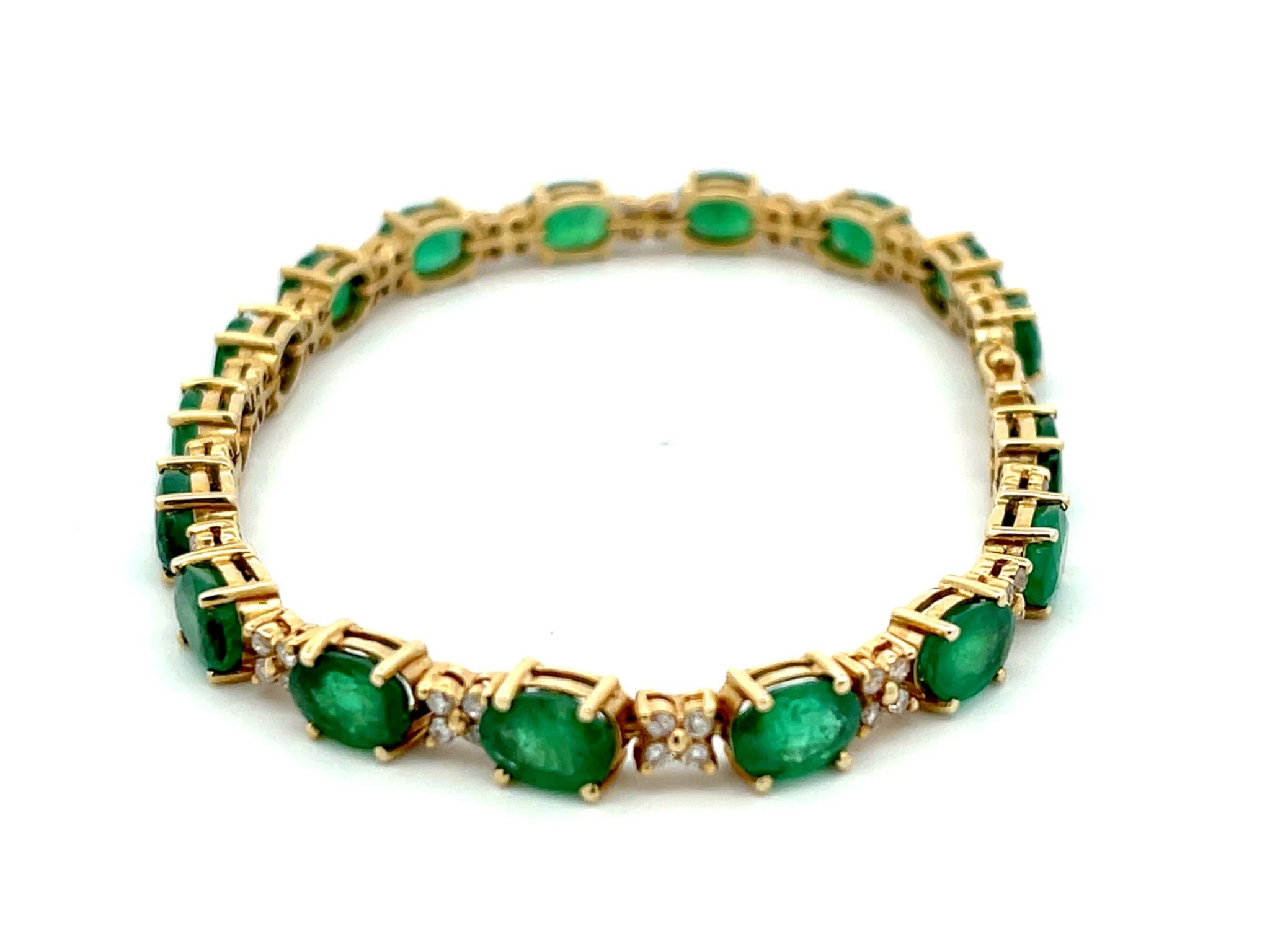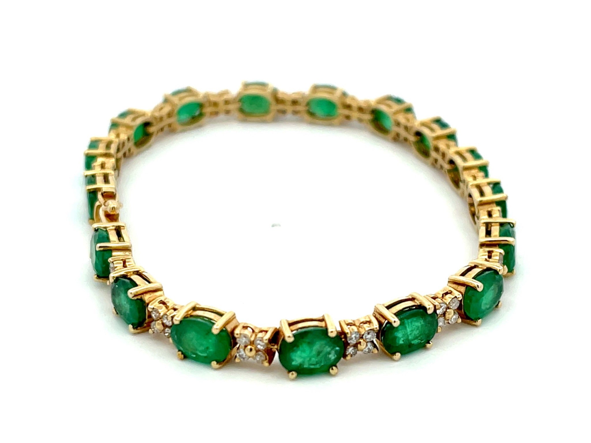 Emerald and Diamond Tennis Bracelet in 14k Yellow Gold