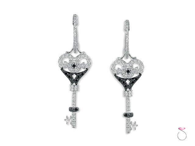 Charming 0.56 carat diamond black and white micro-pave set on 18Kt white gold and black rhodium Dangle Key Earrings. Elegant and chic fits any occasion.Earrings Details: