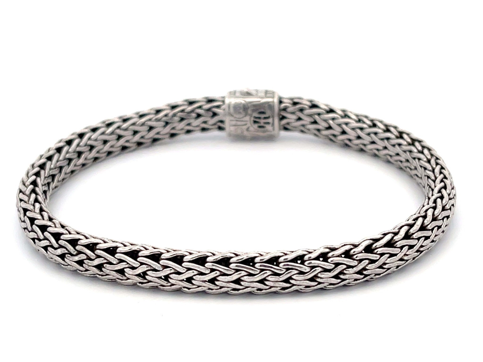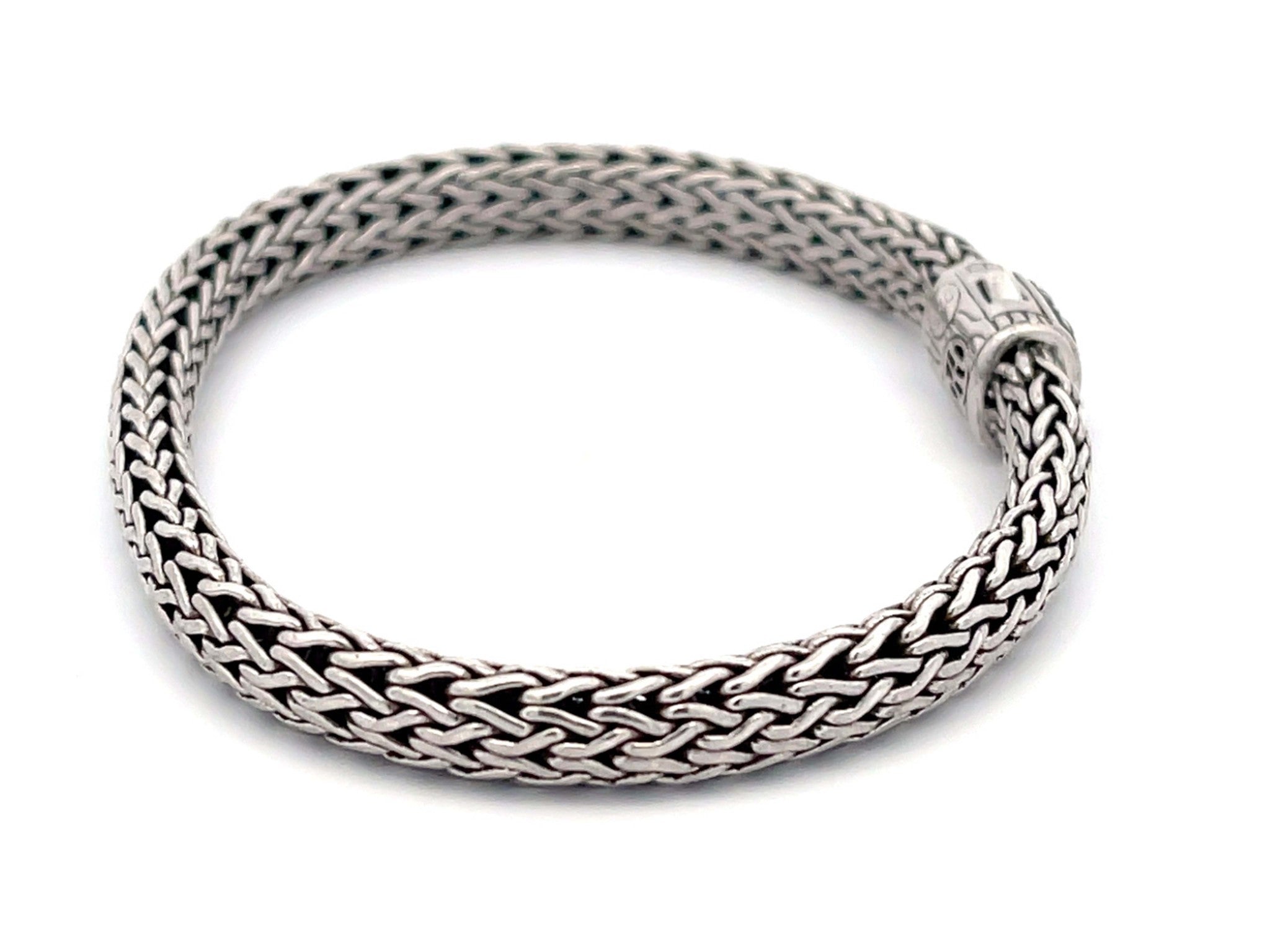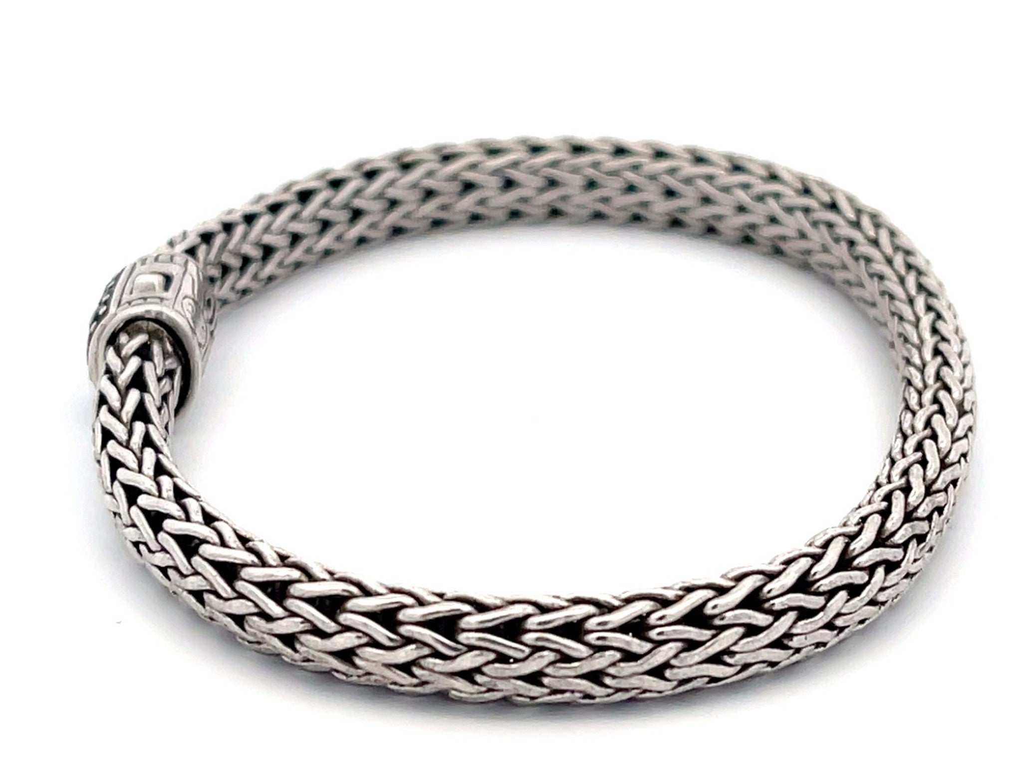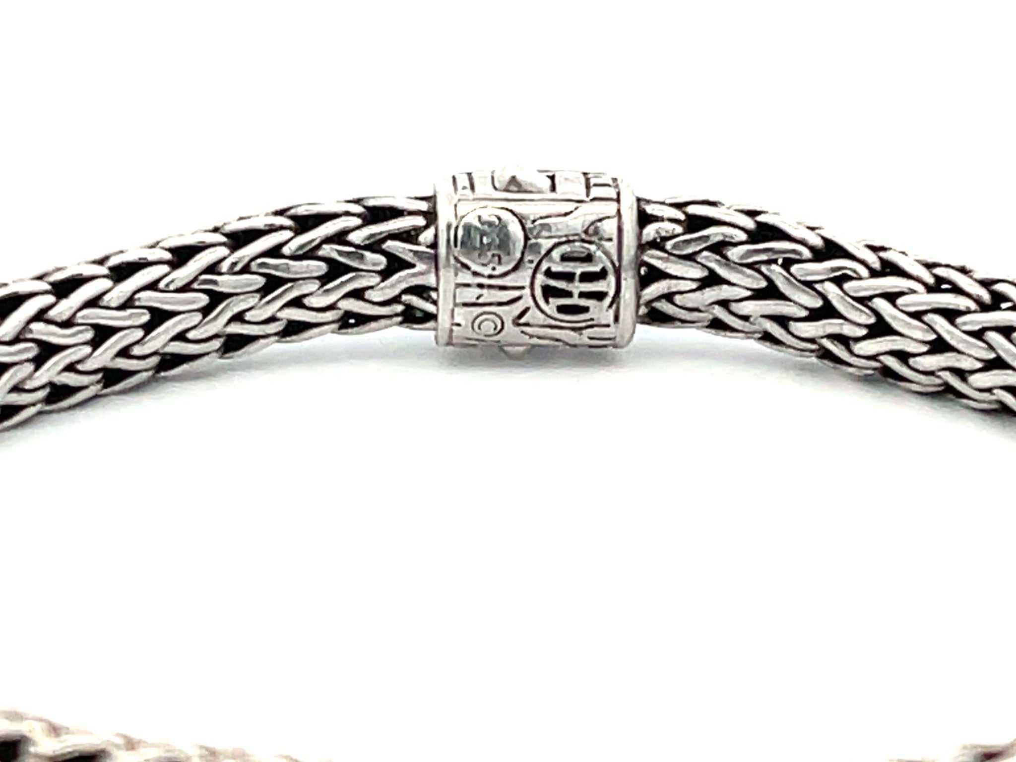 Item Specifications: Brand: John Hardy Metal: Sterling Silver Metal Purity: AG 925 Bracelet Width: 6.45 mm wideBracelet Length: 7.5"Gemstone: Black SapphireTotal Weight: 25.3 GramsCondition: Vintage, ExcellentStamped: "925" 100% Authentic