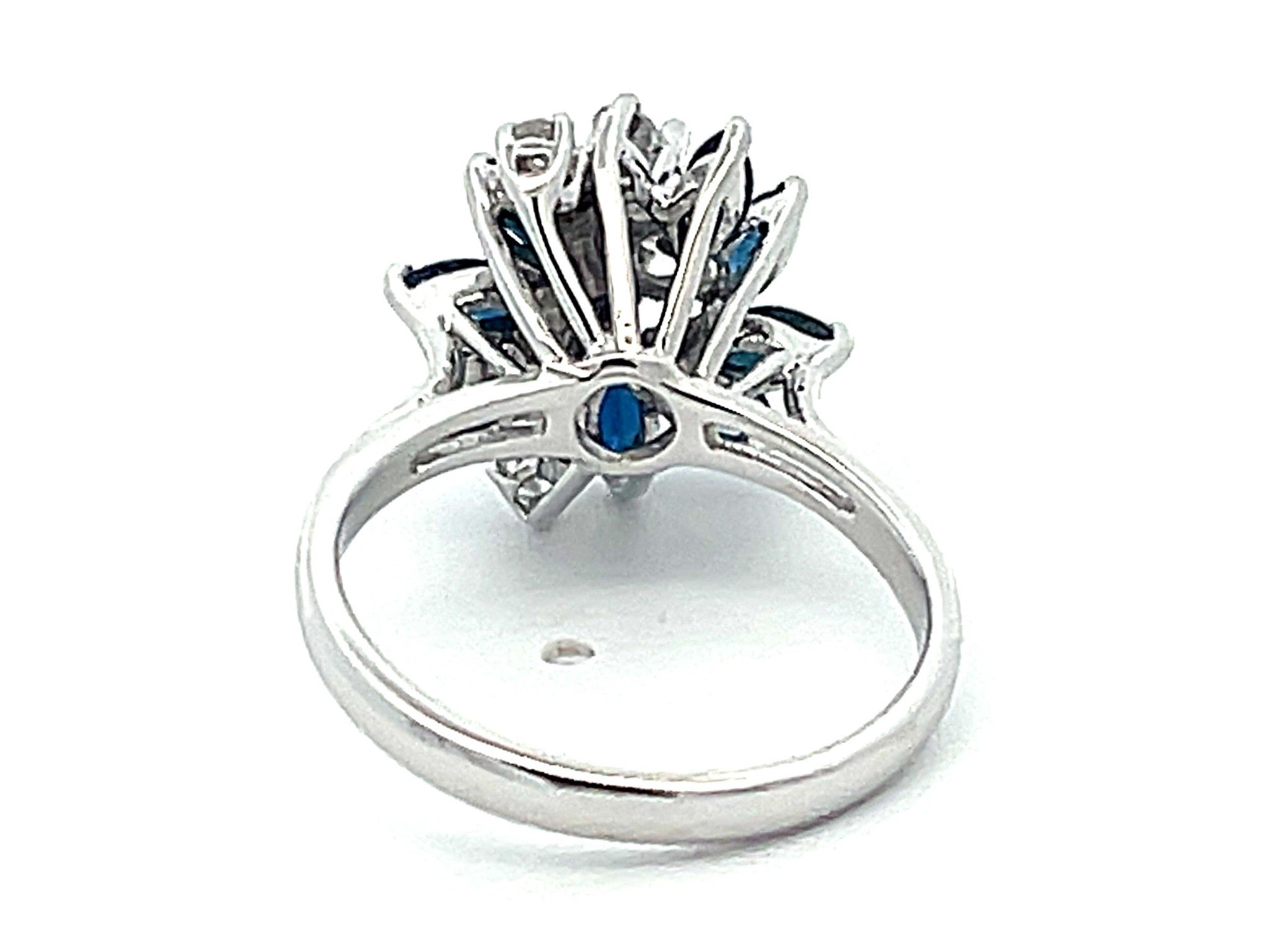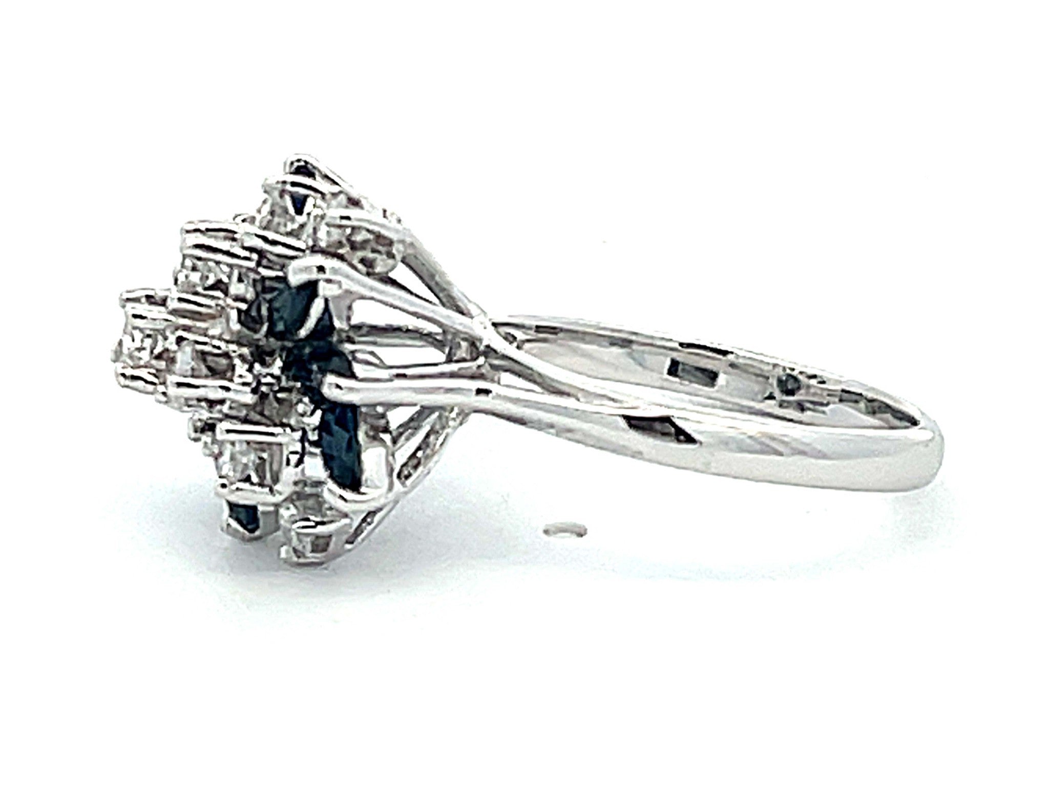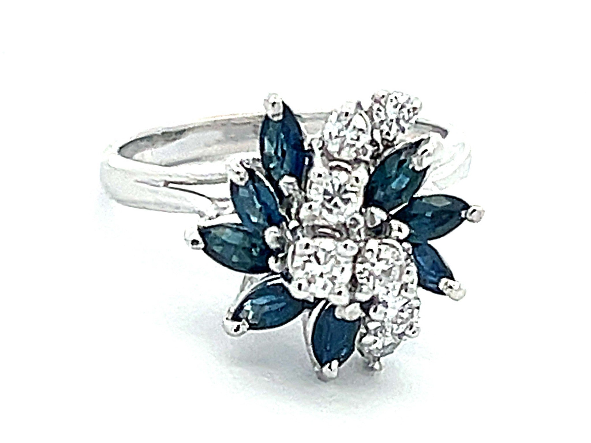 Marquise Sapphire and Diamond Flower Ring in 14k White Gold