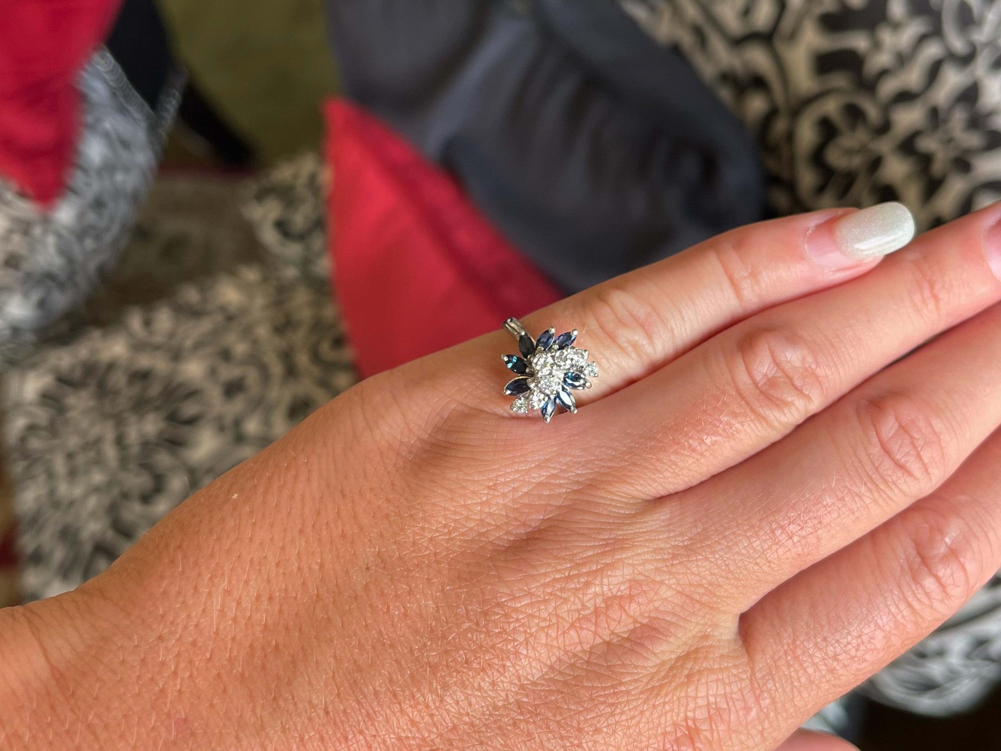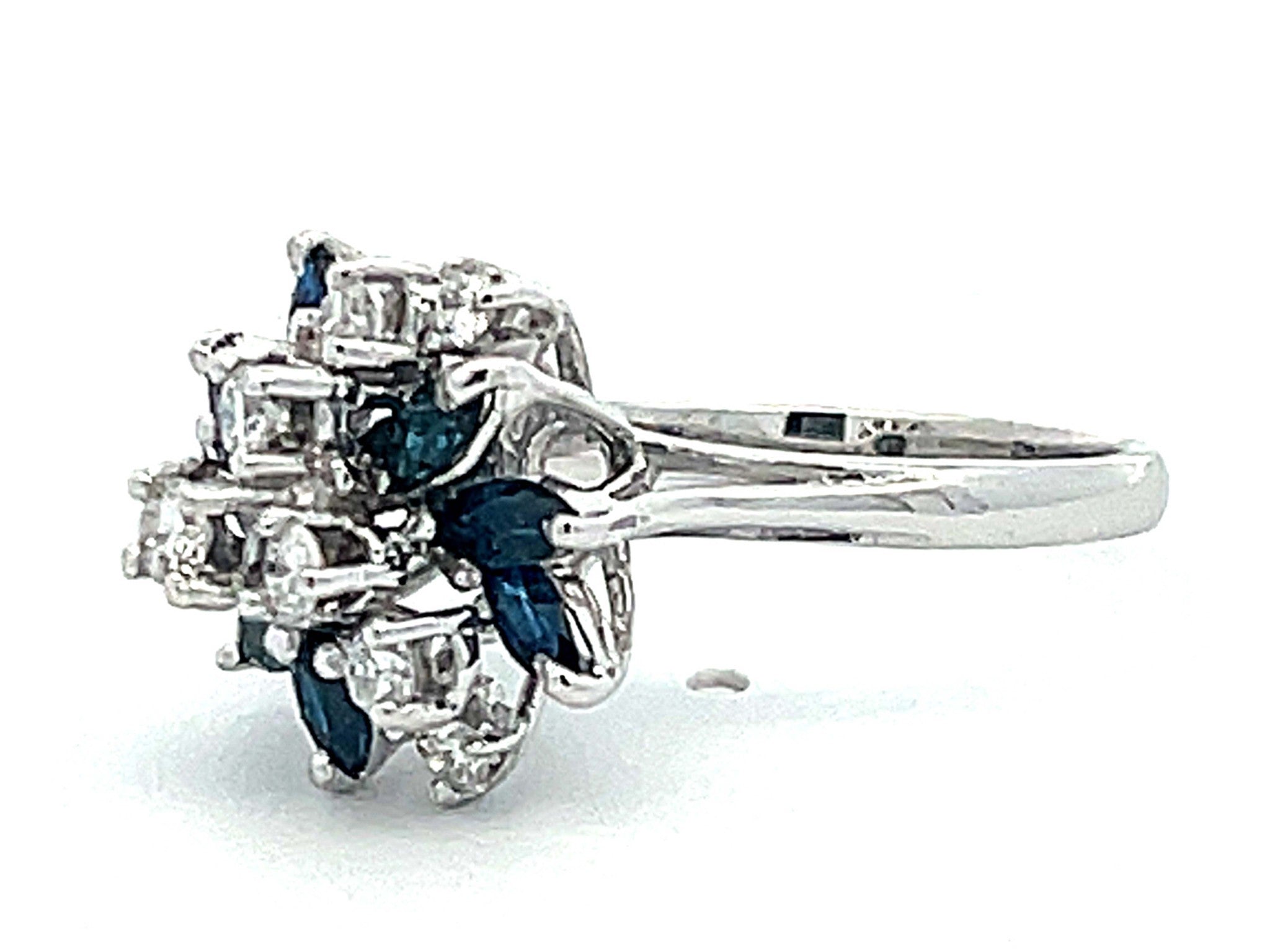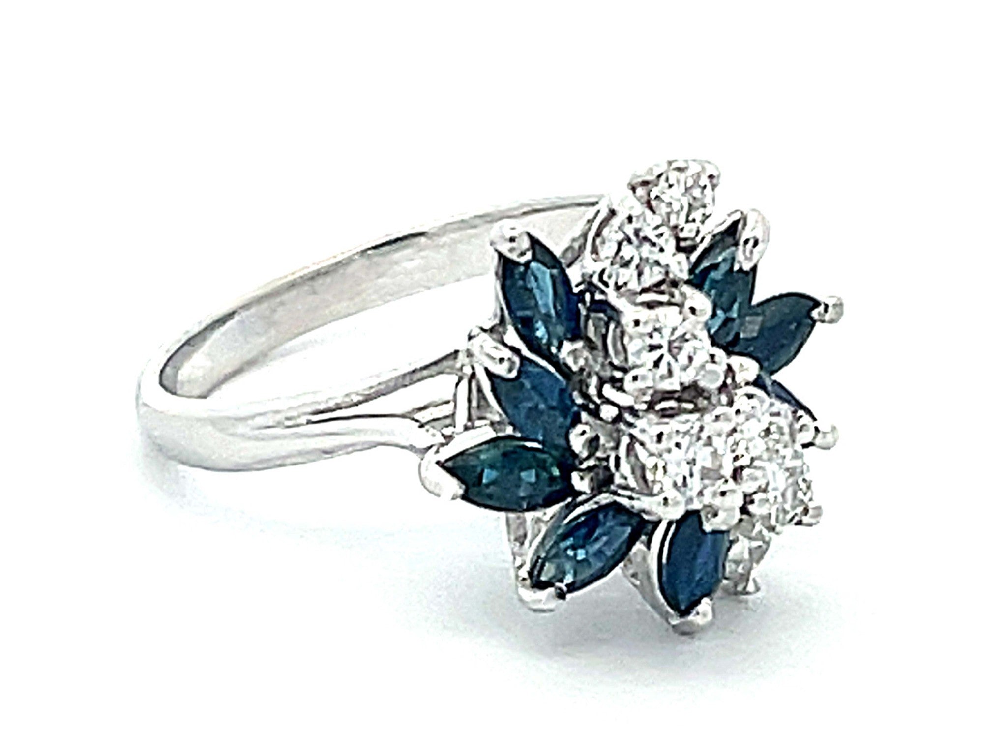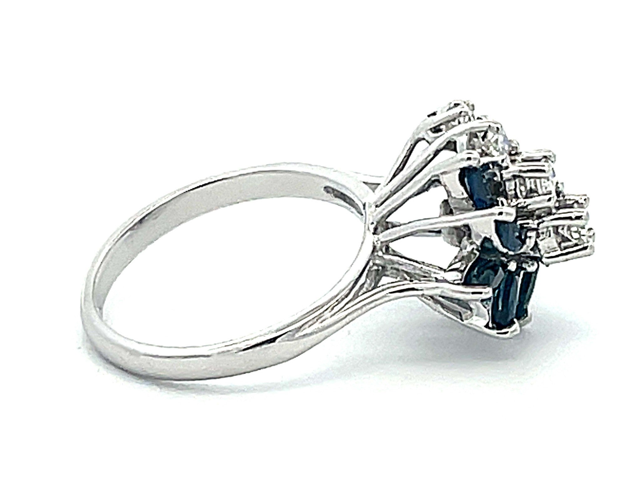 Marquise Sapphire and Diamond Flower Ring in 14k White Gold