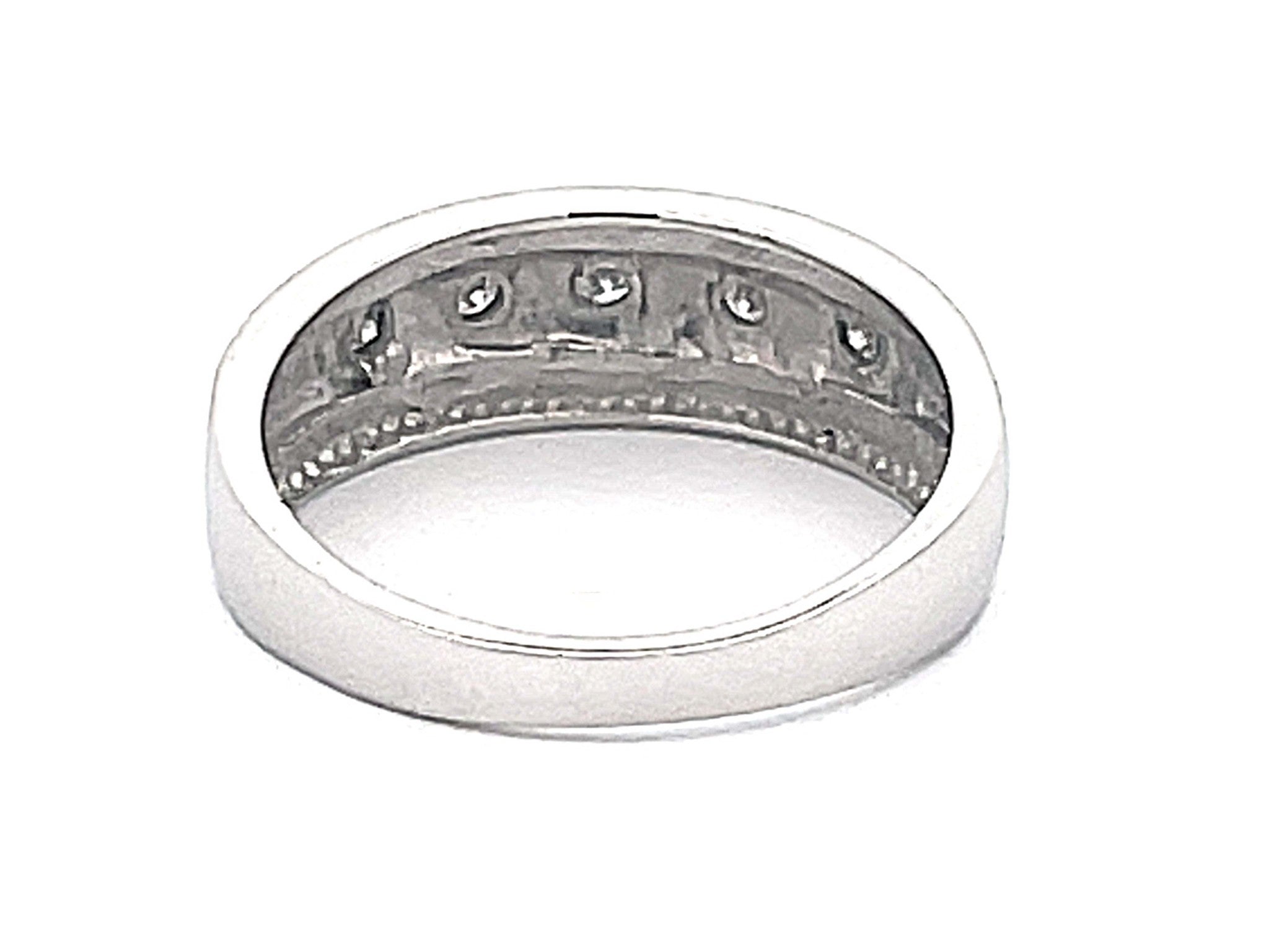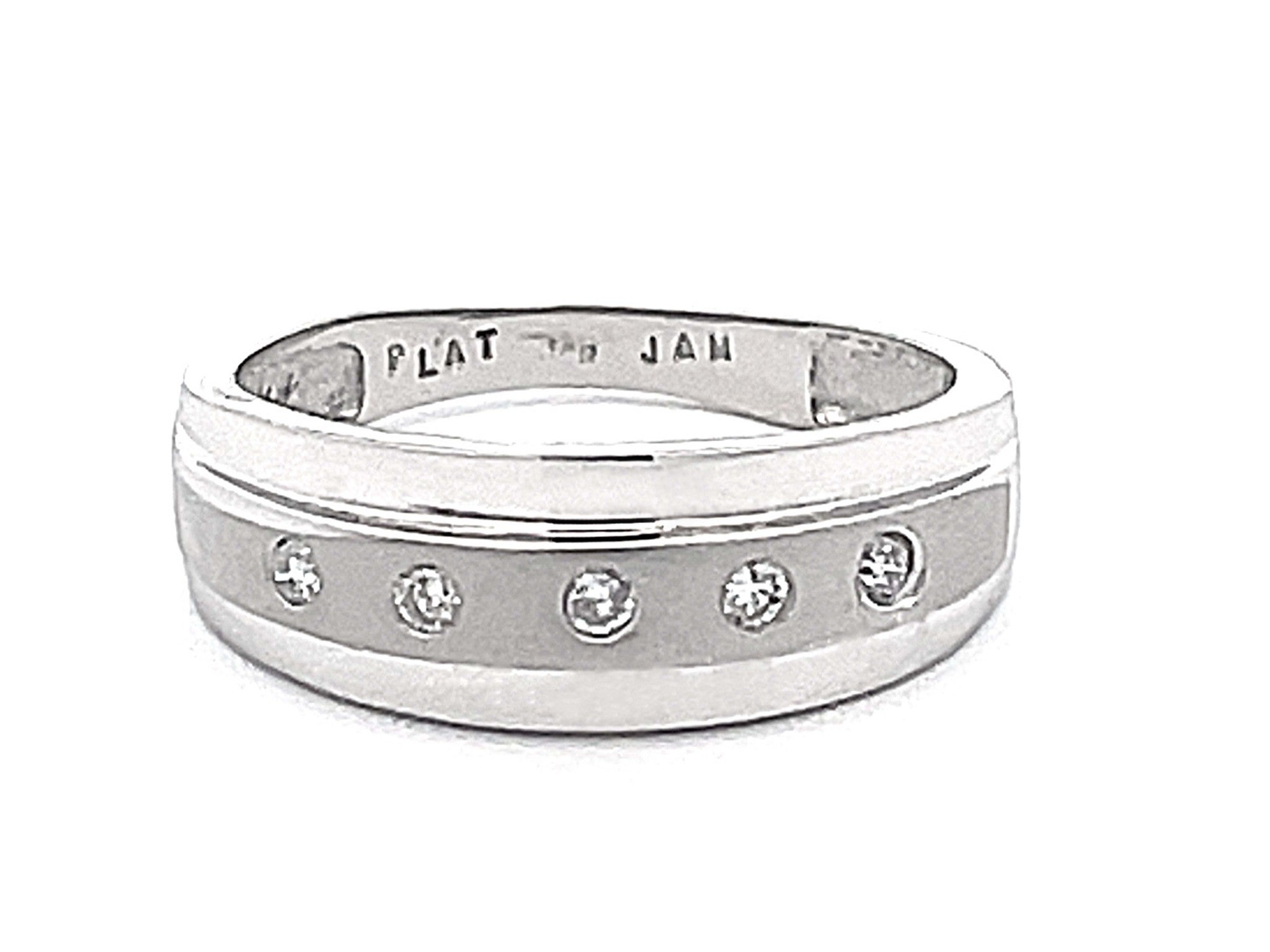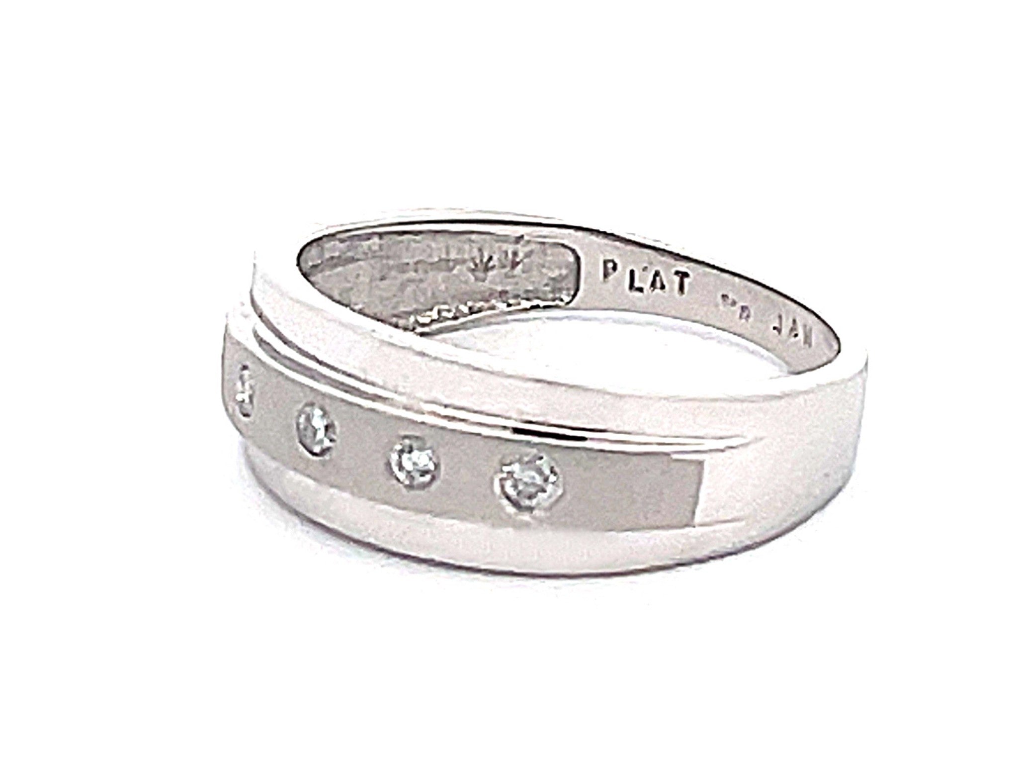 Item Specifications: Metal: PlatinumDiamond Count: 5 Brilliant cutTotal Diamond Carat Weight: 0.10 carats Diamond Color: H-IDiamond Clarity: SI2-I1 Ring Height: ~7.5 mm Ring Size: 9 Total Weight: 6.0 GramsStamped: "PLAT" Condition: NEW