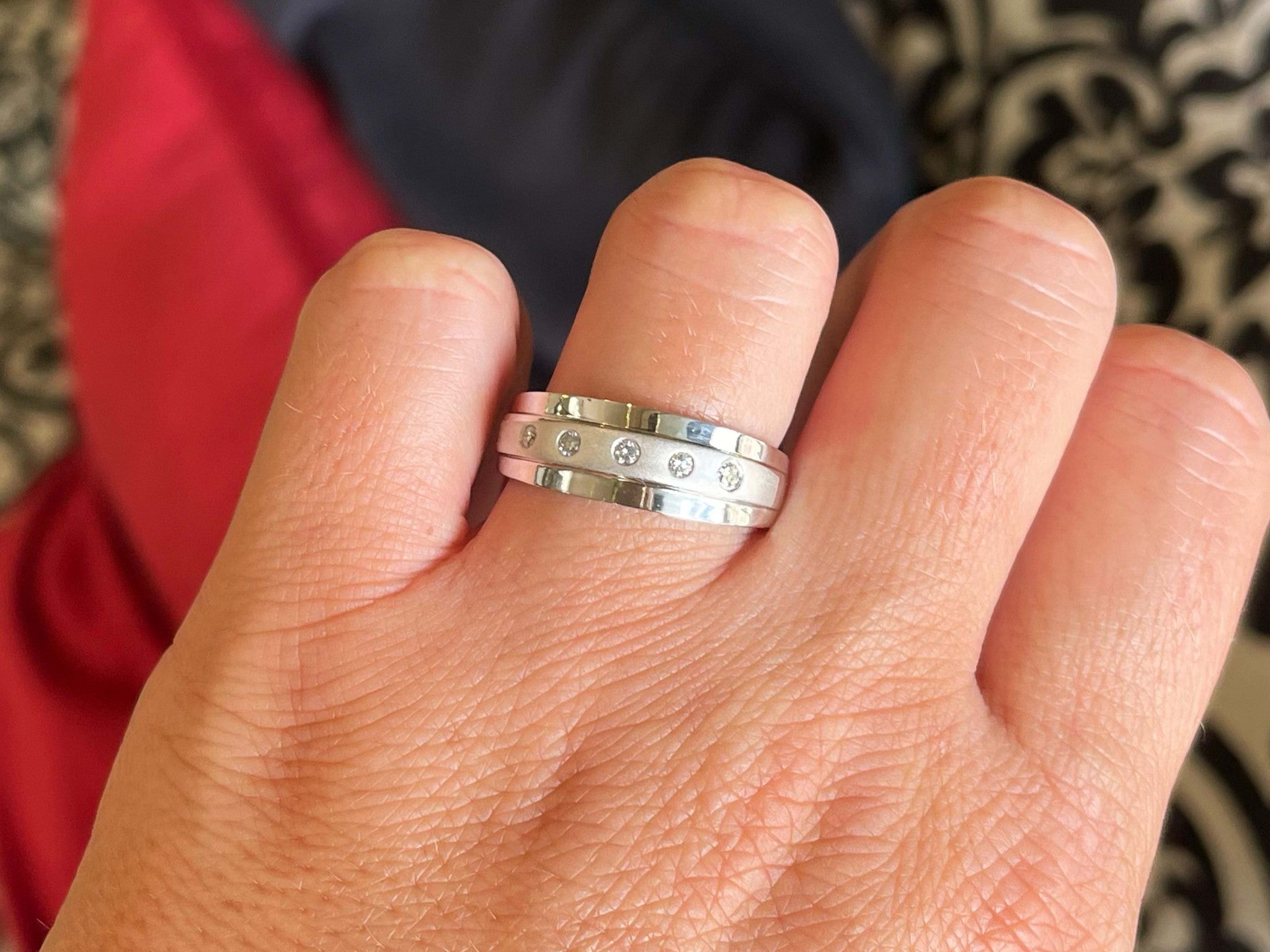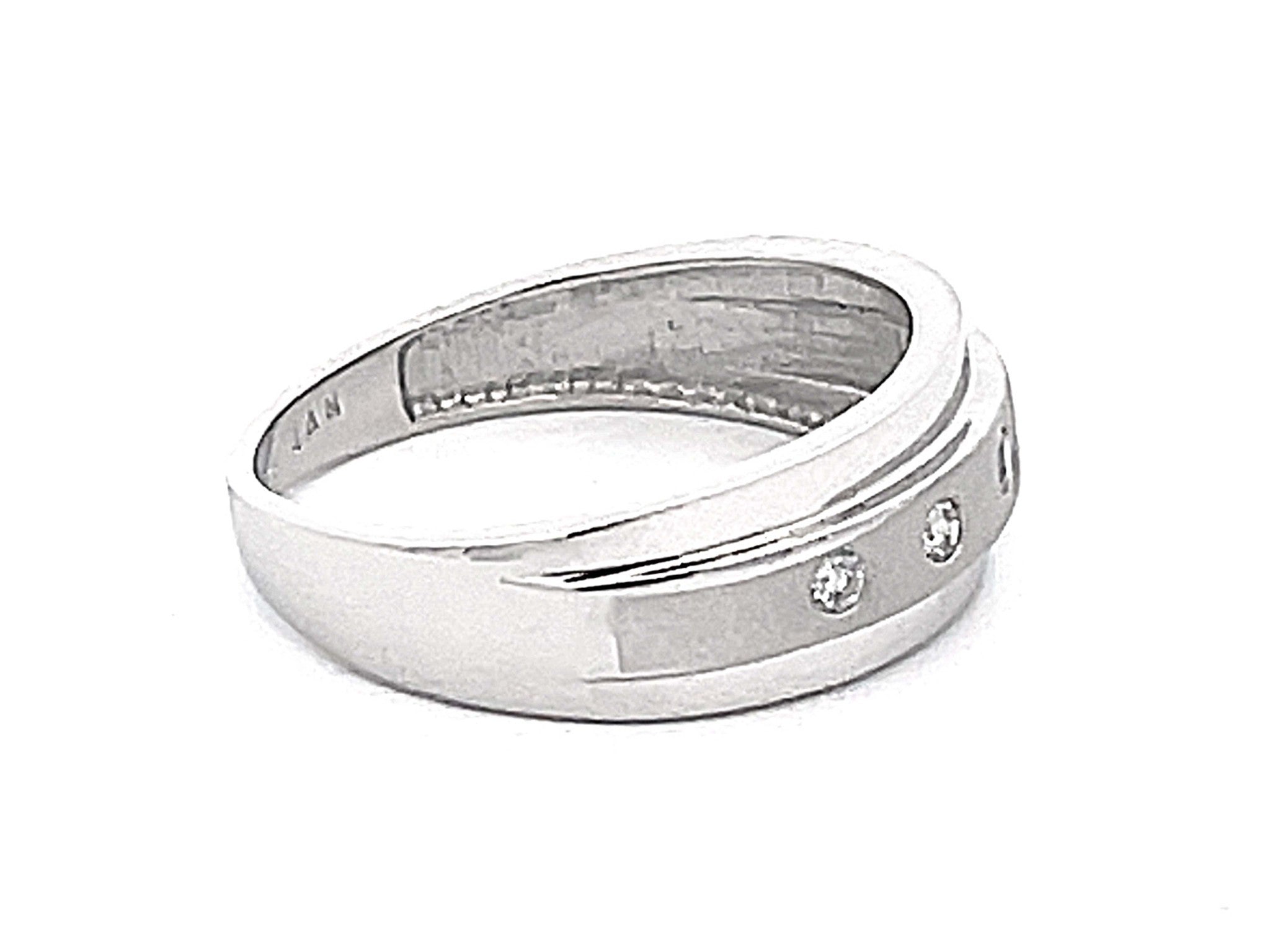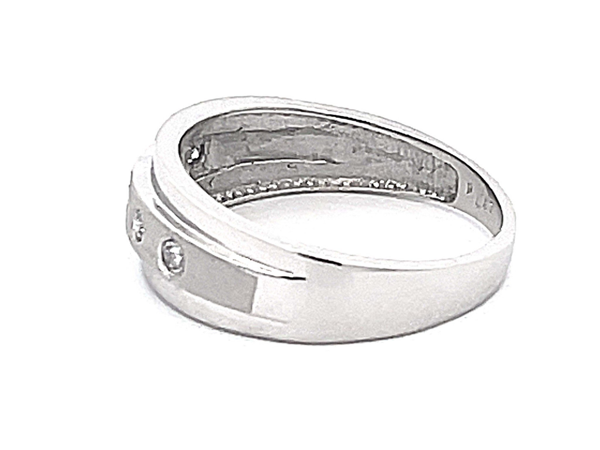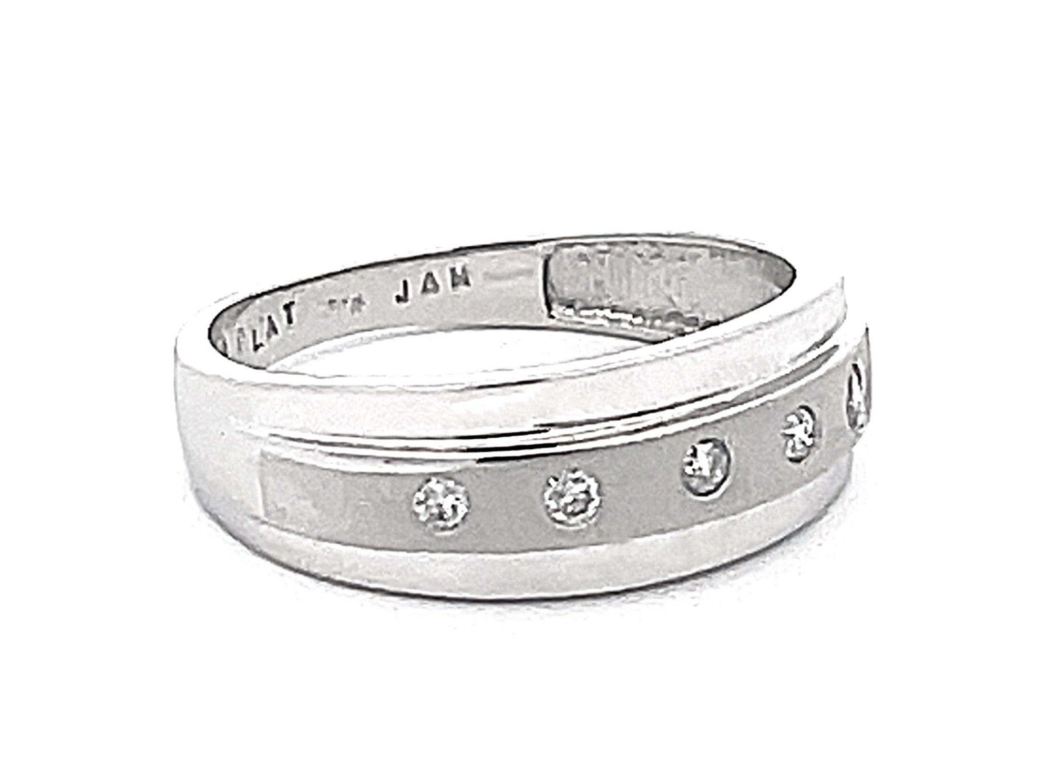 Item Specifications: Metal: PlatinumDiamond Count: 5 Brilliant cutTotal Diamond Carat Weight: 0.10 carats Diamond Color: H-IDiamond Clarity: SI2-I1 Ring Height: ~7.5 mm Ring Size: 9 Total Weight: 6.0 GramsStamped: "PLAT" Condition: NEW