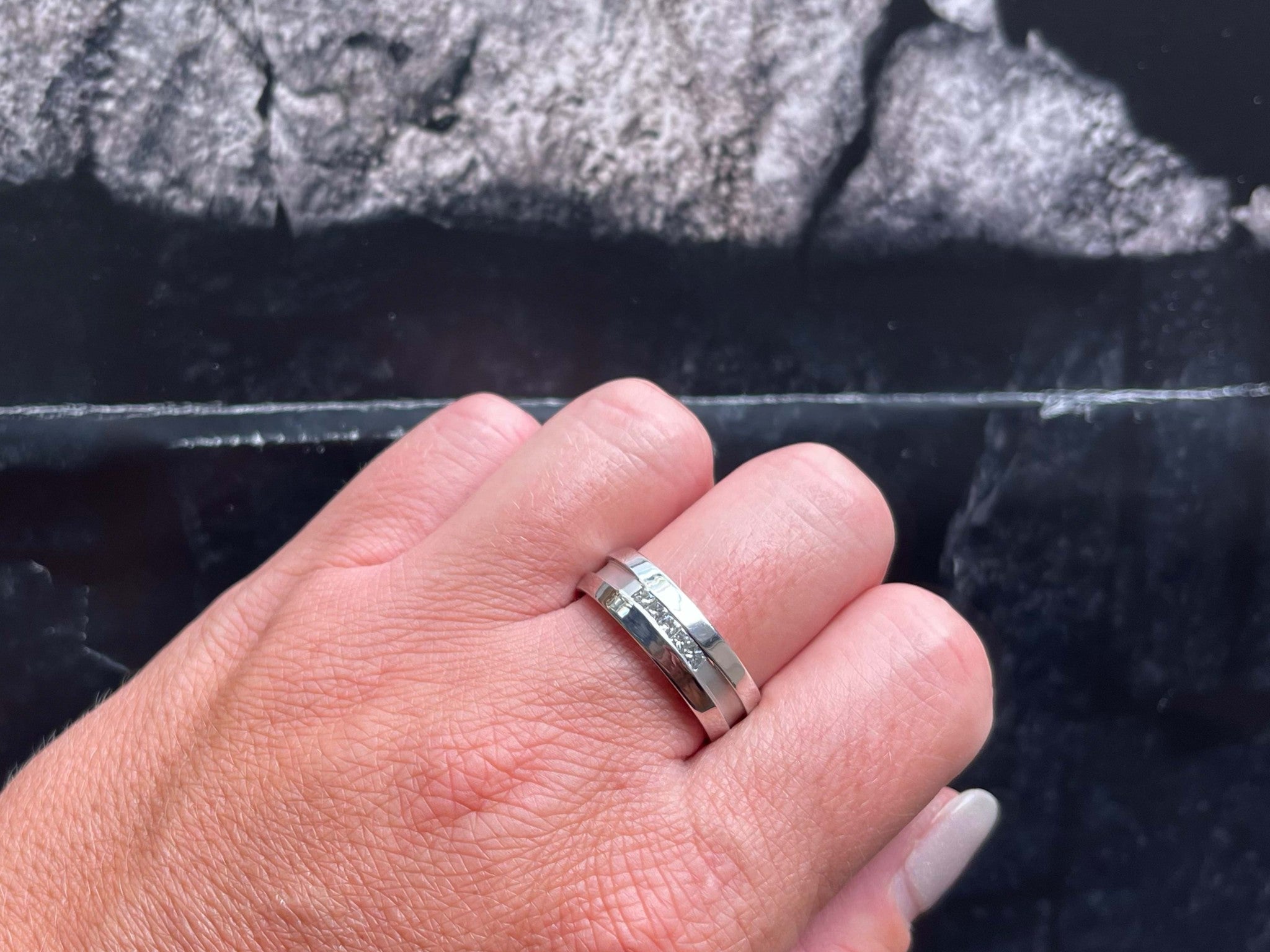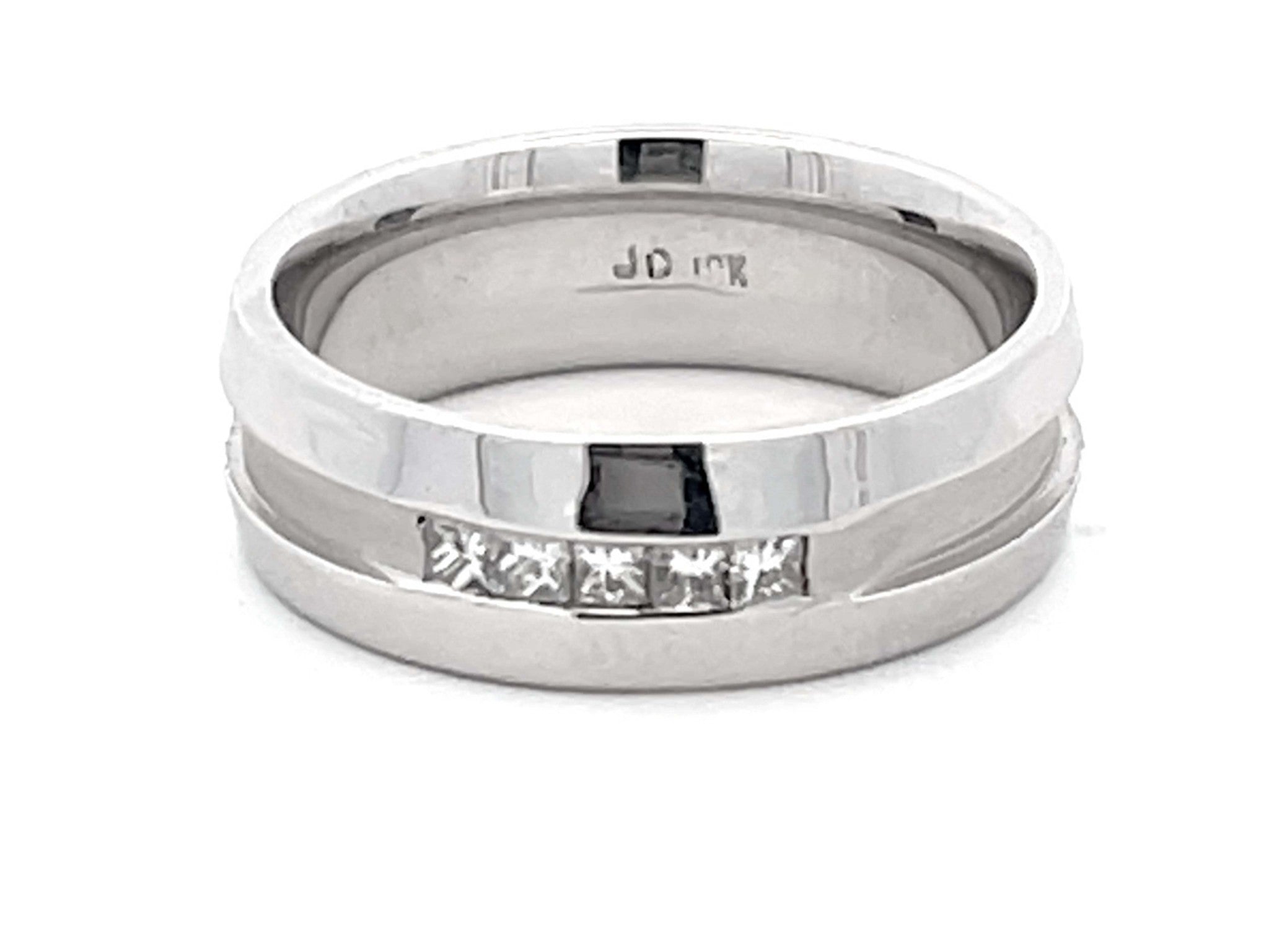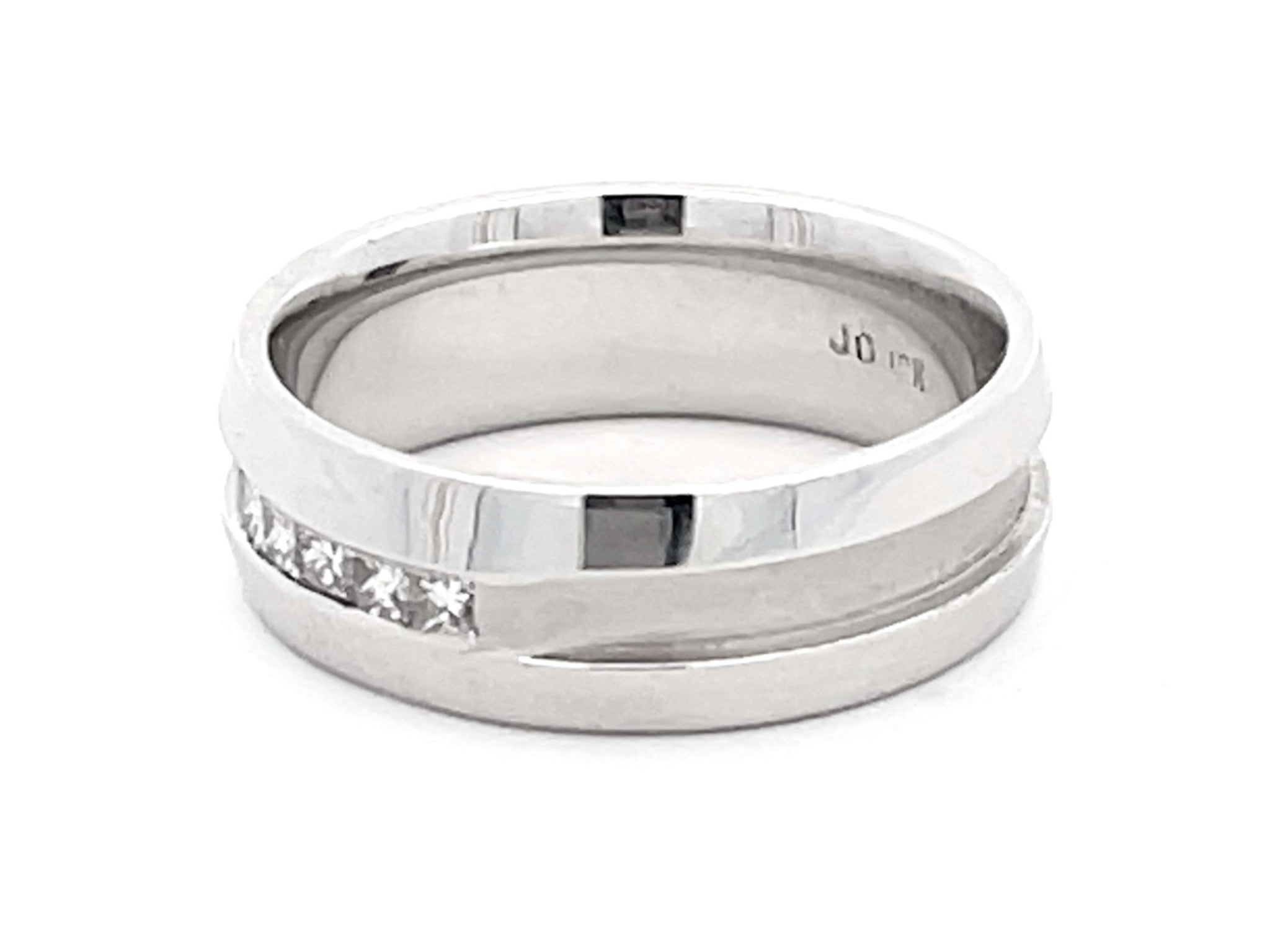 Item Specifications: Metal: 18k White GoldDiamond Count: 5 princess cutTotal Diamond Carat Weight: 0.25 carats Diamond Color: G Diamond Clarity: VS1 Ring Height: ~7 mm Ring Size: 9 Total Weight: 9.5 GramsStamped: "18K" Condition: NEW