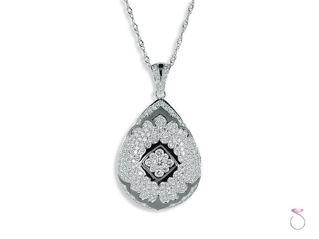 A 1.12ct Micro-pave diamond on 18K White Gold teardrop pendant. Exquisite craftsmanship with a touch of glare makes it a special pendant for any occasion.