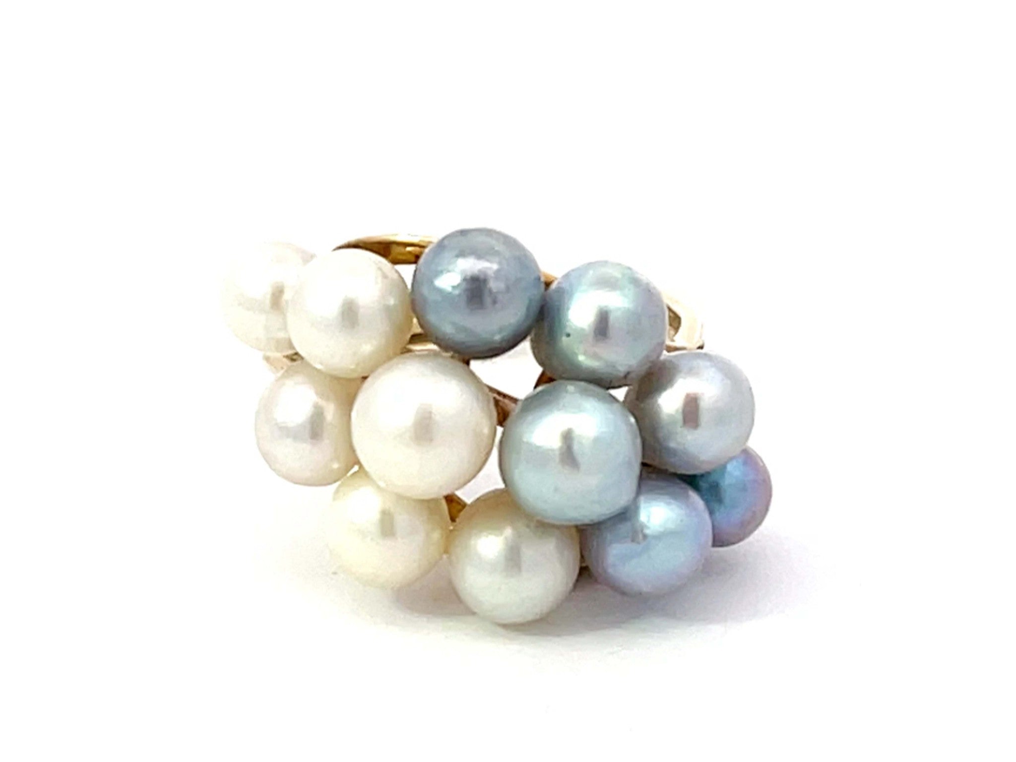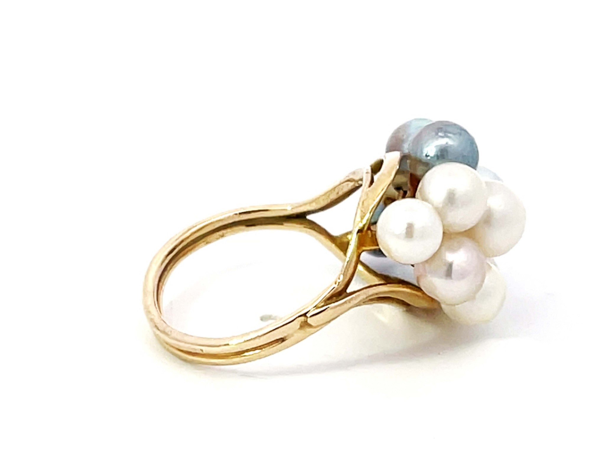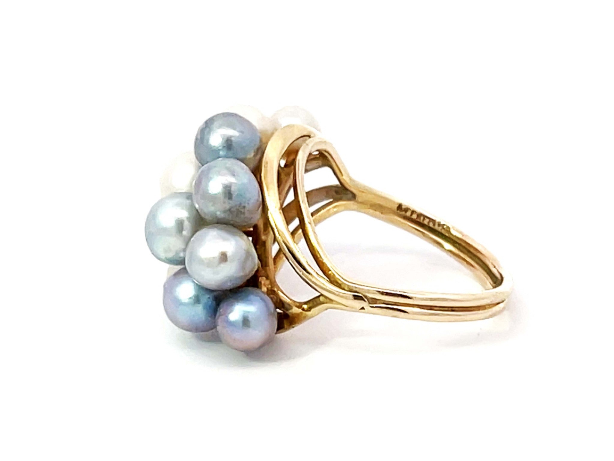 Ming's Hawaii Blue and White Pearl Ring 14k Yellow Gold