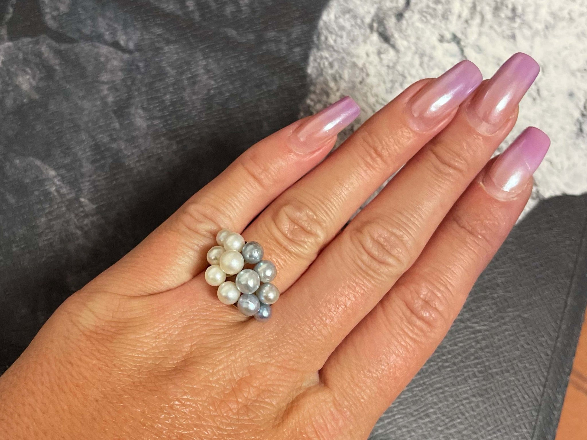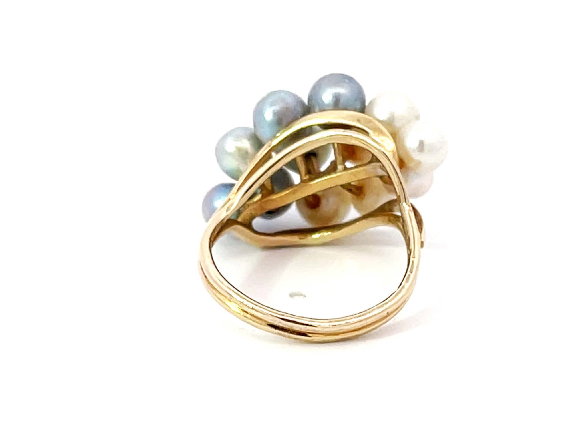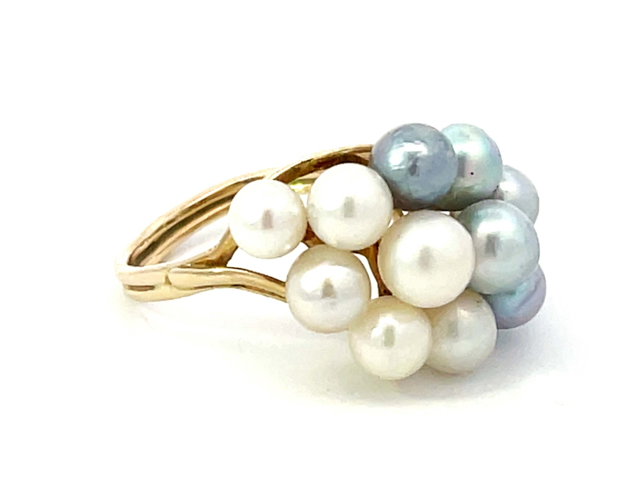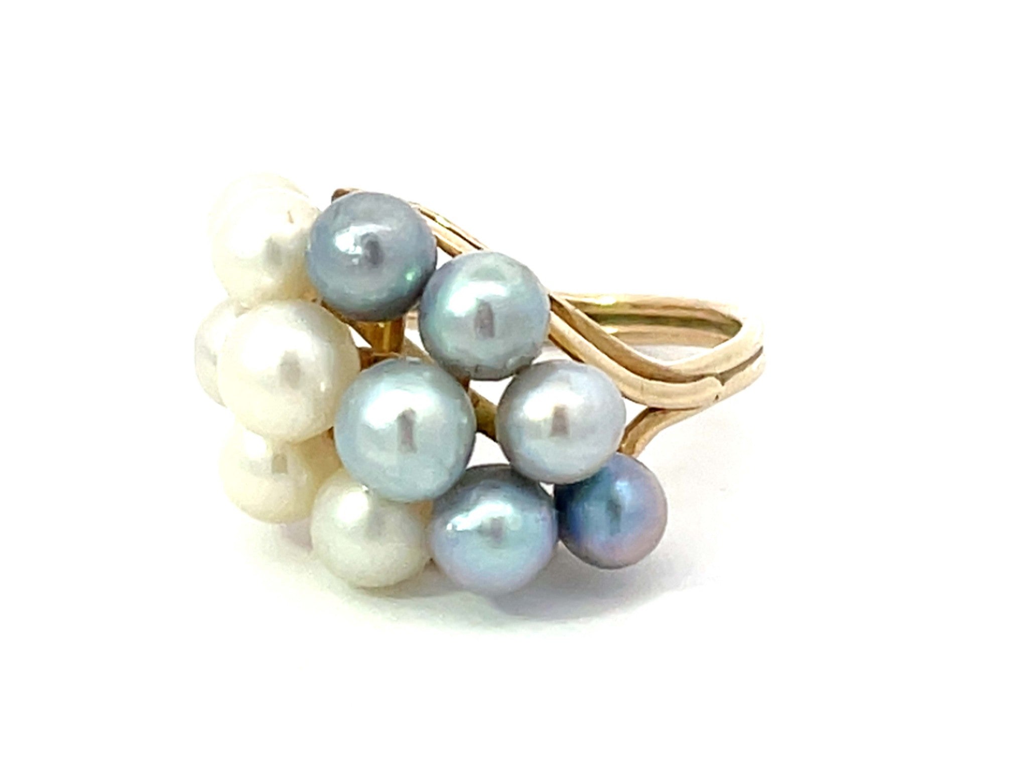 Ming's Hawaii Blue and White Pearl Ring 14k Yellow Gold
