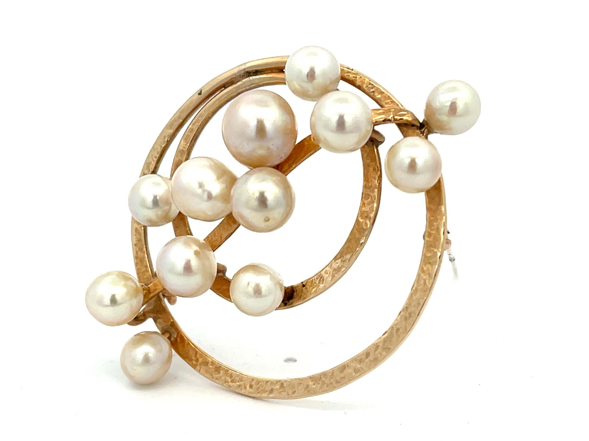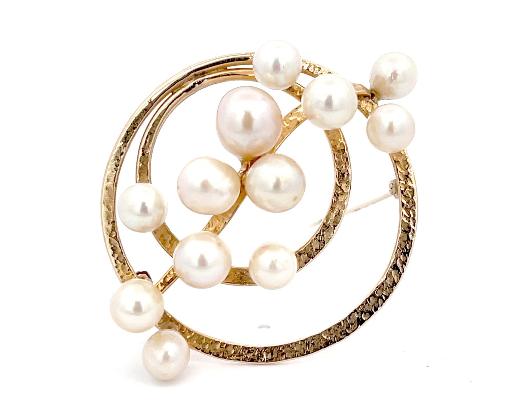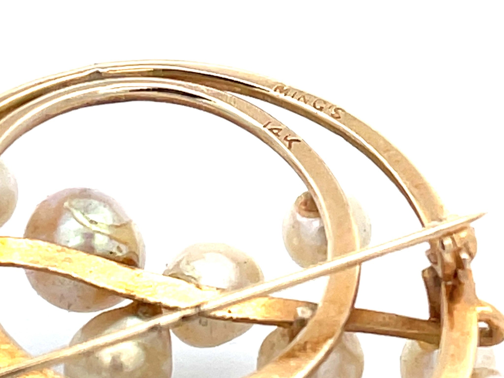 Mings Pearl Circle Brooch in 14k Yellow Gold
