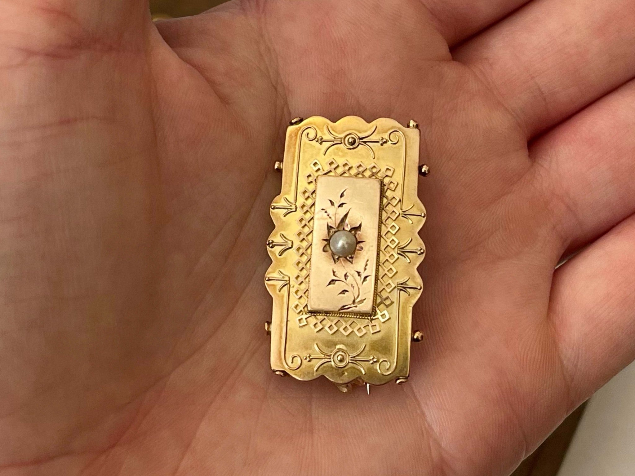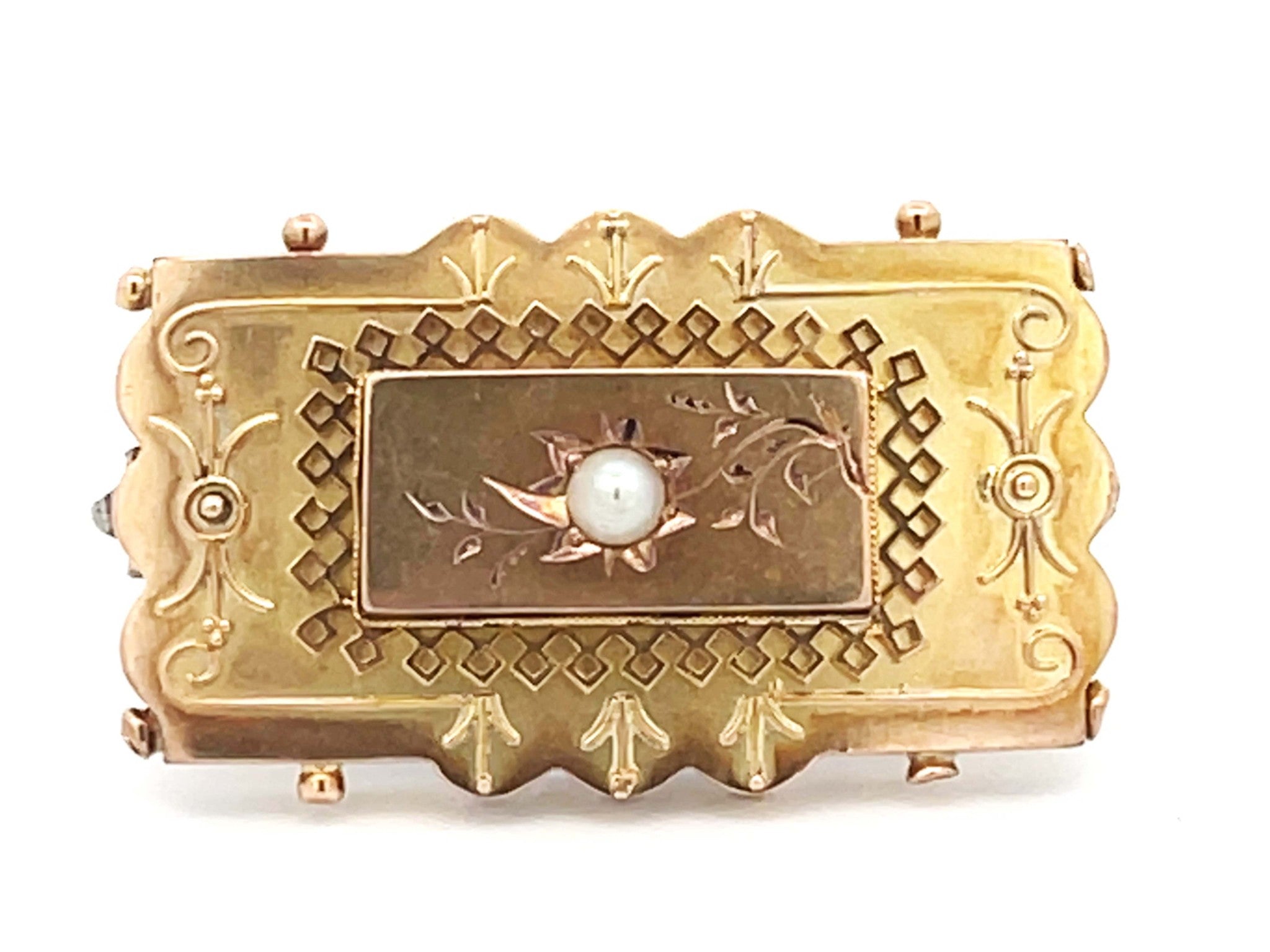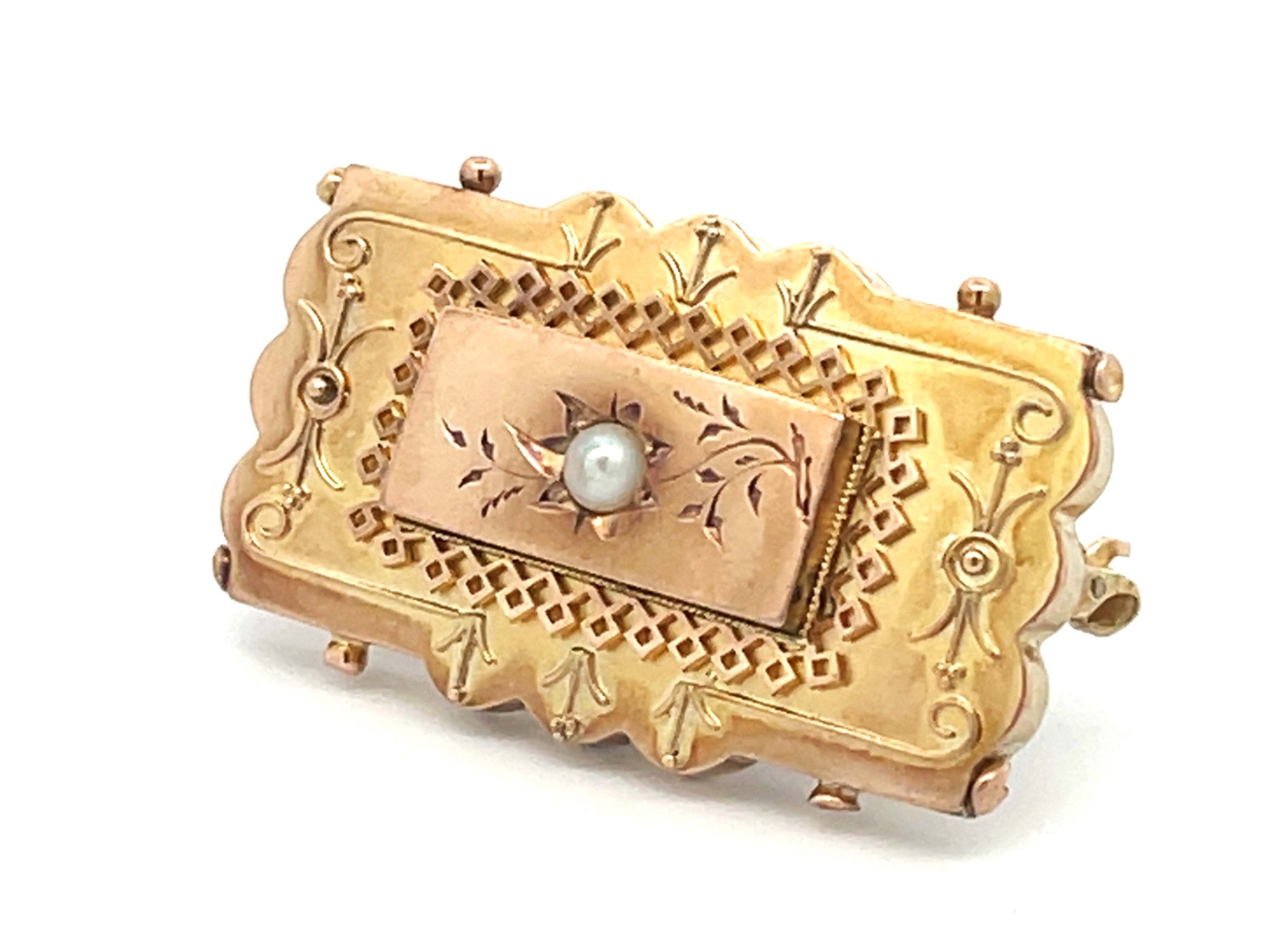 Item Specifications: Metal: 14k yellow goldGemstone: Seed pearls Gemstones Shape: sphere and roundDiameter: 1.45" long, 0.80" wideTotal Weight: 6.9 grams Condition: Preowned, excellent
