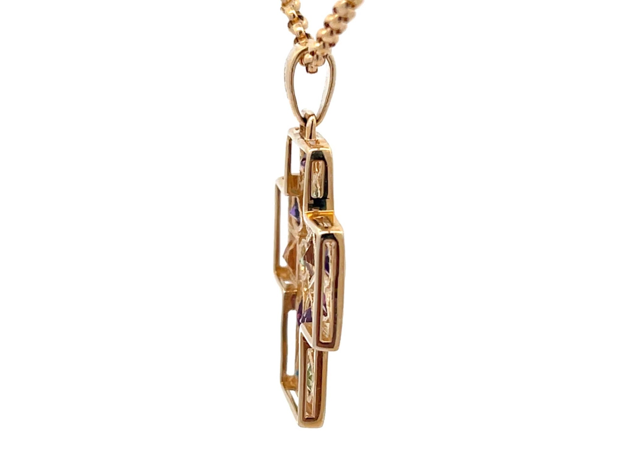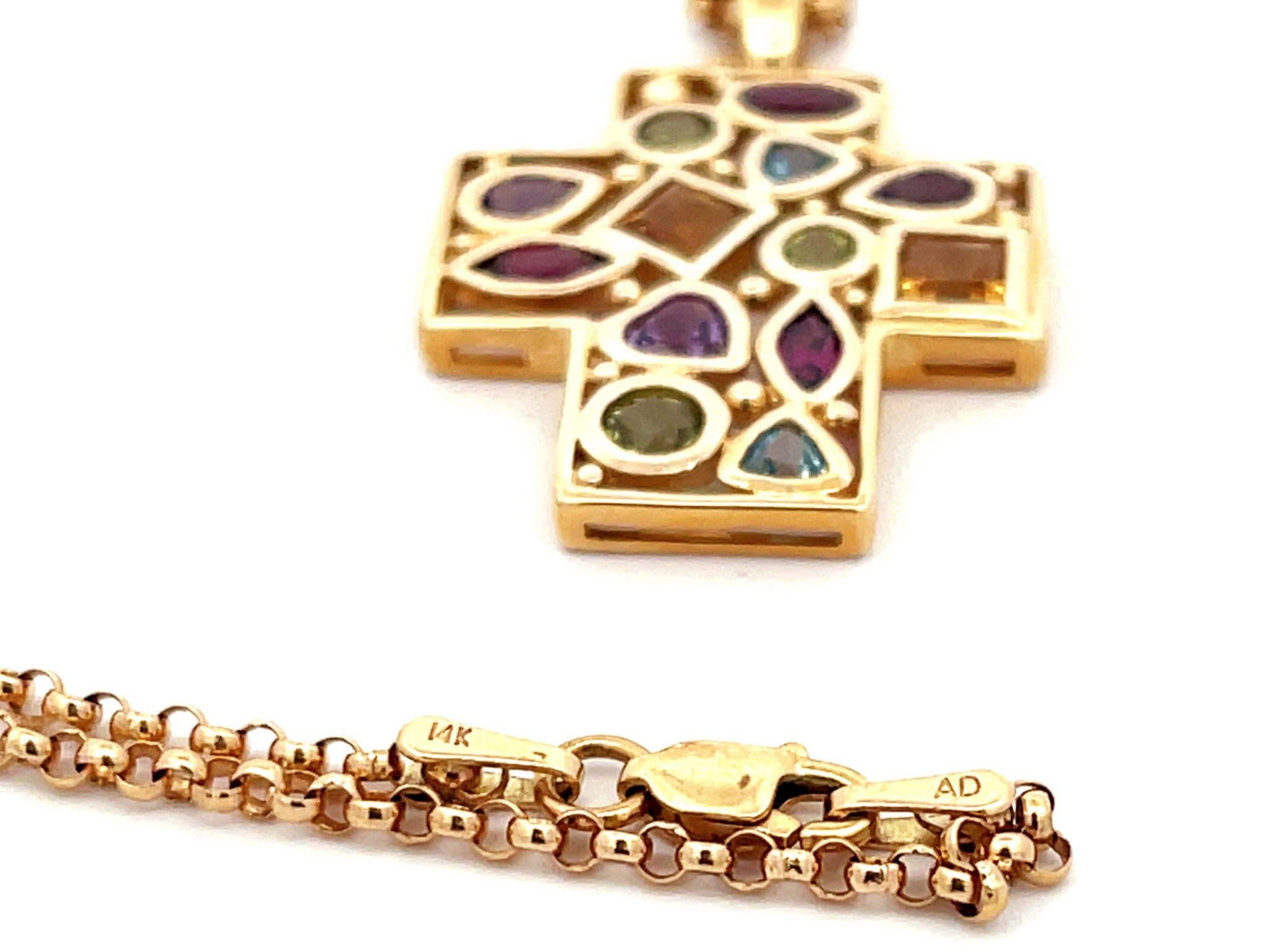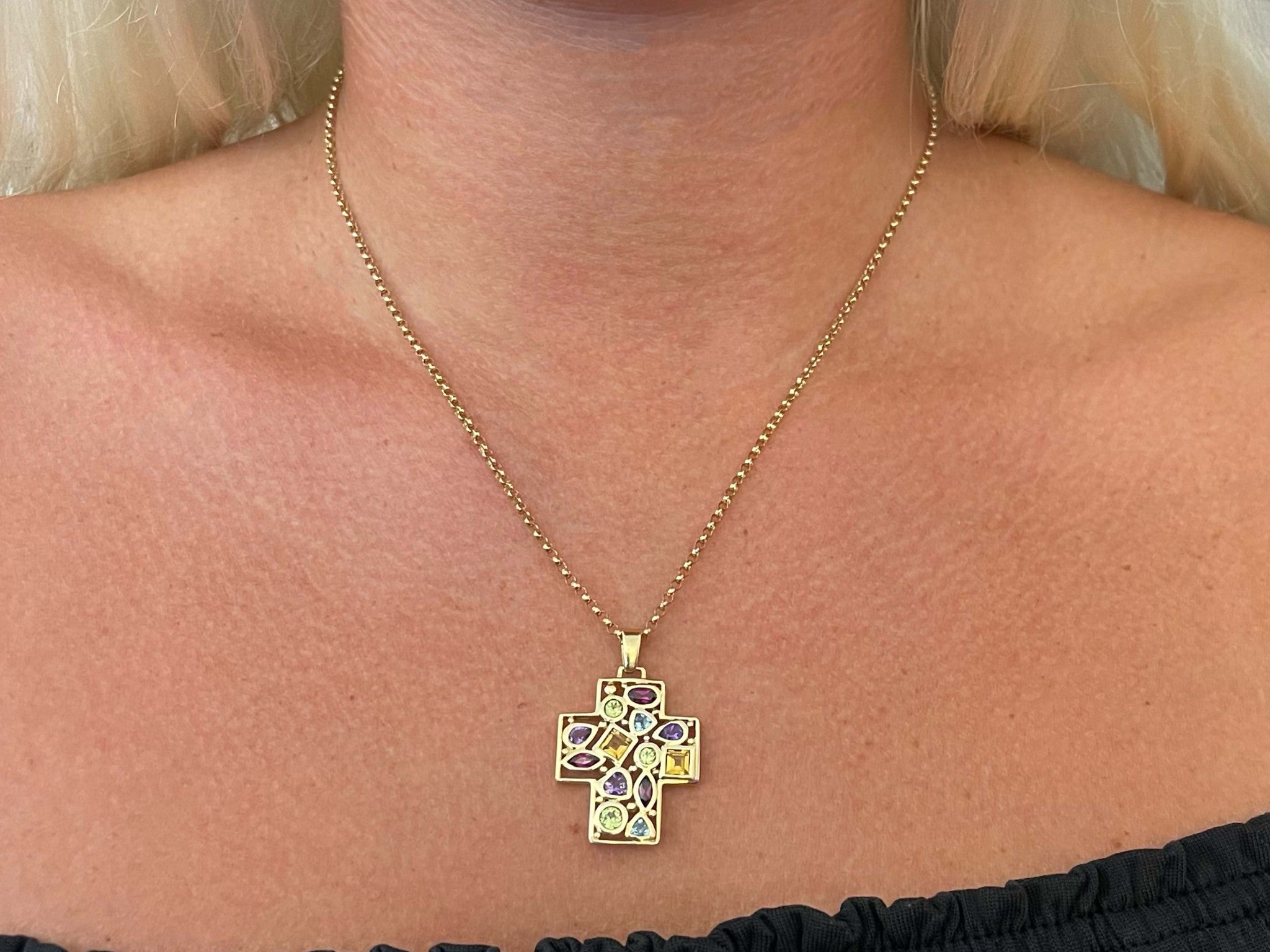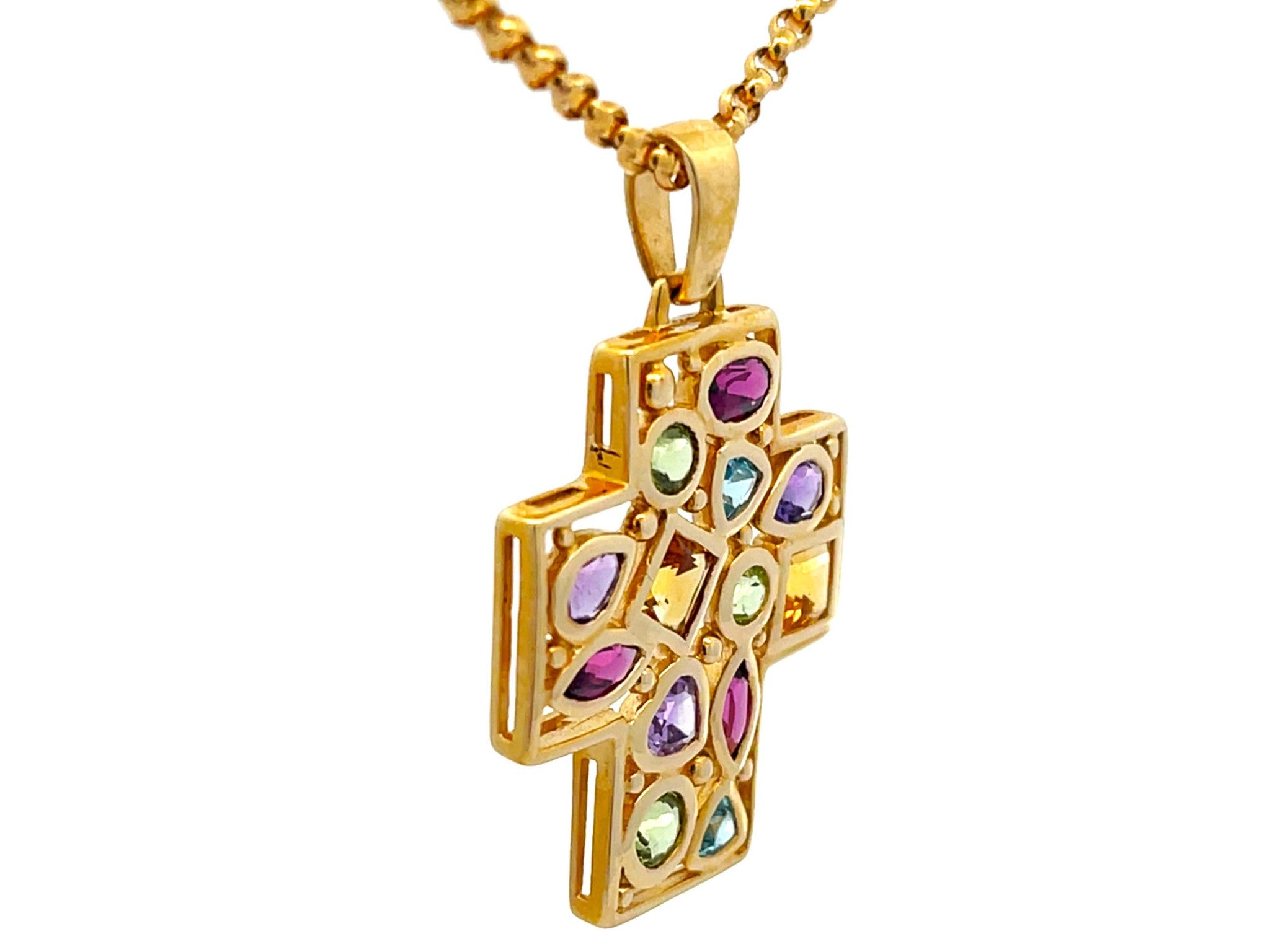 Gemstones: 3 green peridot, 3 purple amethyst, 3 burgundy garnet, 2 blue topaz, 2 yellow citrine