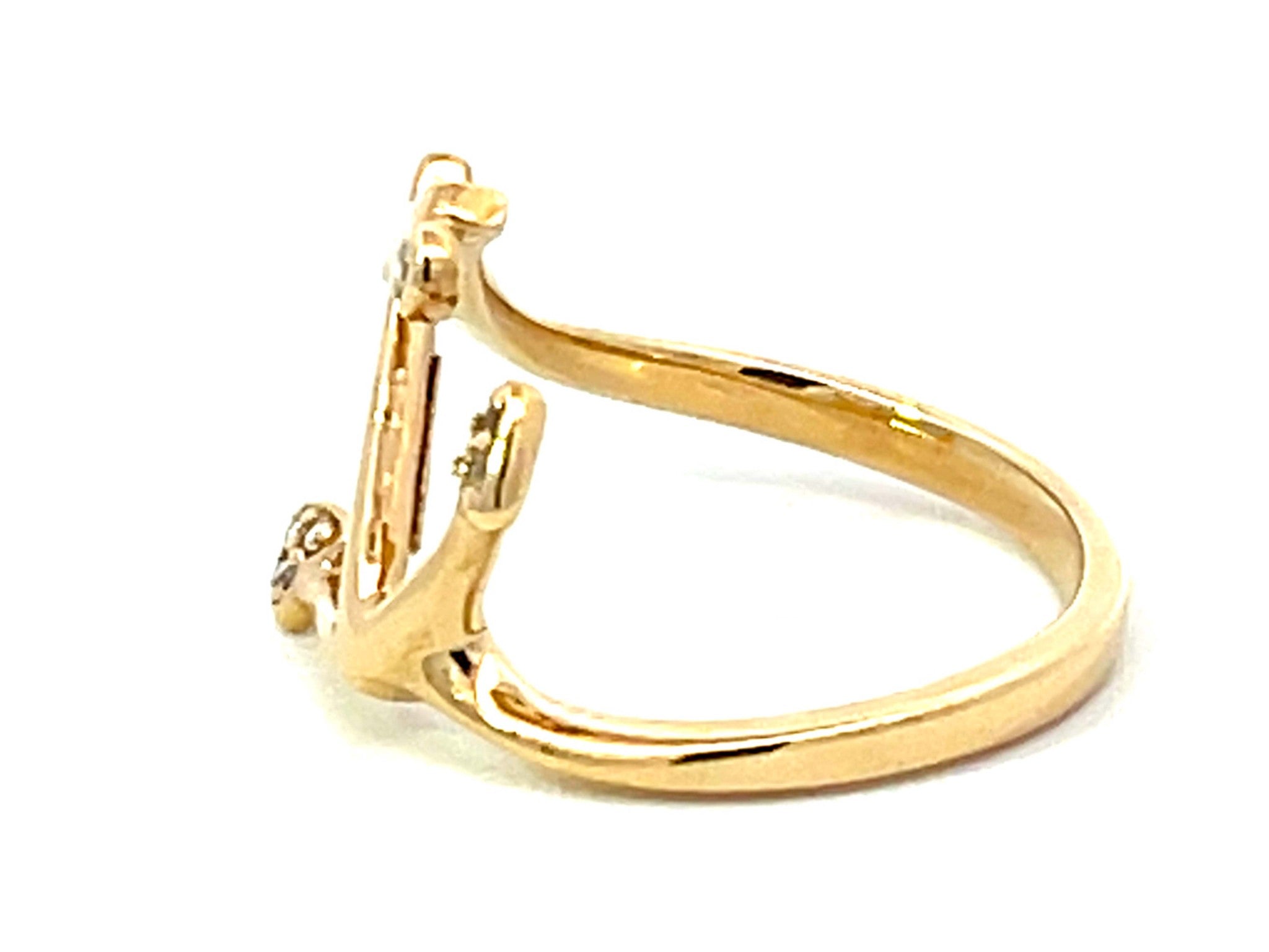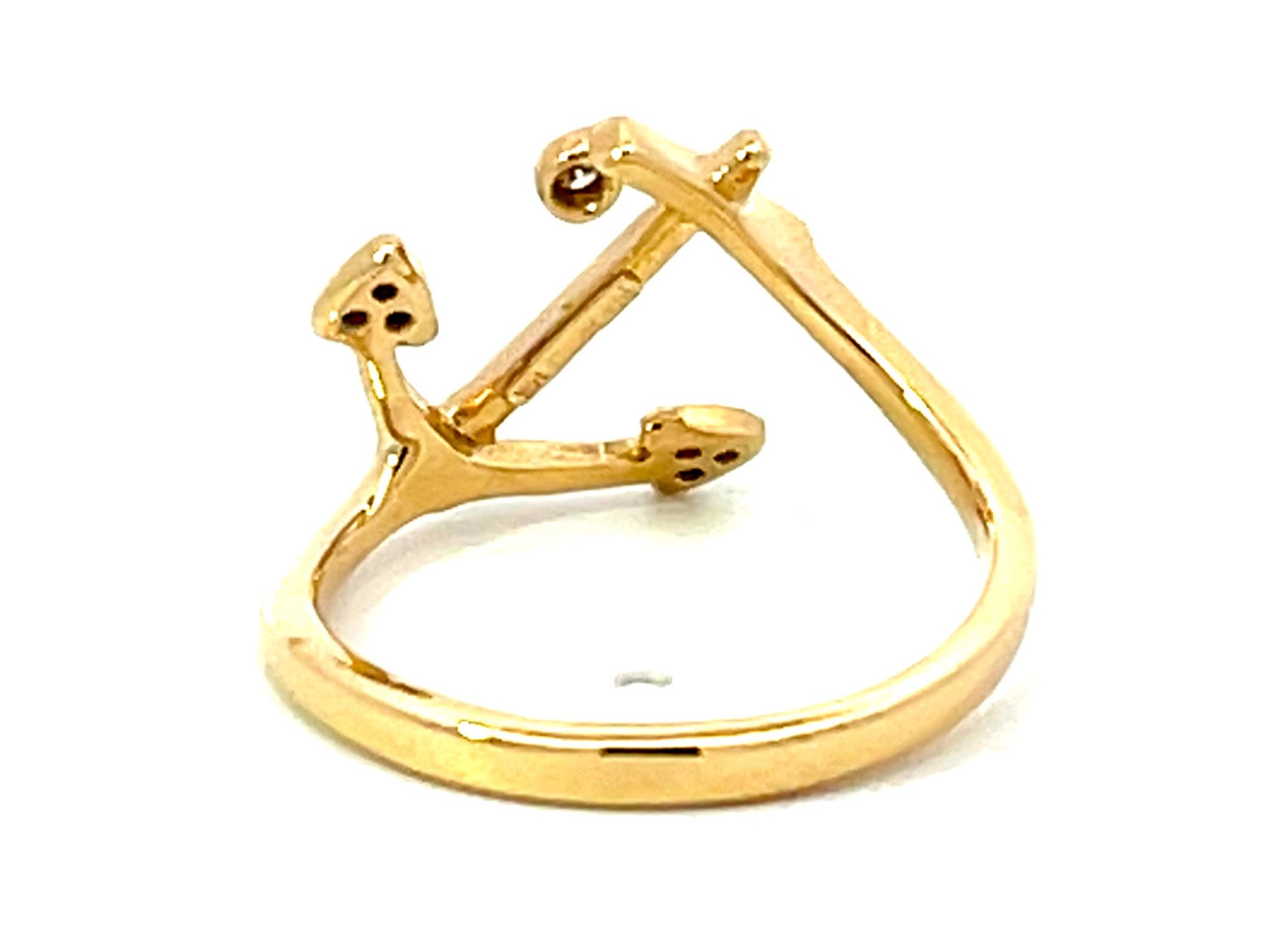 Item Specifications:Metal: 14K Yellow GoldTotal Weight: 2.7 GramsRing Size: 6.5Diamond Count: 7 diamondsDiamond Carat Weight: ~0.05 CaratDiamond Color: H-IDiamond Clarity: SI1Condition: Preowned, excellentStamped: "Nahoku" "14k"