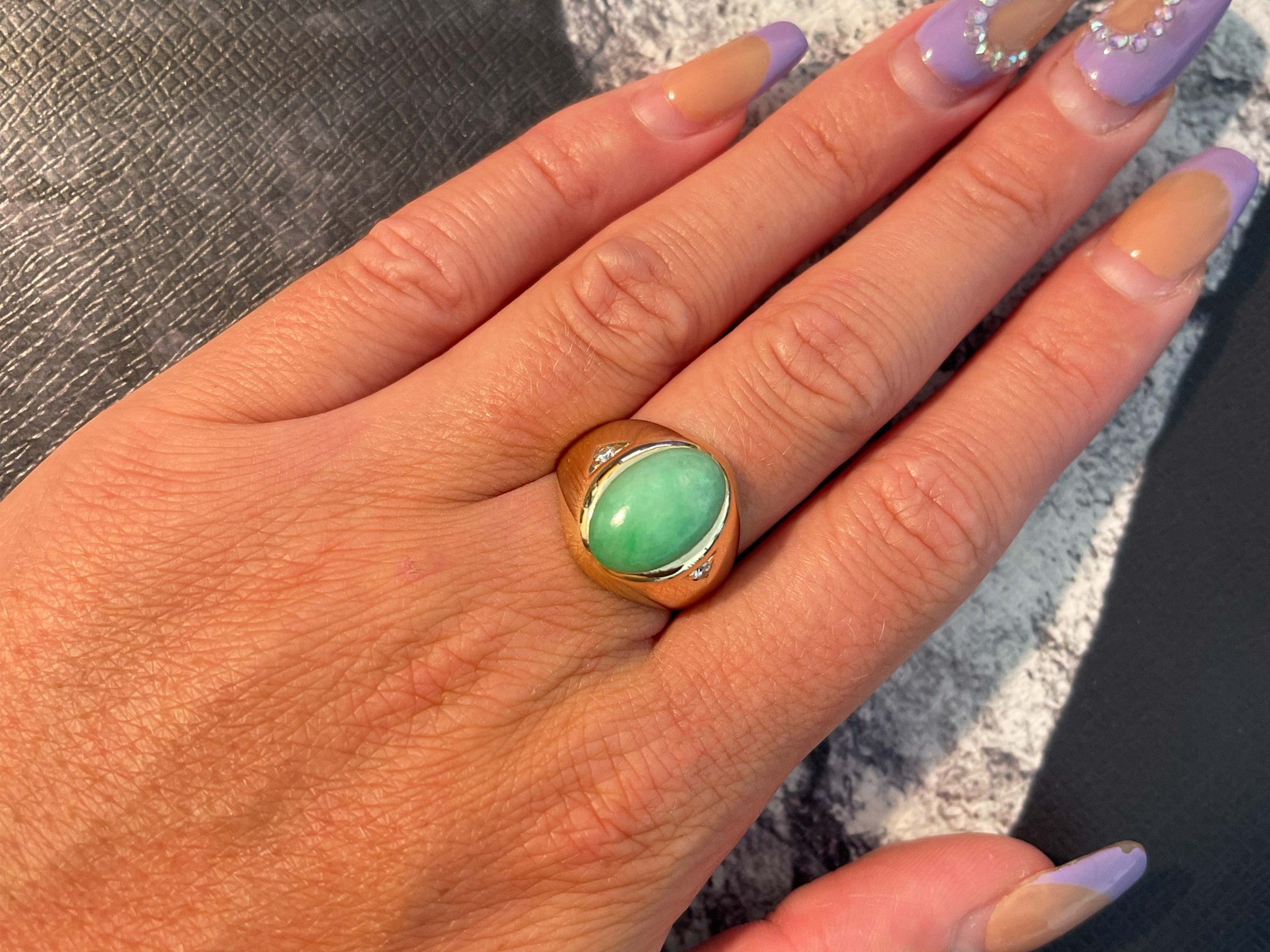 (Actual color of jade may slightly vary depending on screen calibration, lighting or camera settings. Please see image of ring on hand for more accurate color.)