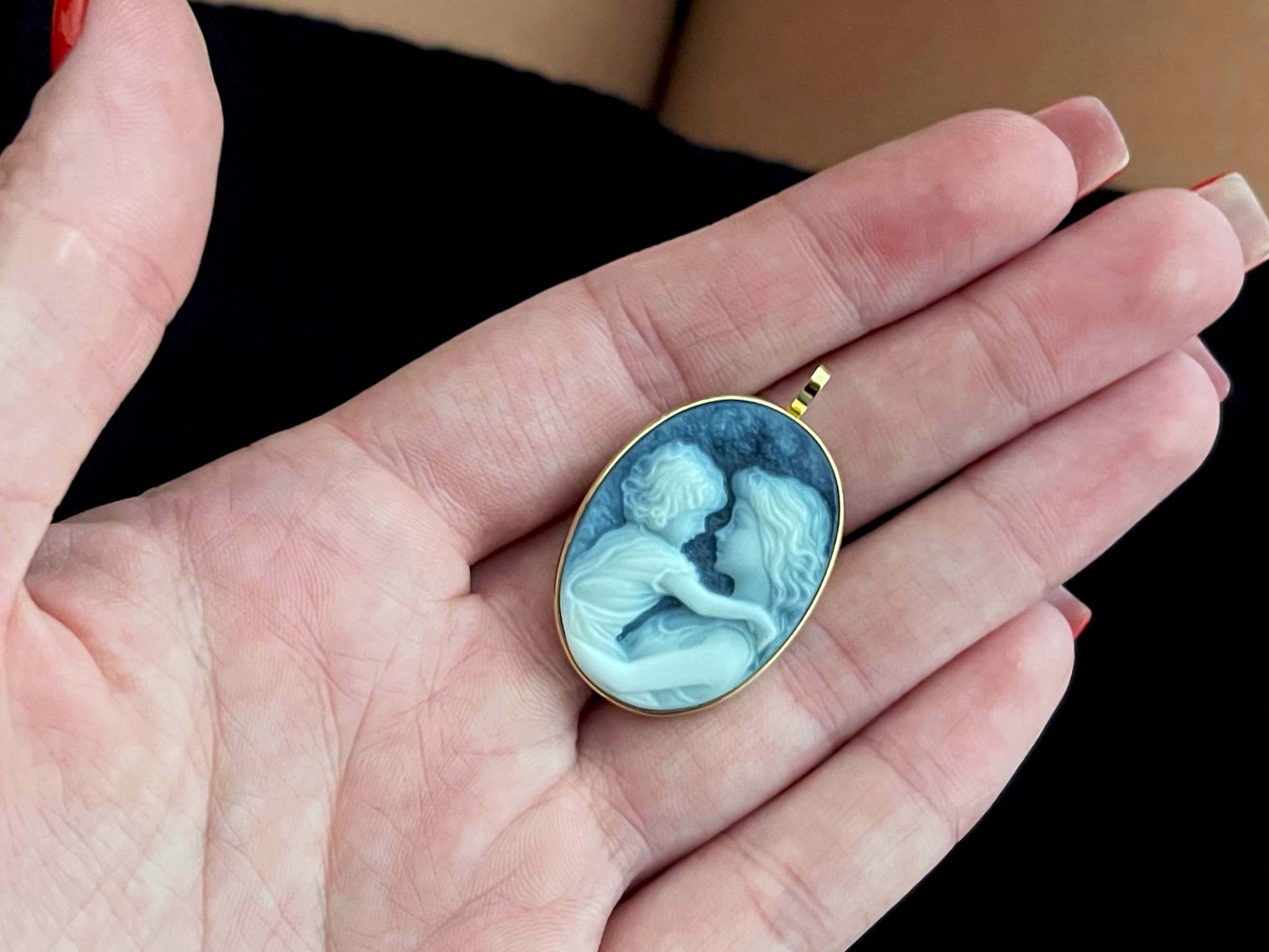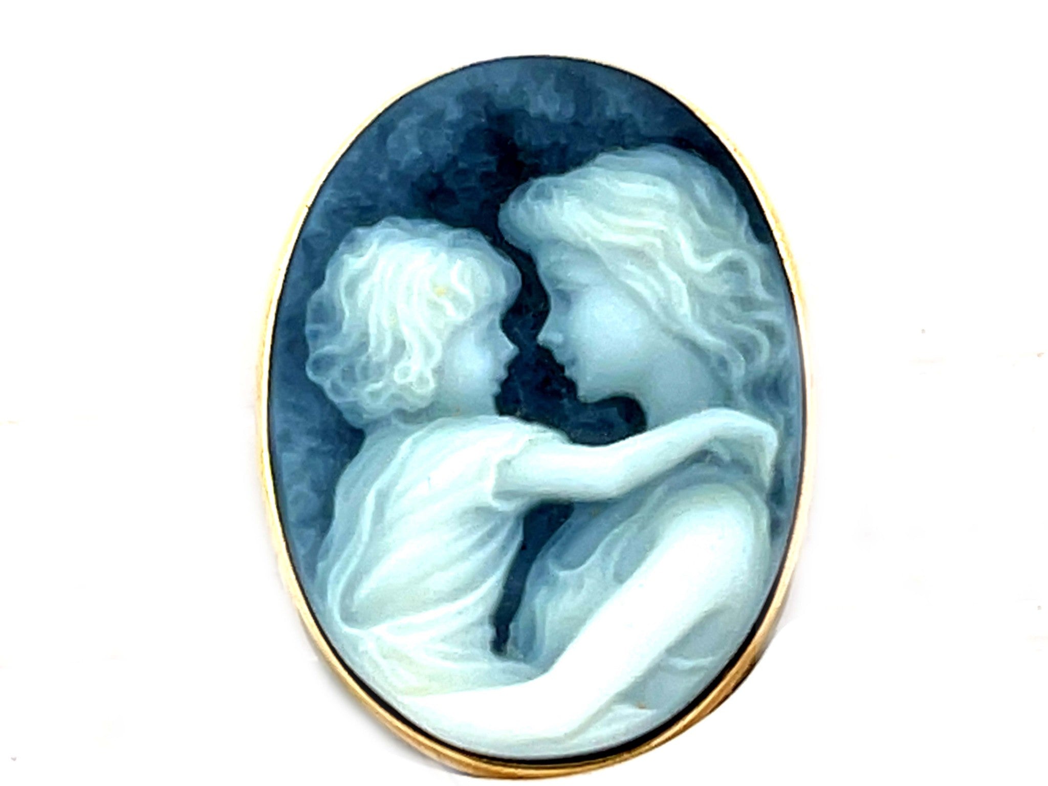 Oval Mother and Child Cameo Pendant/Brooch 14k Yellow Gold