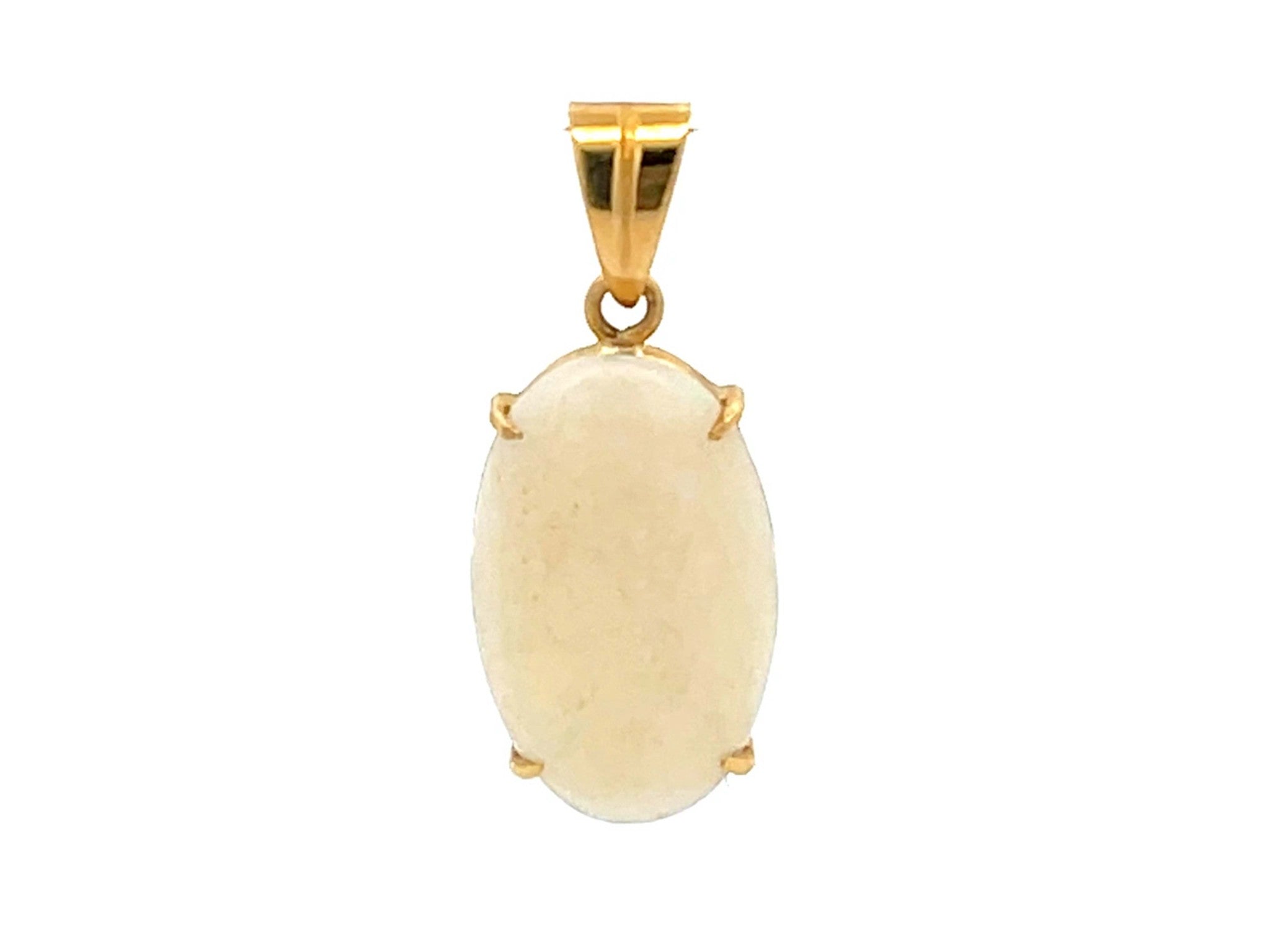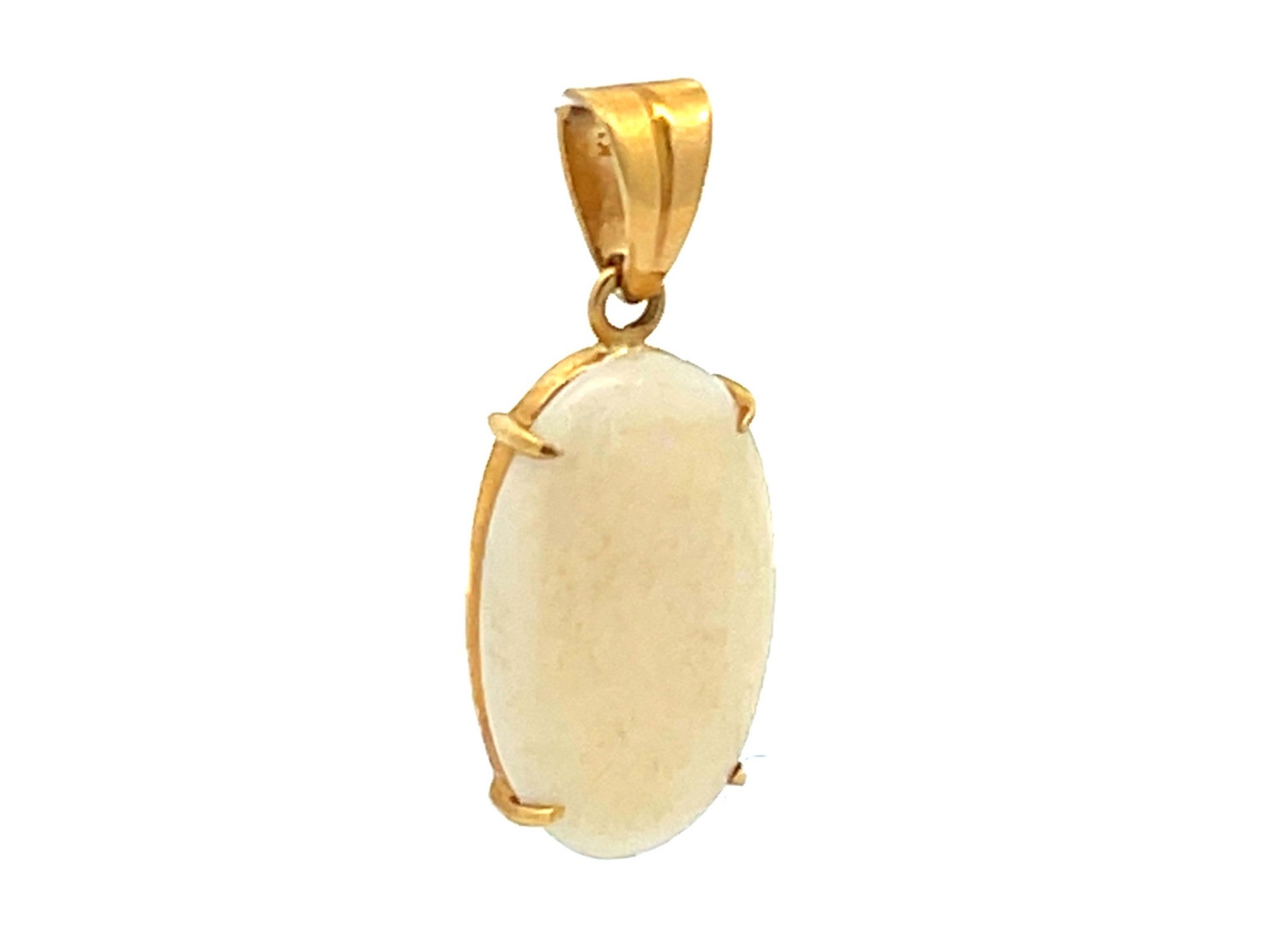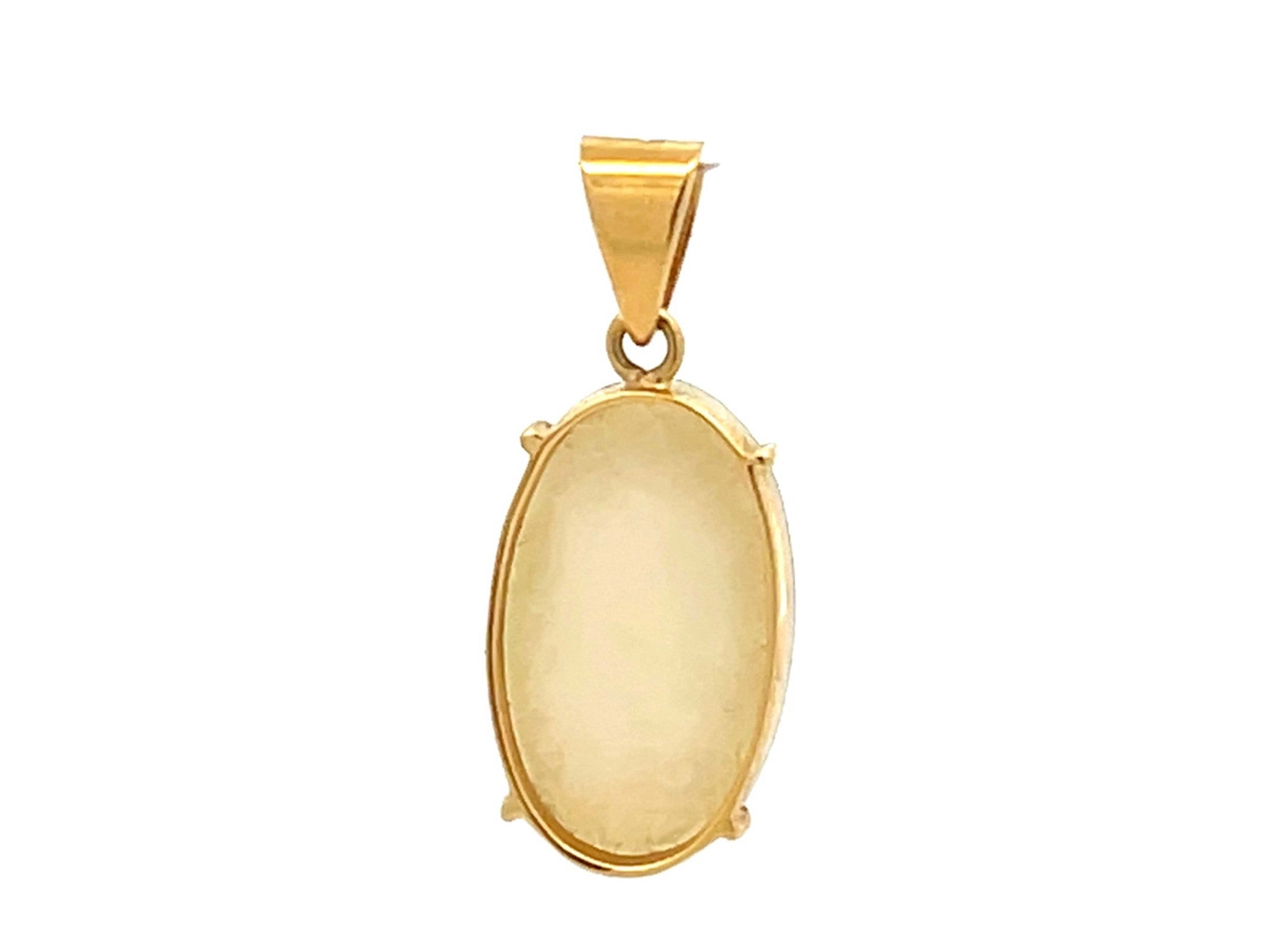 Item Specifications:Metal: 18K Yellow GoldStyle: Opal PendantTotal Weight: 2.3 GramsGemstone Specifications:Center Gemstone: OpalGemstone Measurements: 19.2 mm x 11.7 mm x 4 mmOpal Carat Weight: ~5 caratsCondition: Excellent