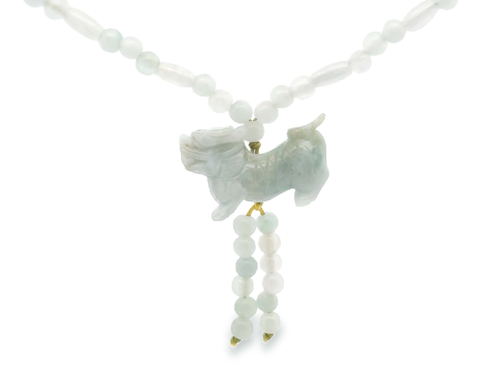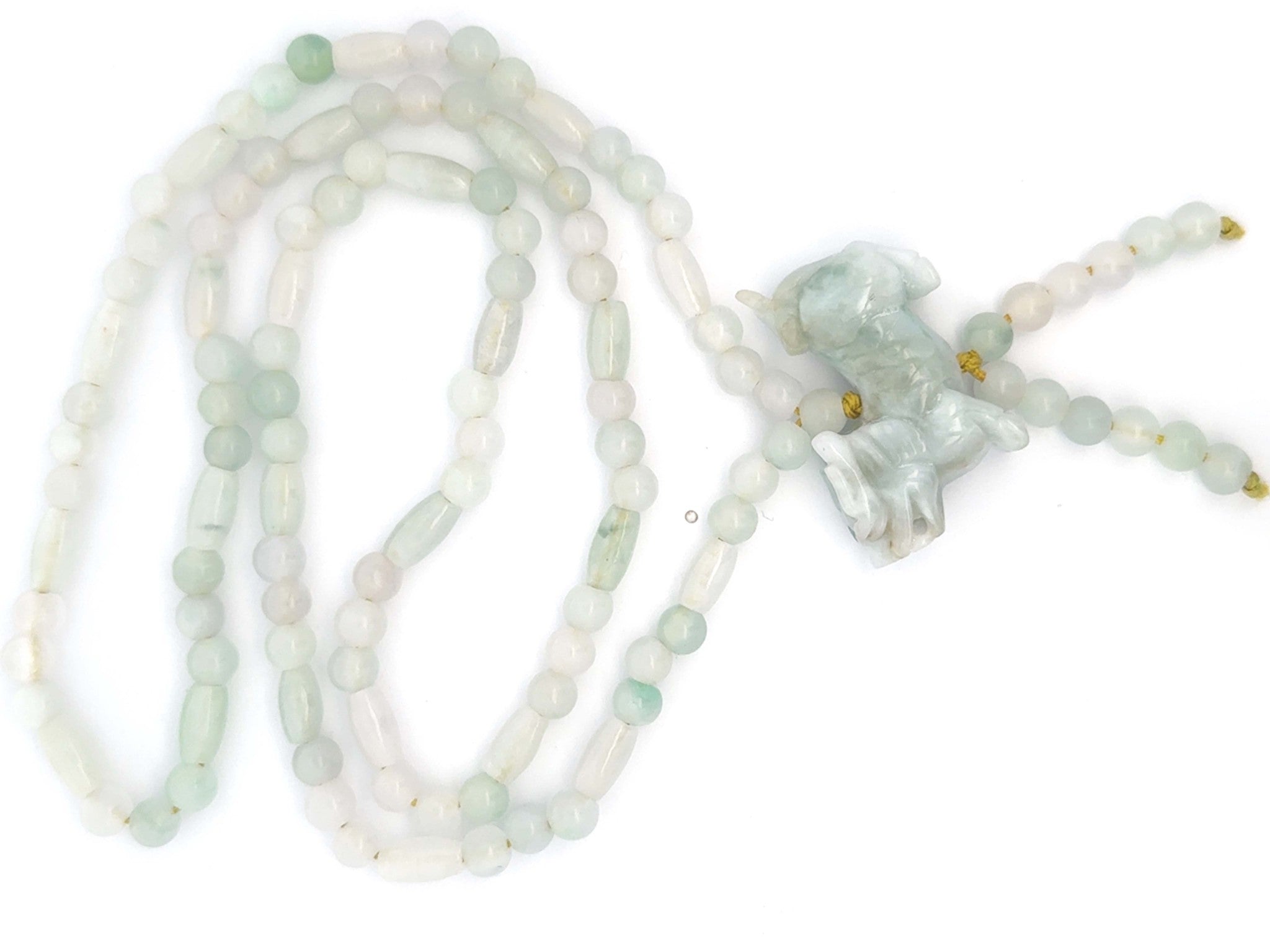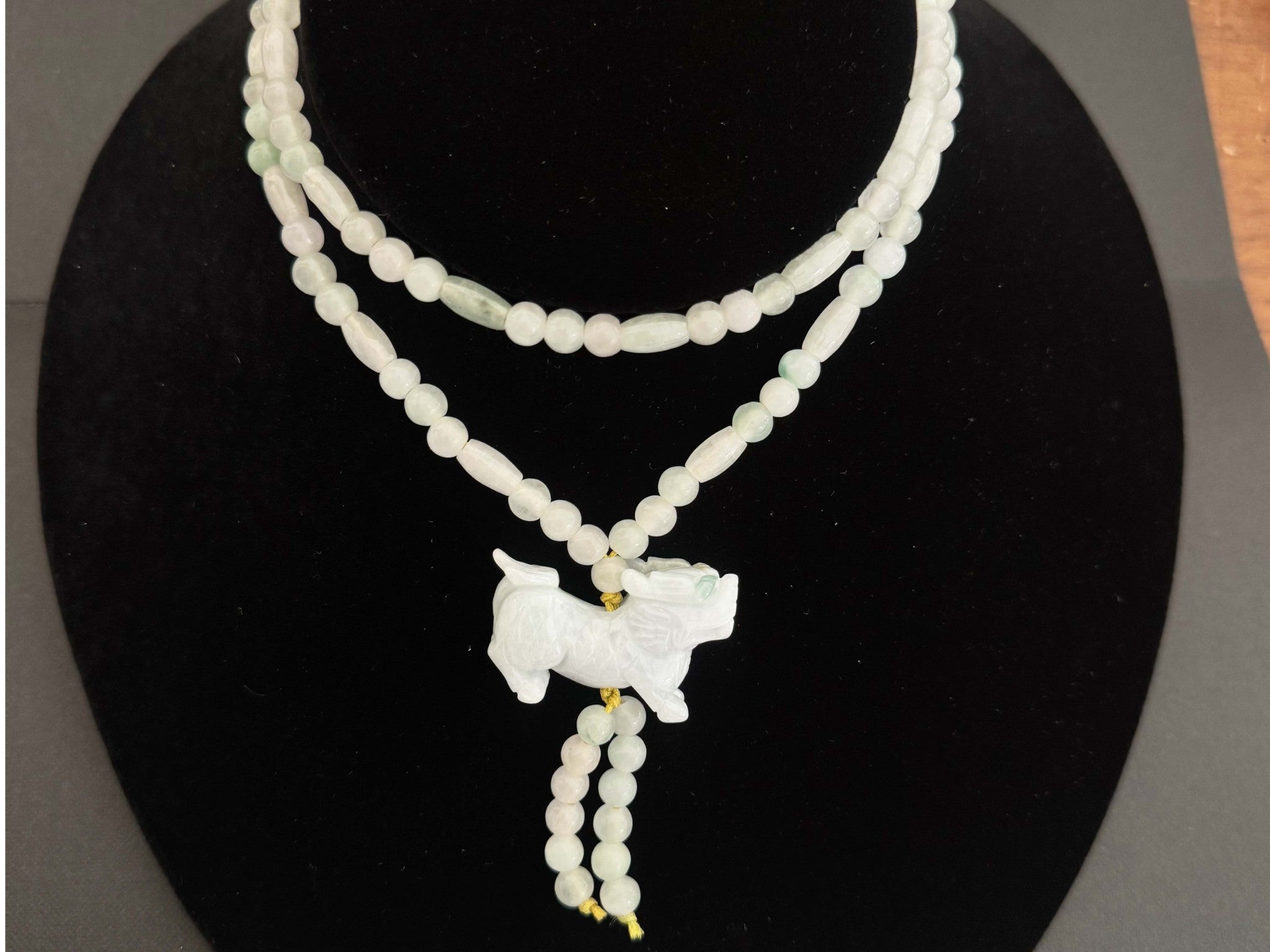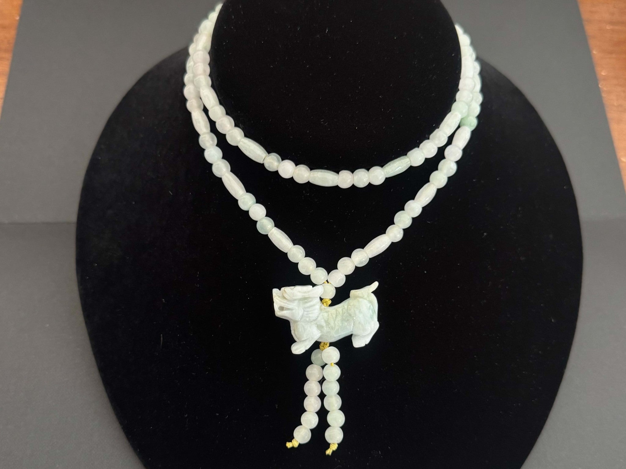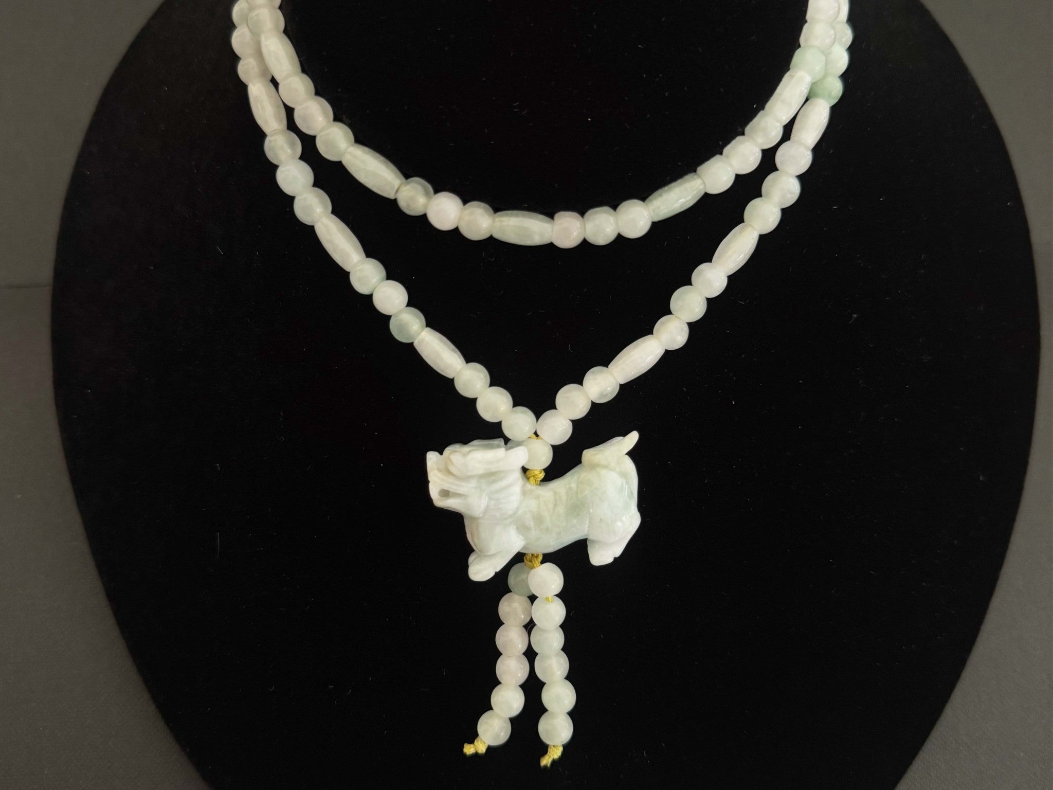 Necklace Detail:Design: Long Jade Bead Strand NecklaceGemstone: Jadeite Jade Jade Color: Light GreenLength: ~30 inchesWidth: phu dog is ~1.5"