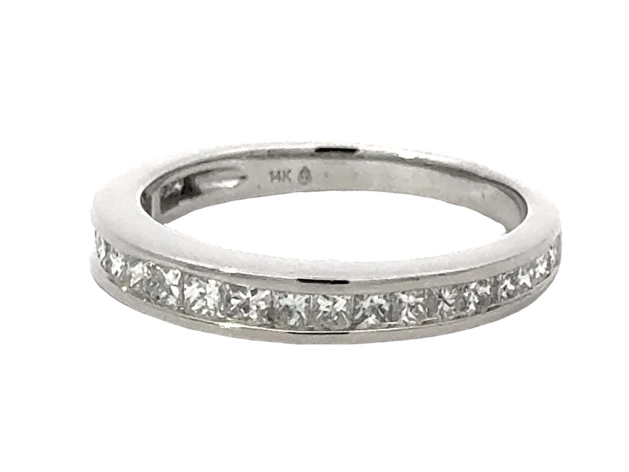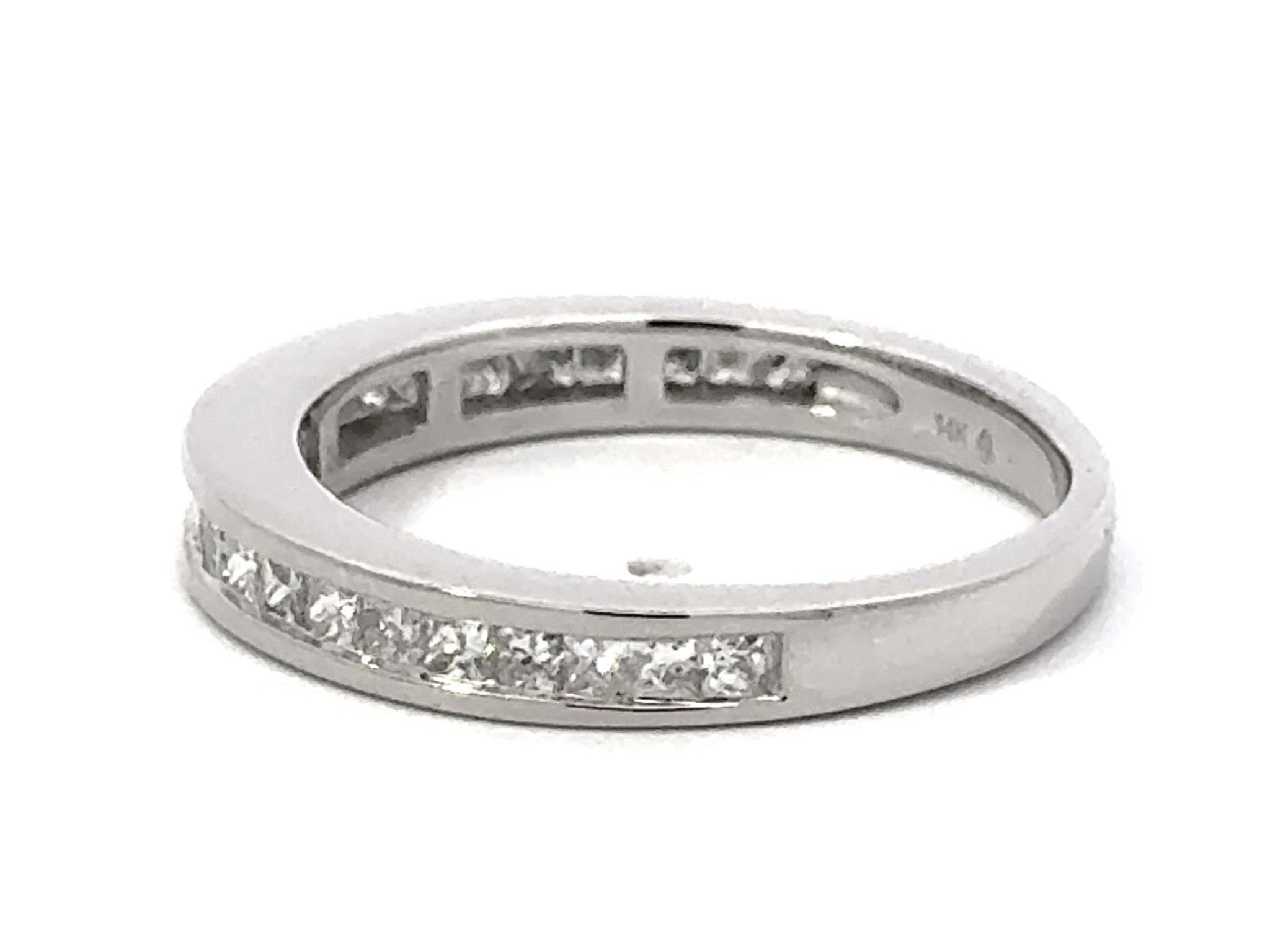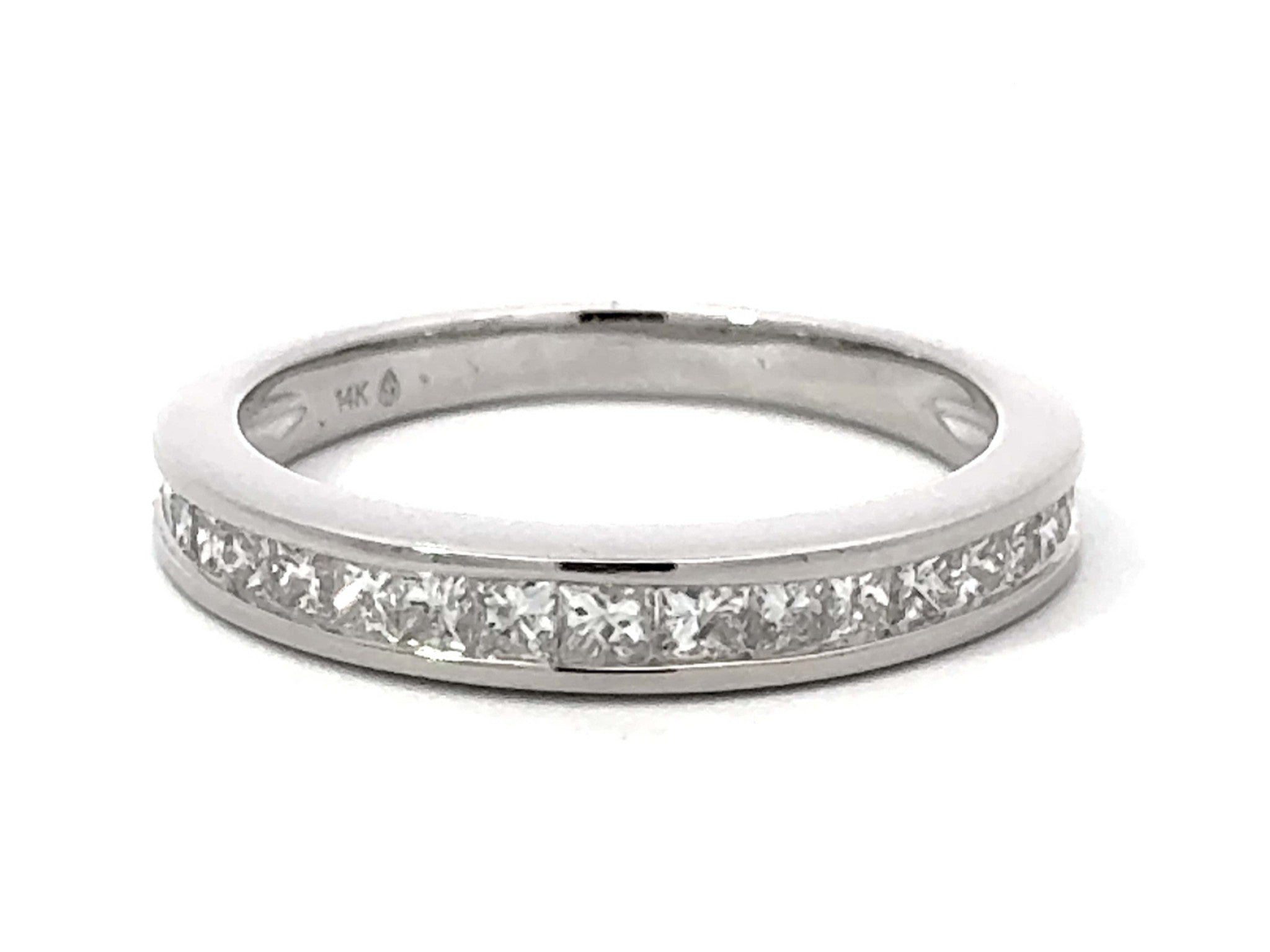 Item Specifications: Metal: 14k White GoldDiamond Count: 23 princess cutTotal Diamond Carat Weight: ~0.50 carats Diamond Color: H-IDiamond Clarity: SI1-SI2Ring Size: 7.5 Total Weight: 3.4 GramsStamped: "14K" Condition: Preowned, excellent