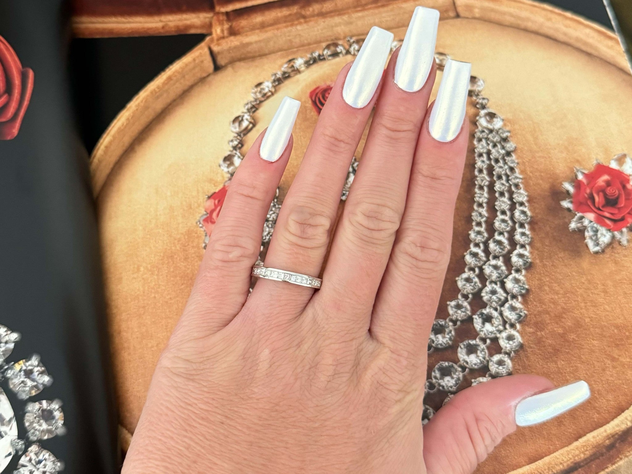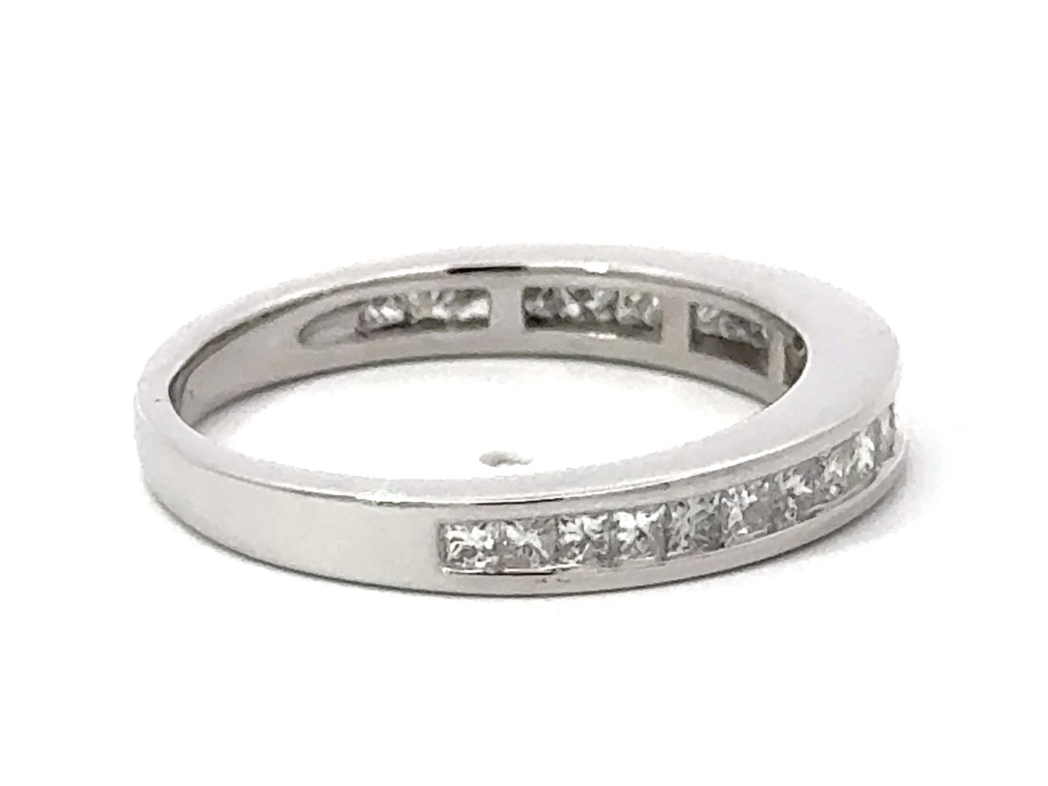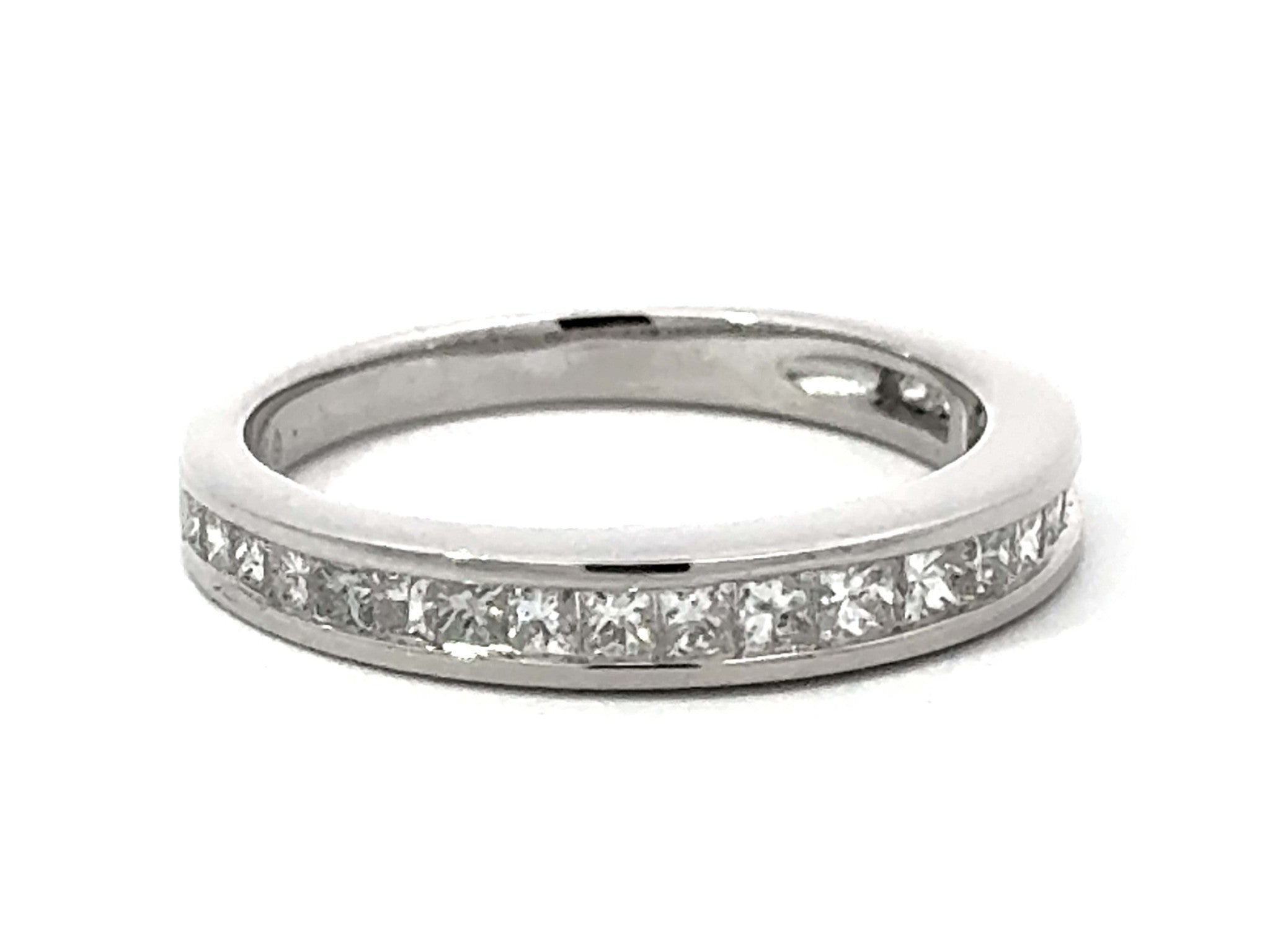 Item Specifications: Metal: 14k White GoldDiamond Count: 23 princess cutTotal Diamond Carat Weight: ~0.50 carats Diamond Color: H-IDiamond Clarity: SI1-SI2Ring Size: 7.5 Total Weight: 3.4 GramsStamped: "14K" Condition: Preowned, excellent