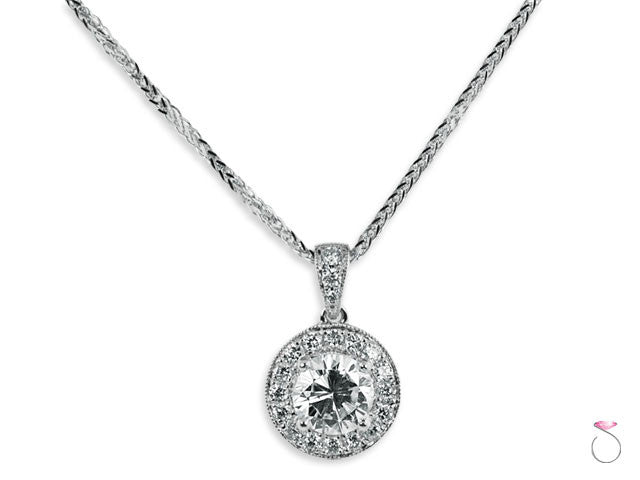 Round Brilliant Diamond Halo Pendant 1.35ctw in 18K White Gold with Chain